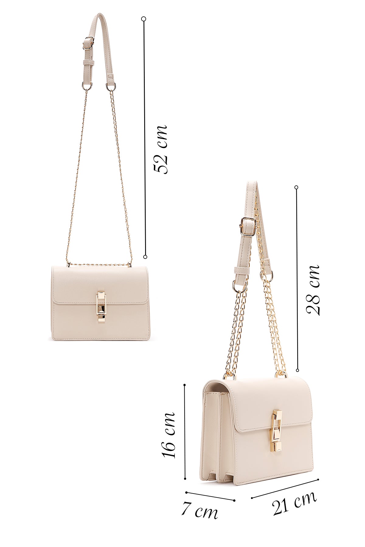 Kadın Krem Uzun Zincir Askılı Mini Klasik Çapraz Çanta