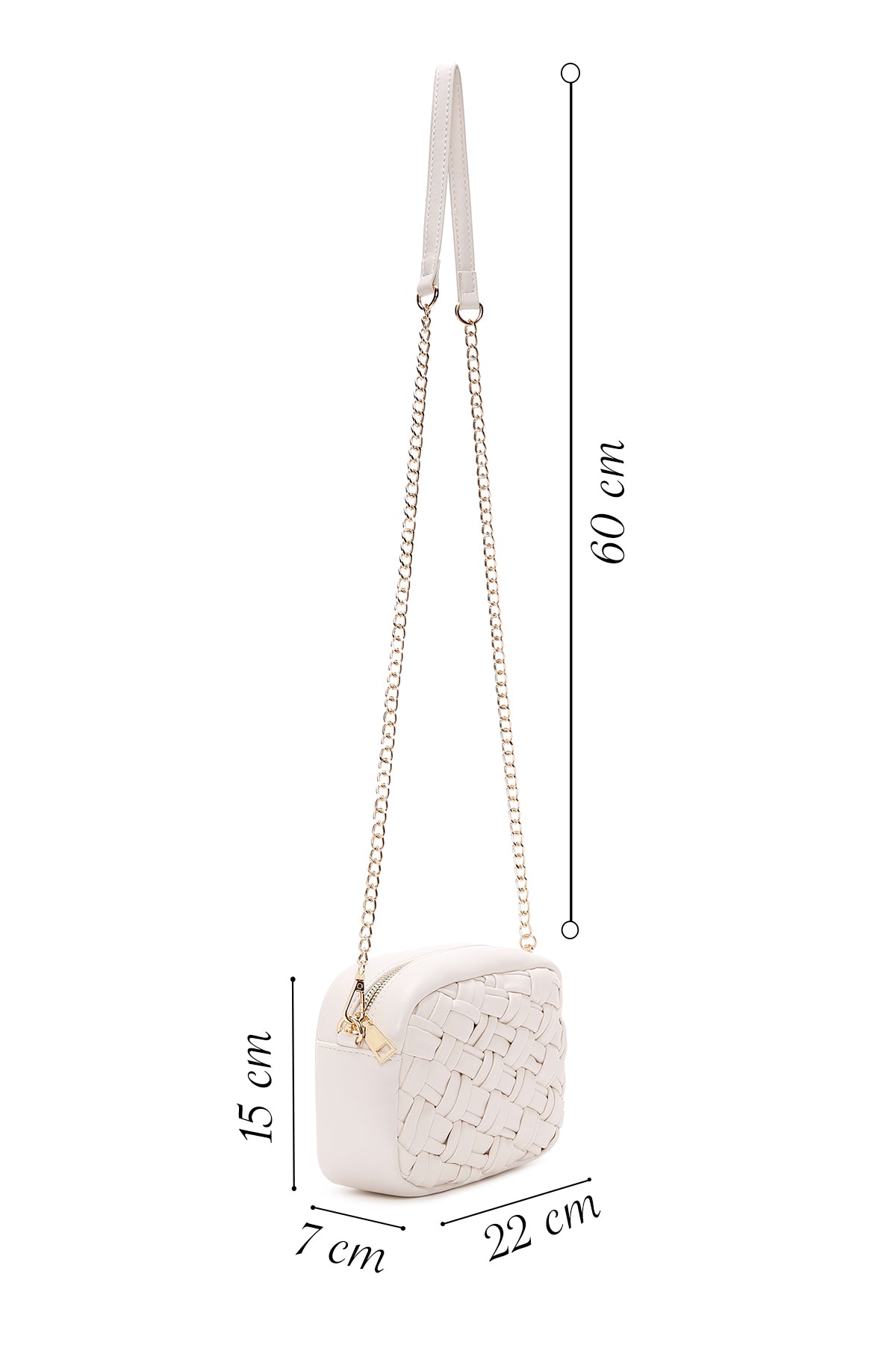 Kadın Krem Uzun Zincir Askılı Örgü Çapraz Çanta