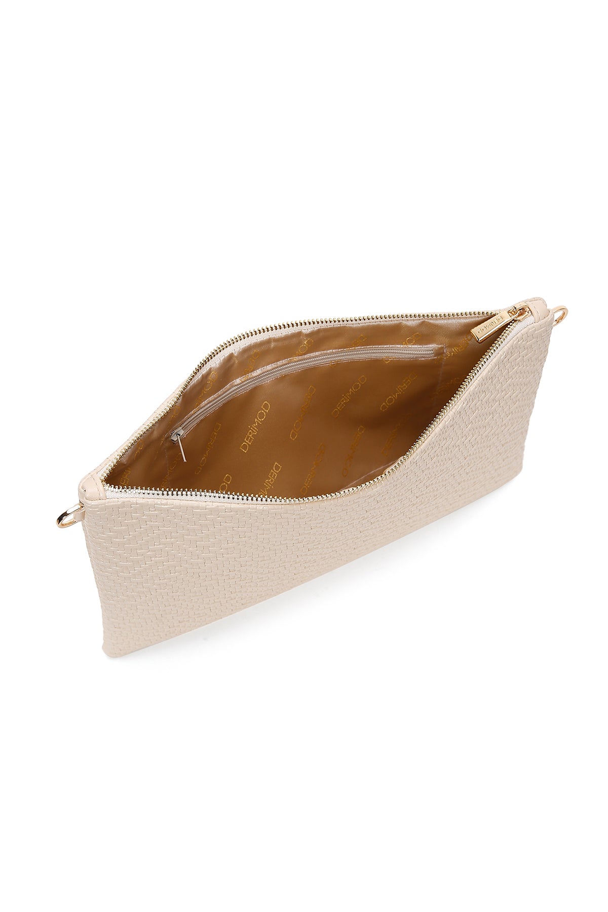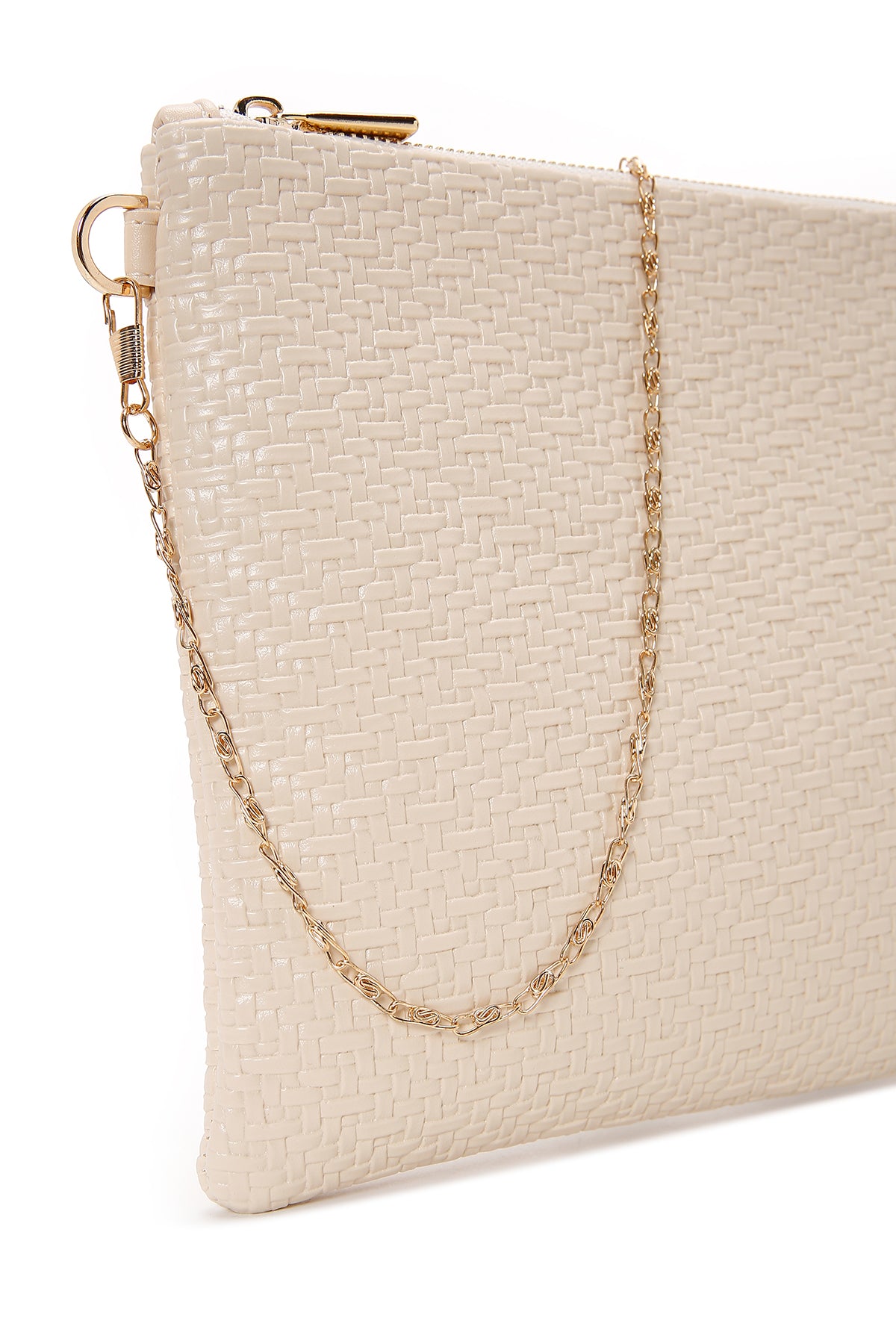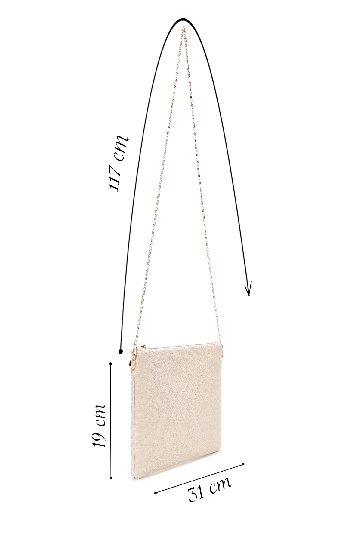 Kadın Krem Uzun Zincir Askılı Örgülü Portföy Çanta