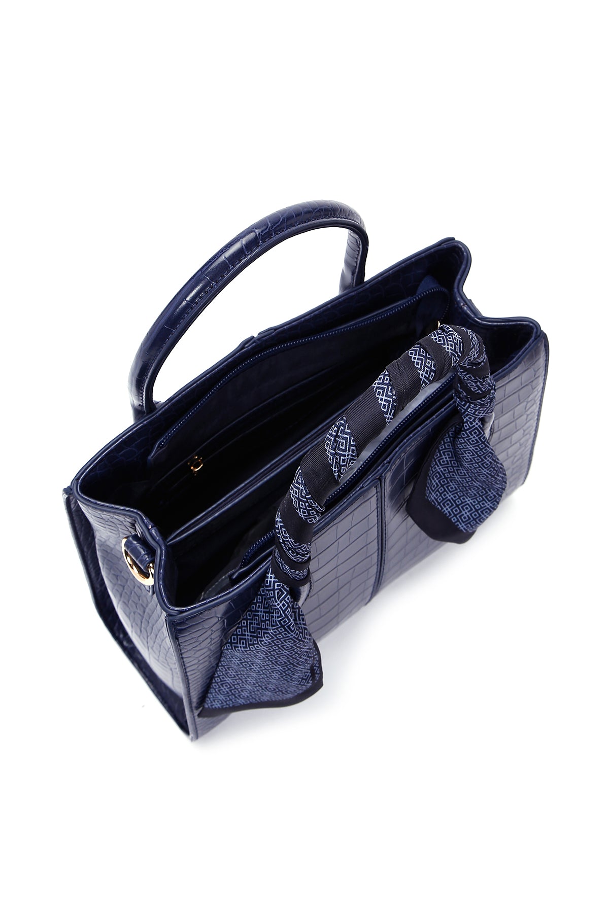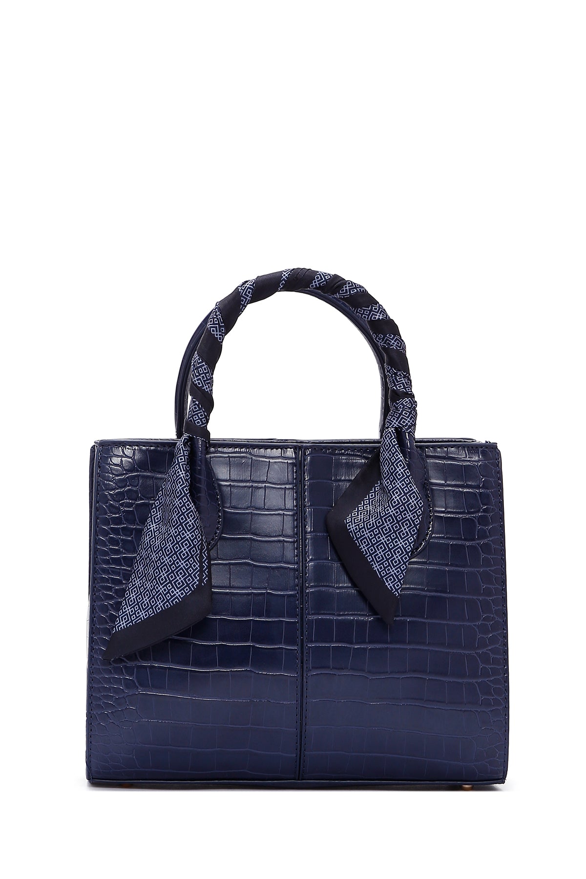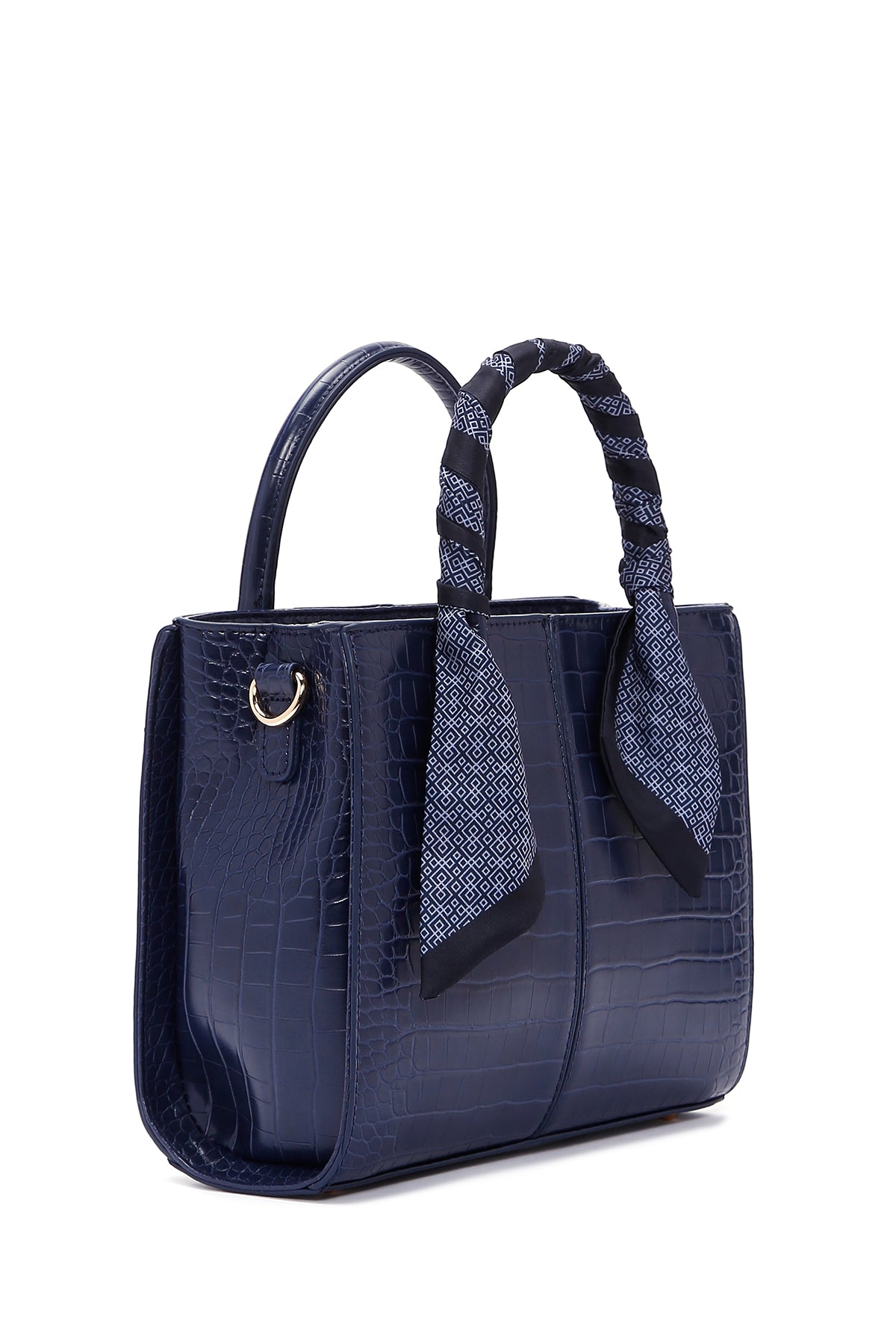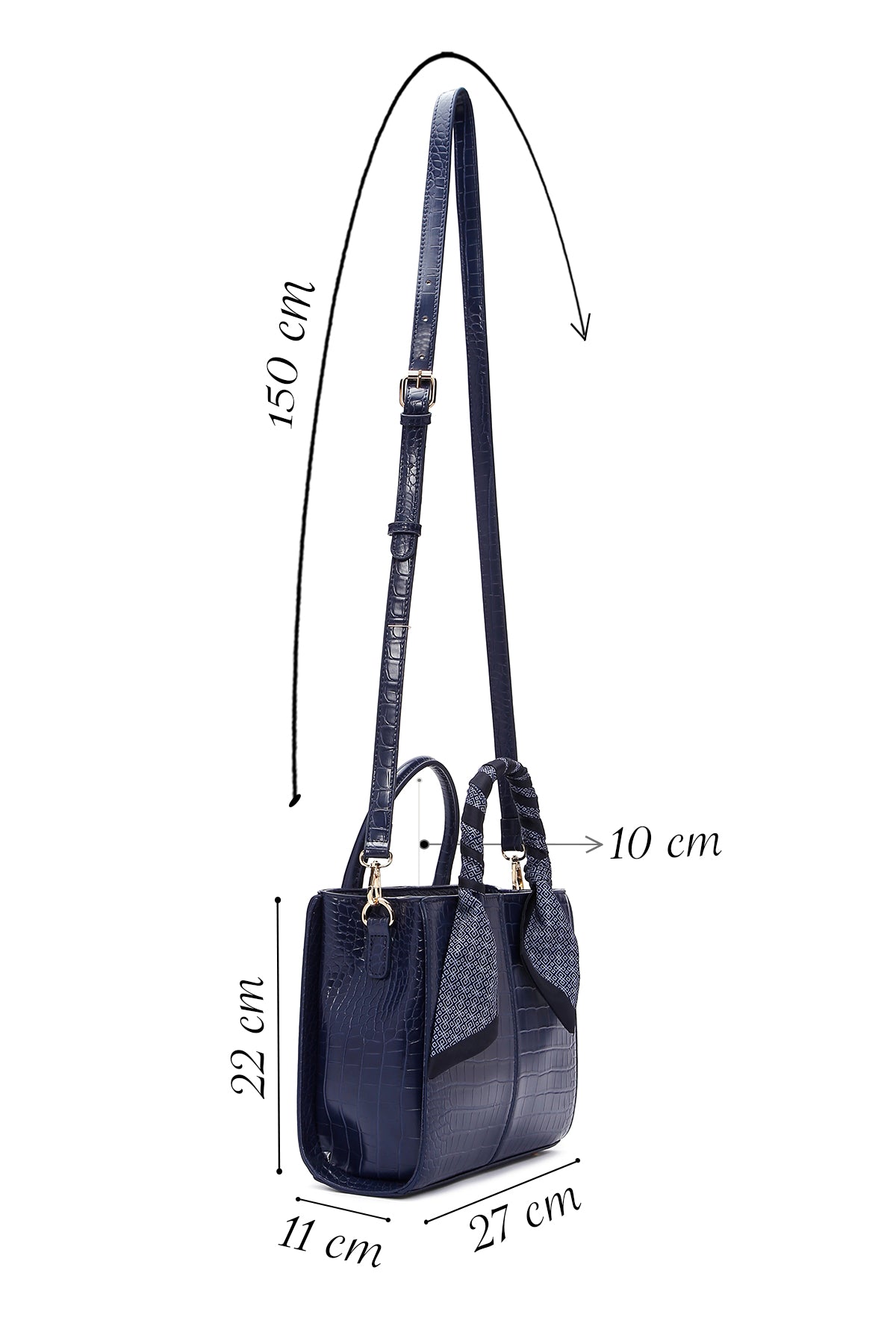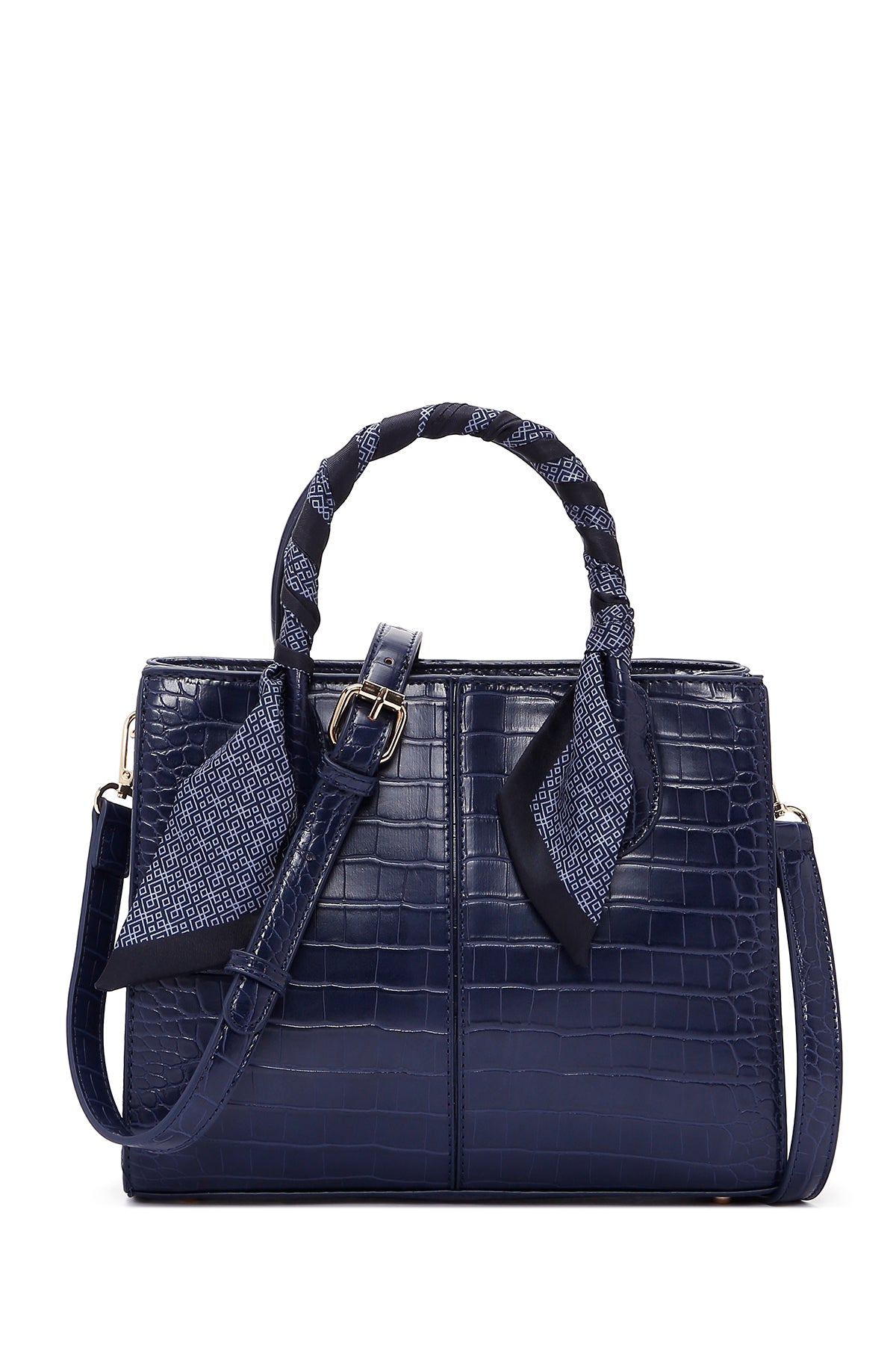 Kadın Lacivert Uzun Askılı Aksesuar Detaylı Kroko Desenli Kol Çantası