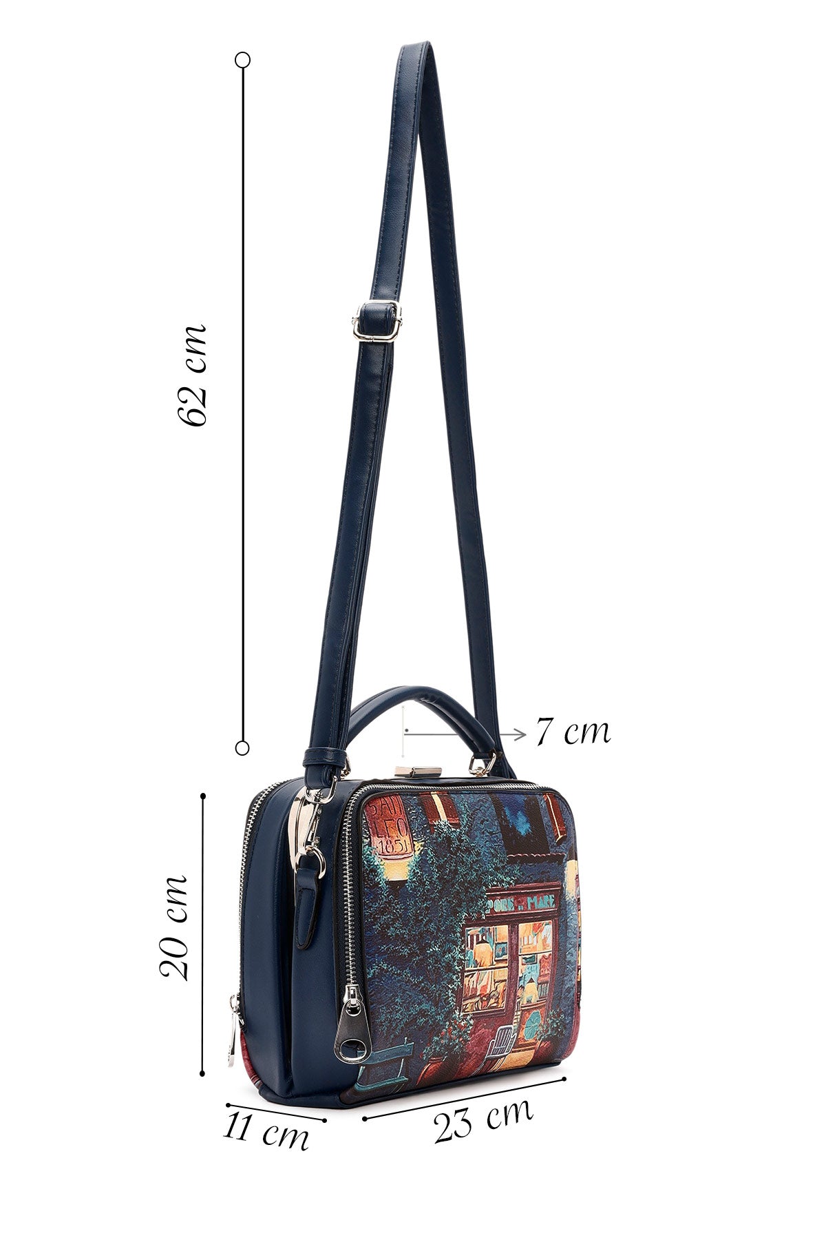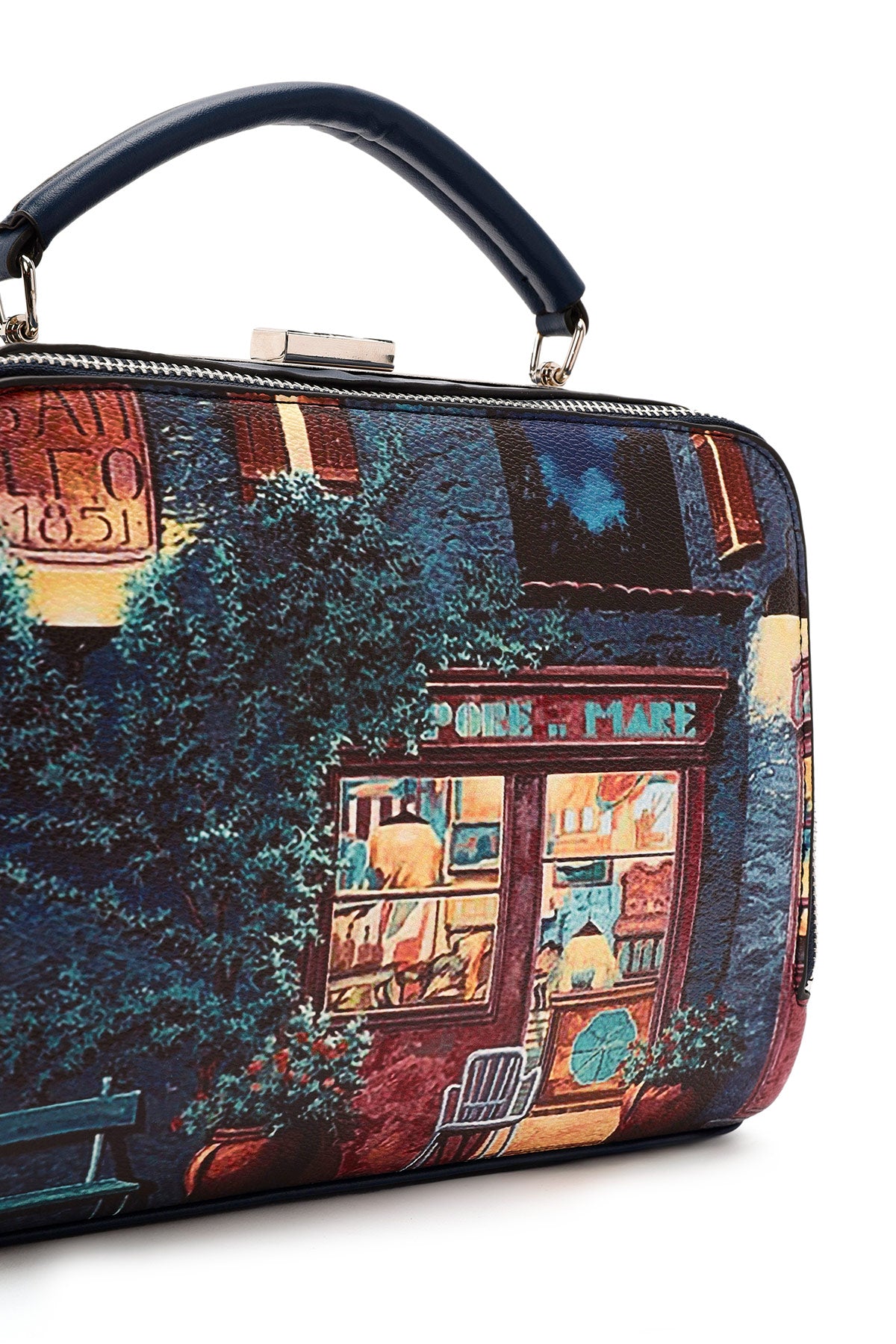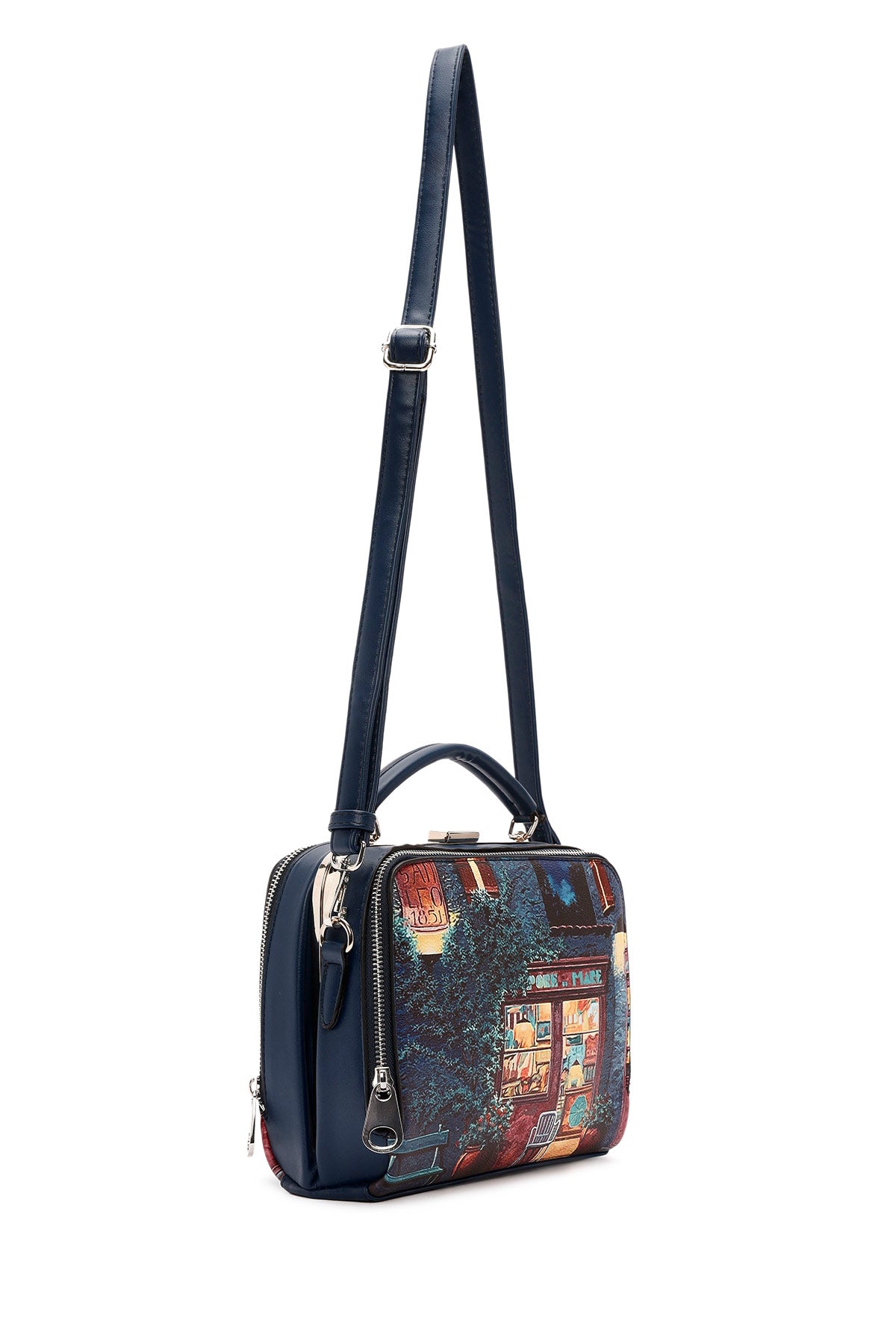 Kadın Lacivert Uzun Askılı Desenli Kol Çantası
