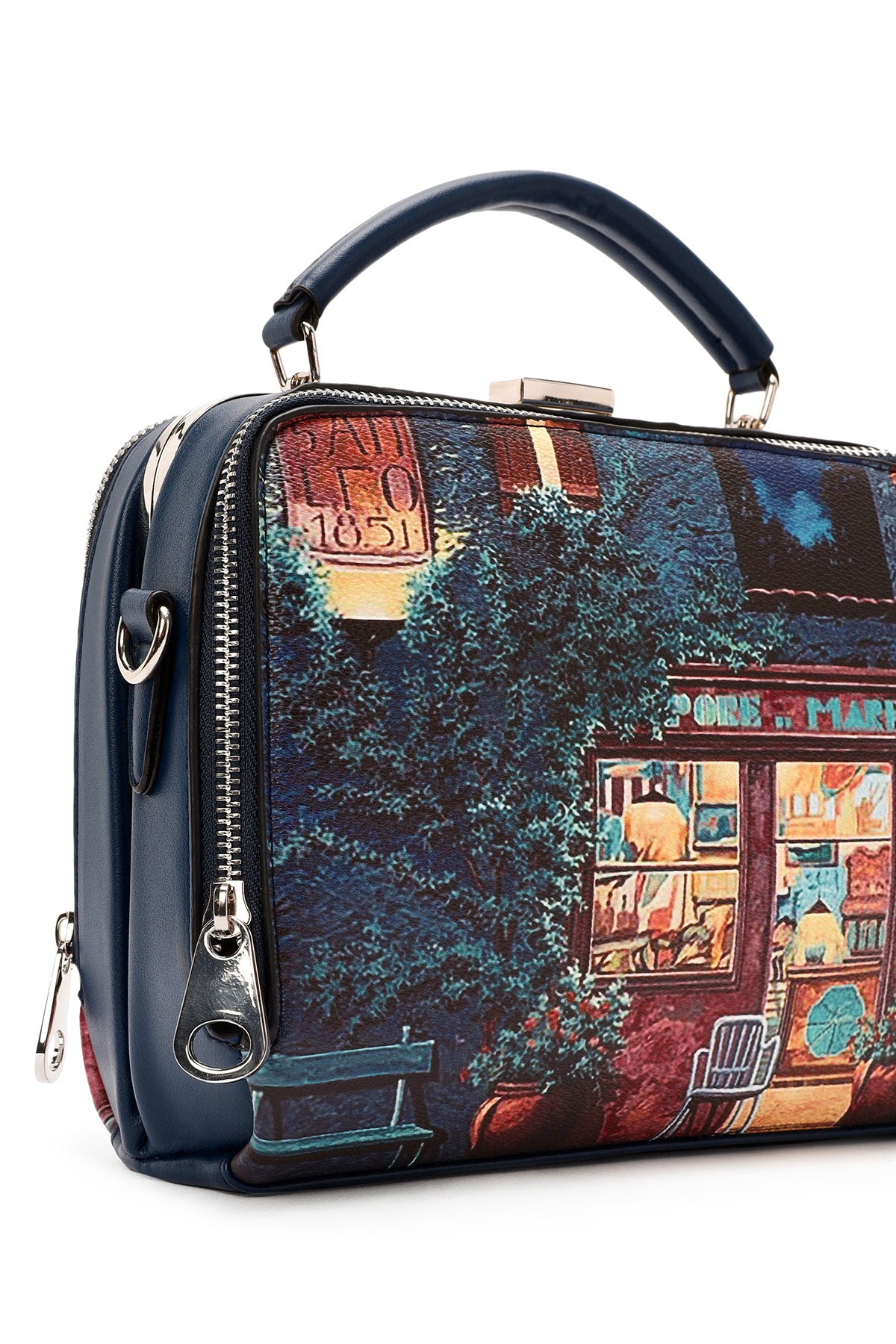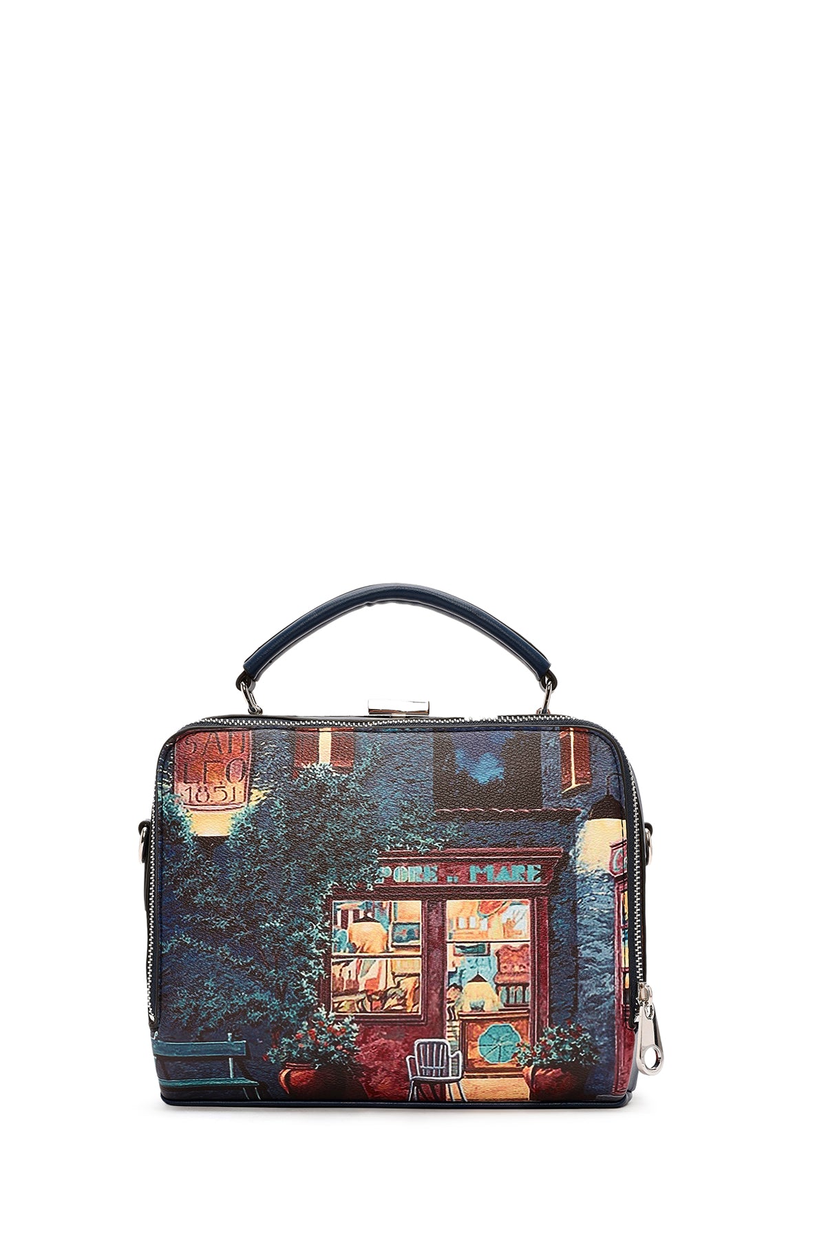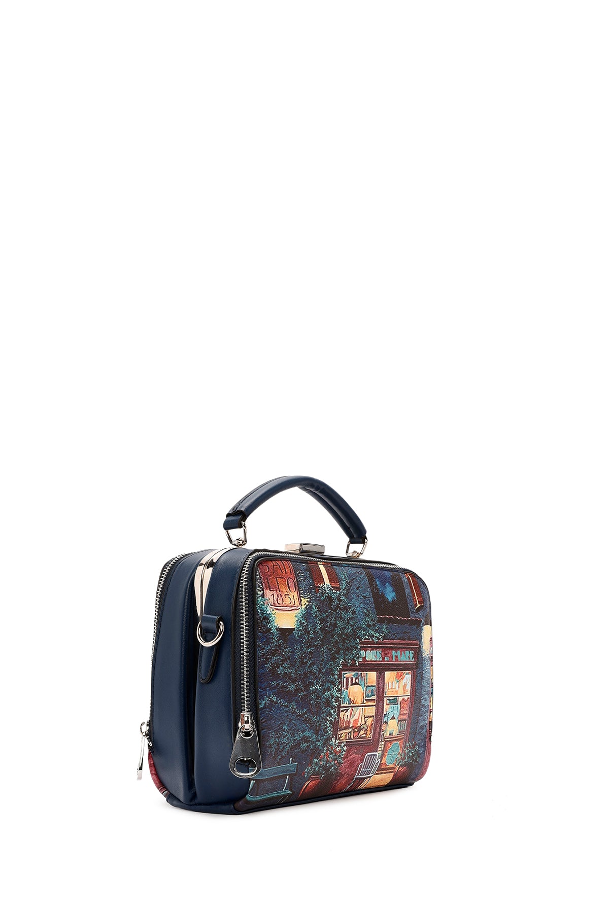 Kadın Lacivert Uzun Askılı Desenli Kol Çantası