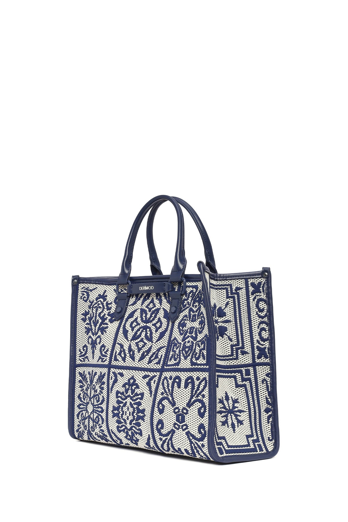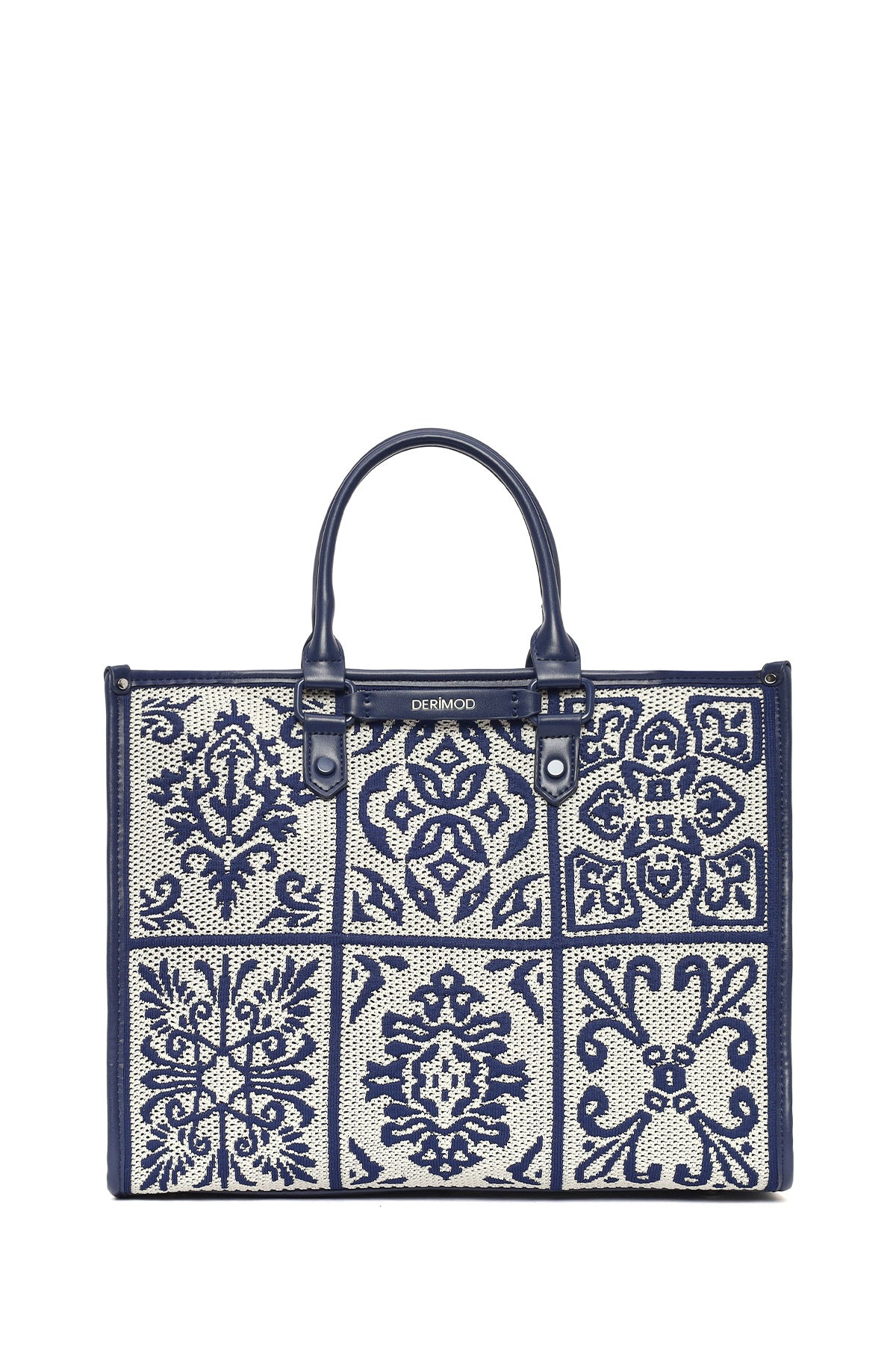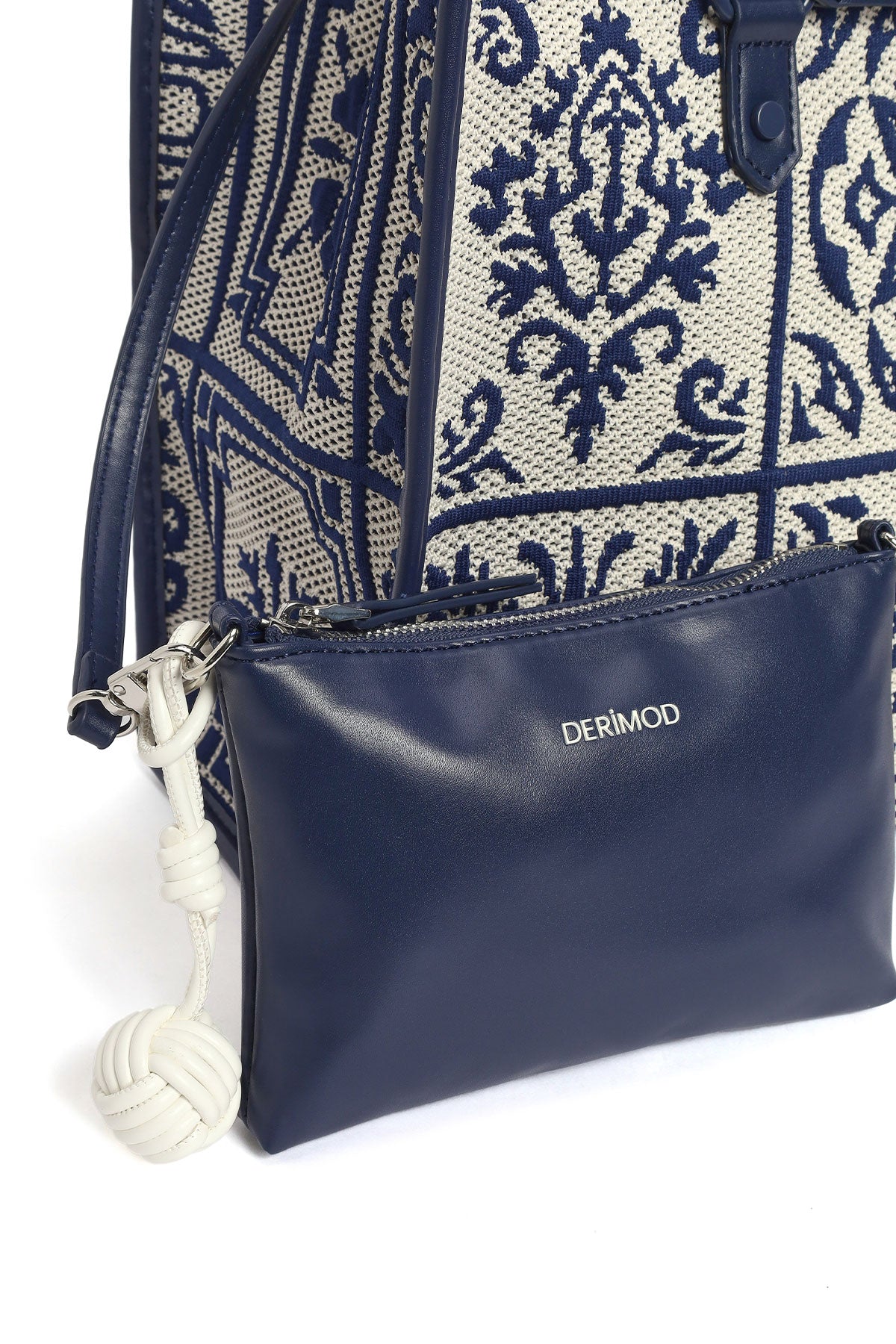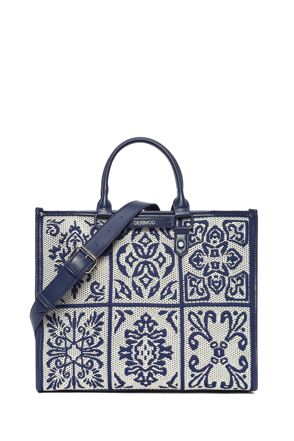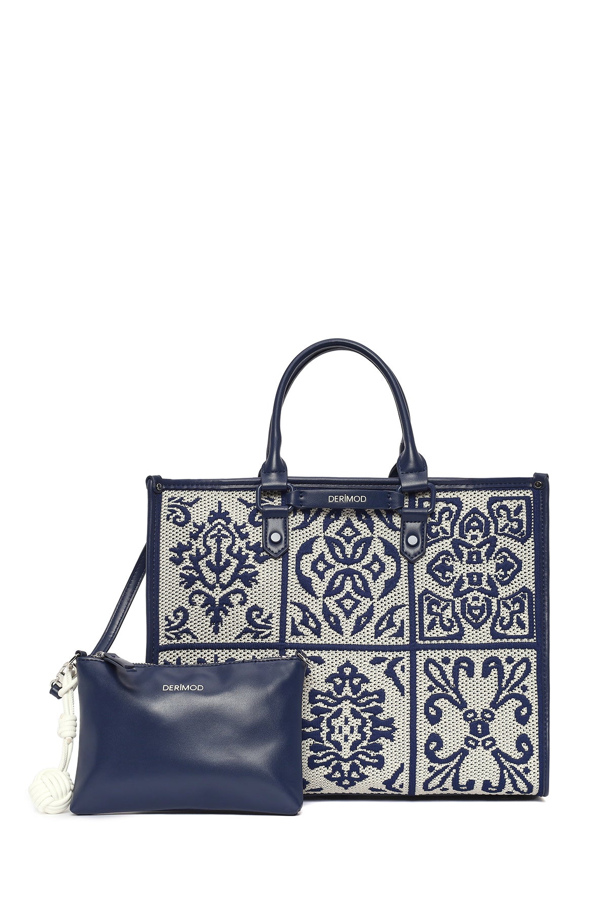 Kadın Lacivert Uzun Askılı Desenli Kumaş Kol Çantası