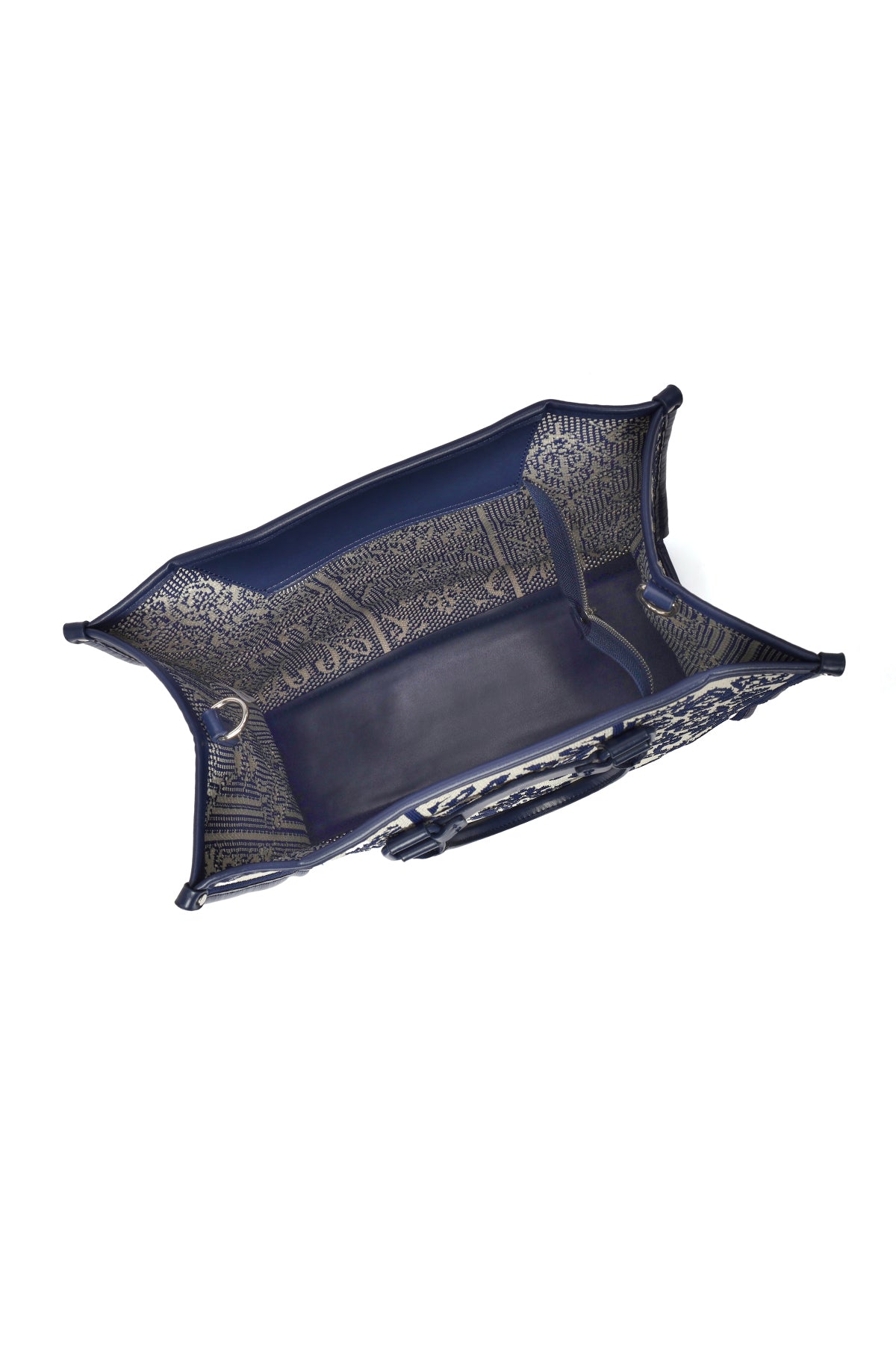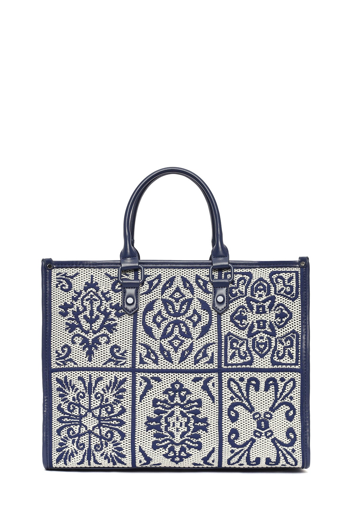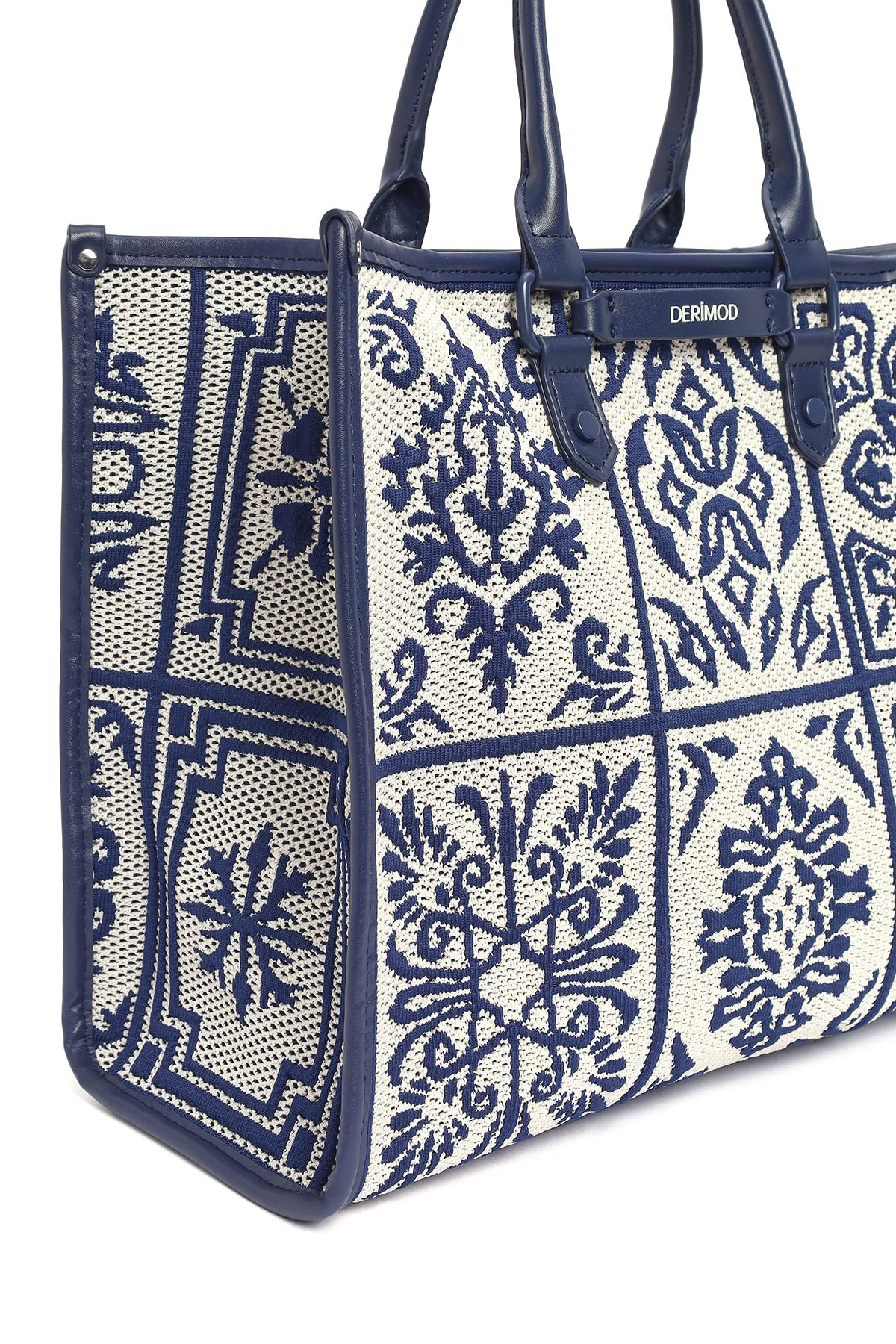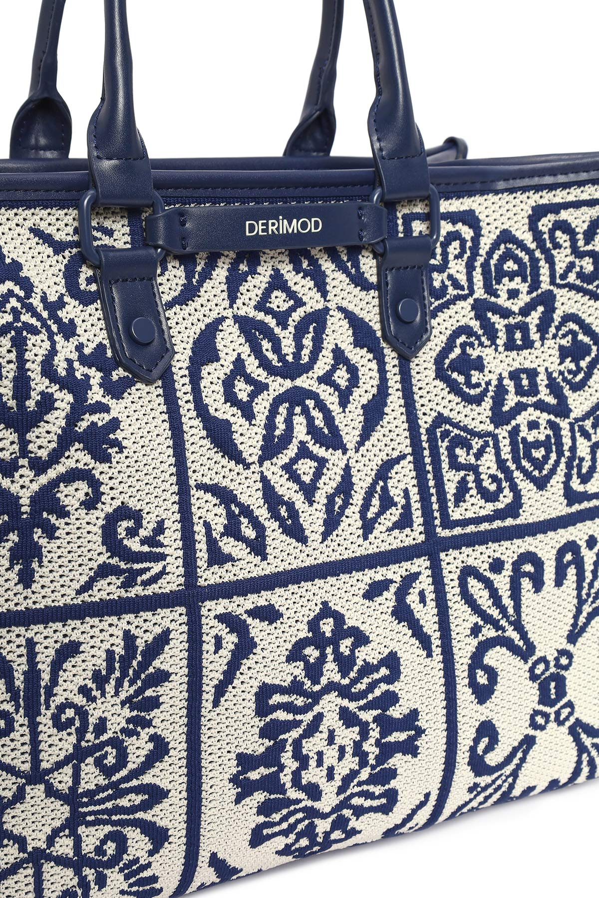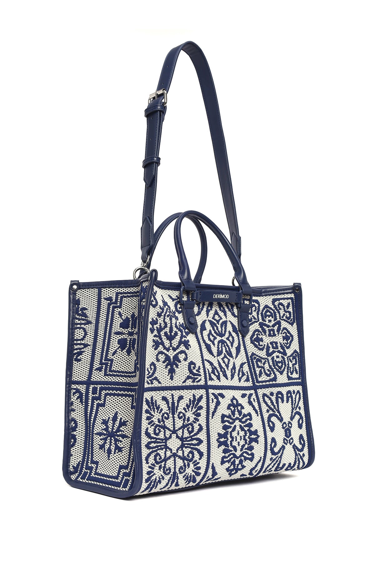Kadın Lacivert Uzun Askılı Desenli Kumaş Kol Çantası
