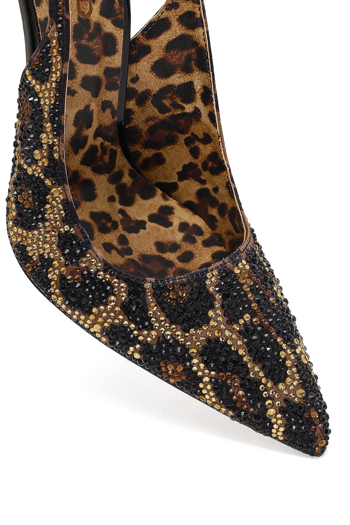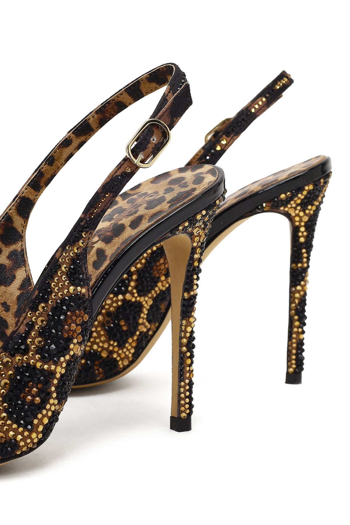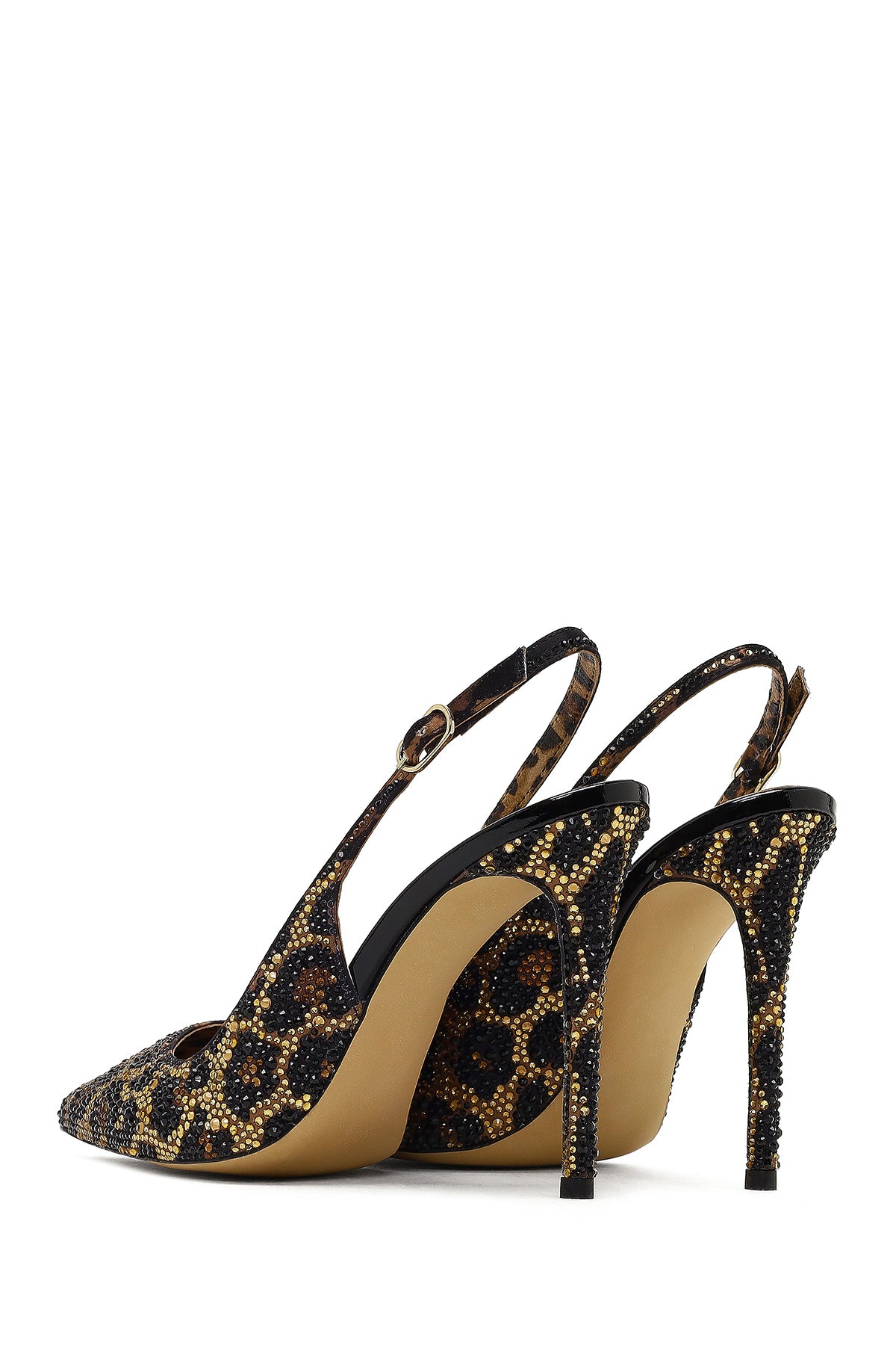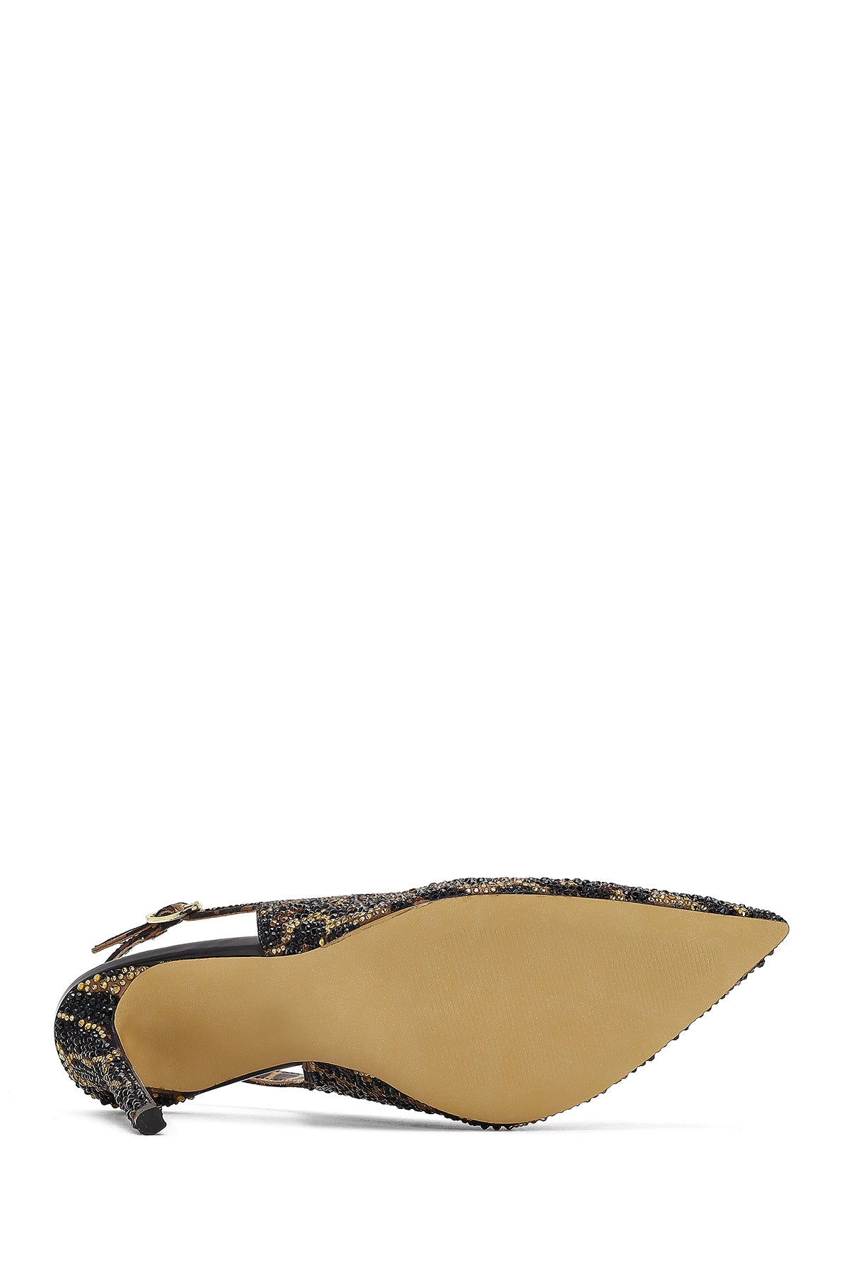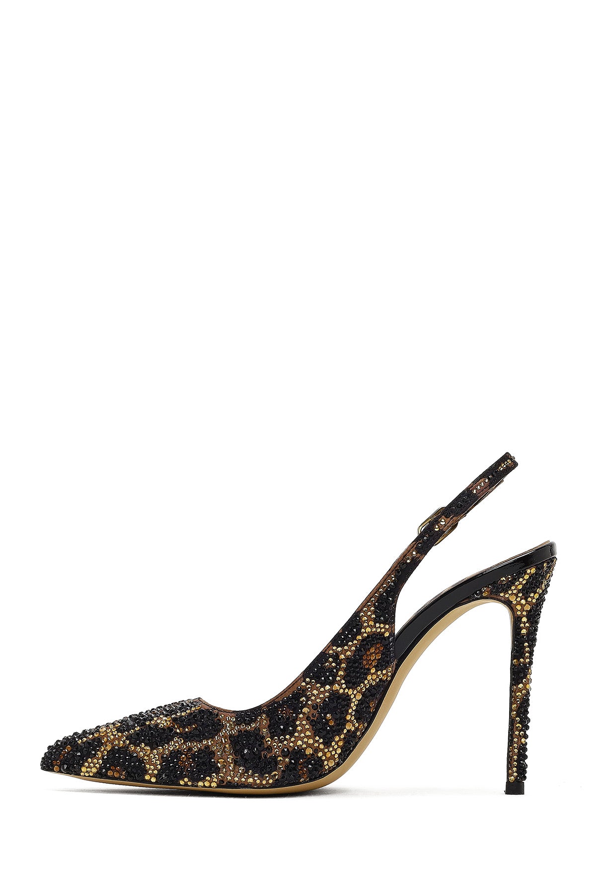 Leopar desenli deri yüzeyiyle göz alıcı görünüm sergileyen bu arkası açık ayakkabı, 11 cm yüksek ince topuk yapısıyla kadın ayağına zarif duruş kazandırır. Leopar desen özelliği doğal kahverengi tonlarında desenli doku sunarken, pointed toe burun formu ayağı uzun gösterir ve şık silüet yaratır. Altın rengi taş detayları ayakkabının ön kısmında parlak aksentler oluşturarak lüks görünüm sağlar ve ışık altında estetik yansımalar yaratır. Arkası açık slingback tasarımı ayak bileği çevresinde ince kayış detayıyla tamamlanır ve ayağı sabit tutar. Deri iç astar nefes alabilir yapısıyla günlük kullanımda ayak sağlığını destekler ve doğal malzeme özelliğiyle zamanla ayağa uyum sağlar. İnce stiletto topuk tasarımı modern çizgileriyle öne çıkar ve yan profilde zarif görünüm oluşturur. Leopar desenin klasik etkisi zamansız şıklık yaratırken, taş süslemelerin parıltısı dikkat çekici detay sunar. Pointed toe burun yapısı ayak parmaklarına uygun form verirken genel görünümde incelik hissi yaratır. Topuk arkası destek yapısı yürüyüş sırasında denge sağlar ve taban yapısı düz zemin temasında stabilite gösterir. Mevsim geçişlerine uygun yapısıyla farklı hava koşullarında kullanılabilir özellik sergiler. Akşam etkinliklerinde göz alıcı görünüm sağlarken, özel davetlerde şık tamamlayıcı rol oynar ve kombinlerde cesur stil yaratır. Ürün kodu: 25AFD1211TS