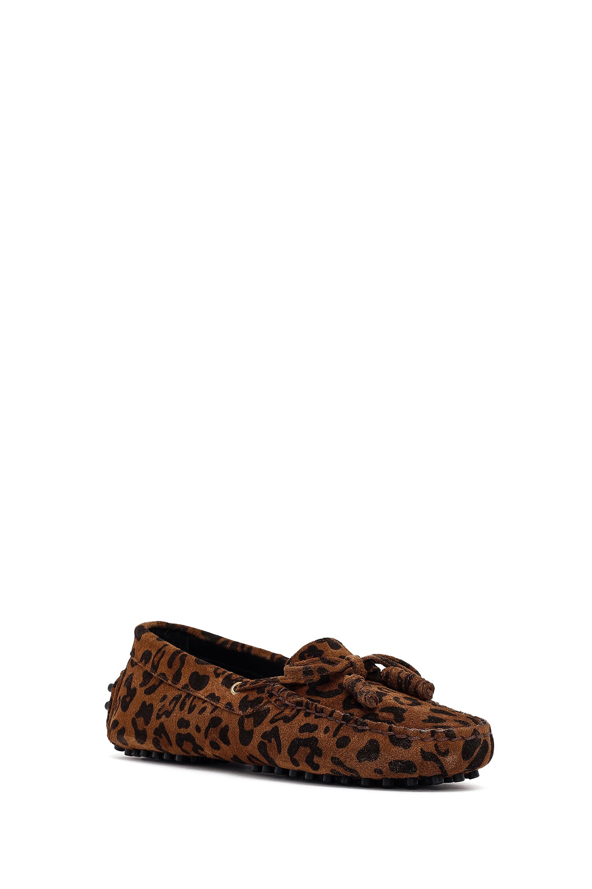 Derimod'un sonbahar koleksiyonundan, süet deri üzerine leopar desenli tasarımı ile dikkat çeken loafer modeli, 1 cm topuk yüksekliği ile günlük kullanıma uygun bir tasarım sunuyor. Üst kısmındaki fiyonk detayı ile feminen bir görünüm sergileyen model, deri iç astarı sayesinde ayağınızı rahat ettiriyor. Klasik loafer formunda tasarlanan ayakkabı, jean'lerden elbiselere, eteklerden ofis kombinlerine kadar geniş bir kullanım alanı sunuyor. İlkbahar ve sonbahar mevsimlerinde günün her saatinde kullanılabilir. Ürün kodu: 25AFD141910