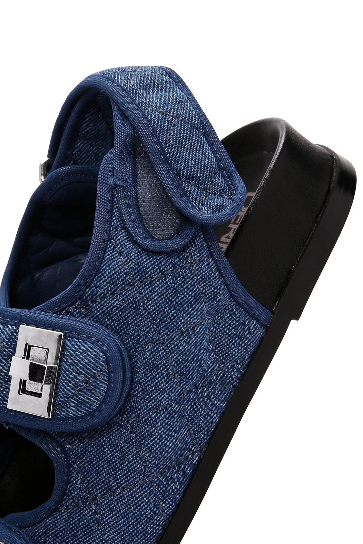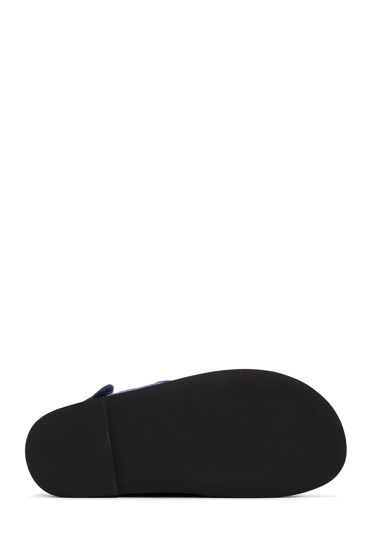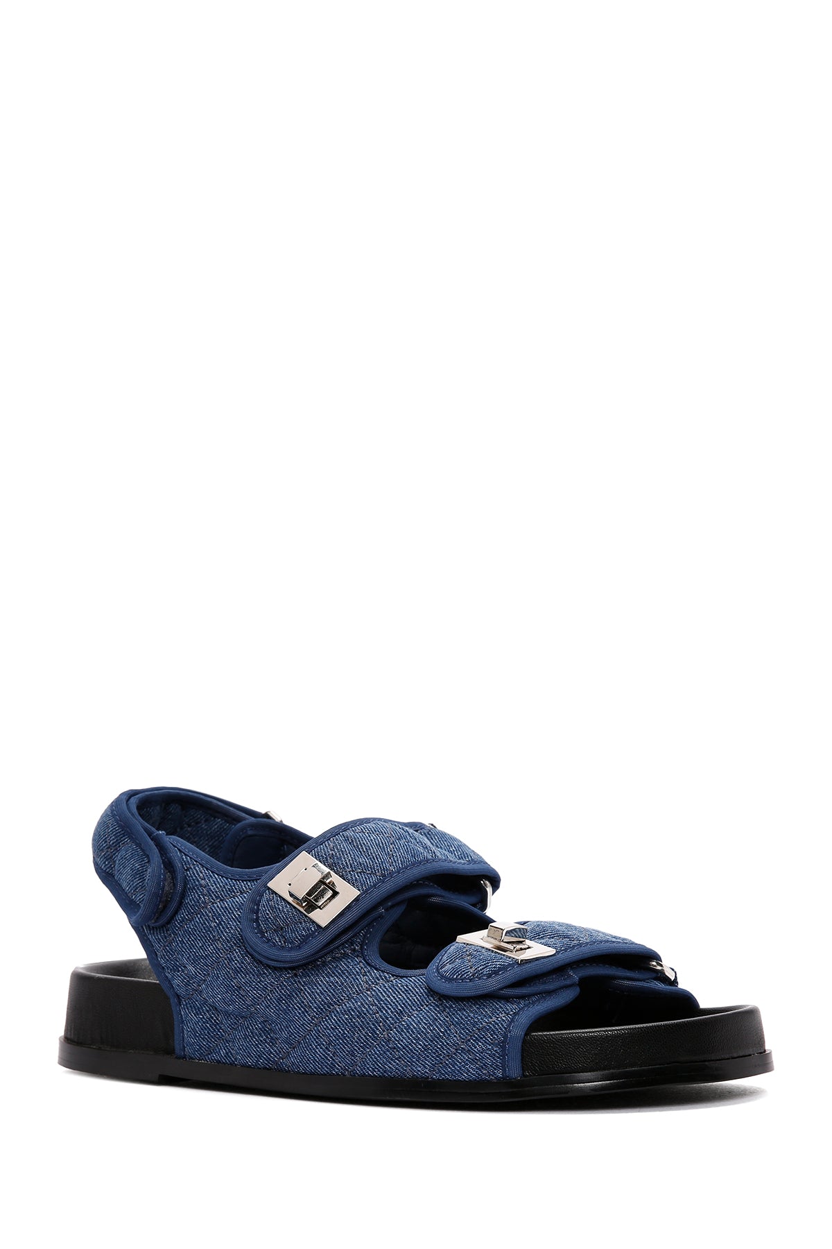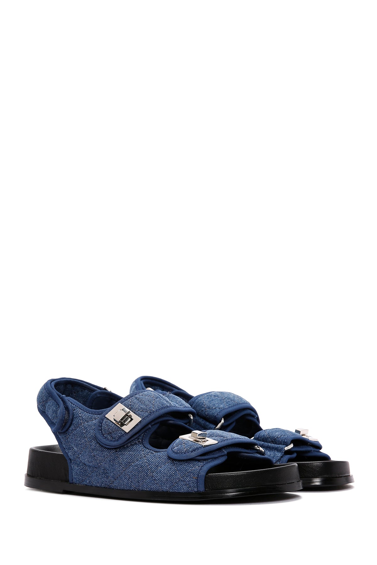 Kadın Mavi Bilekten Bantlı Jean Kumaş Sandalet