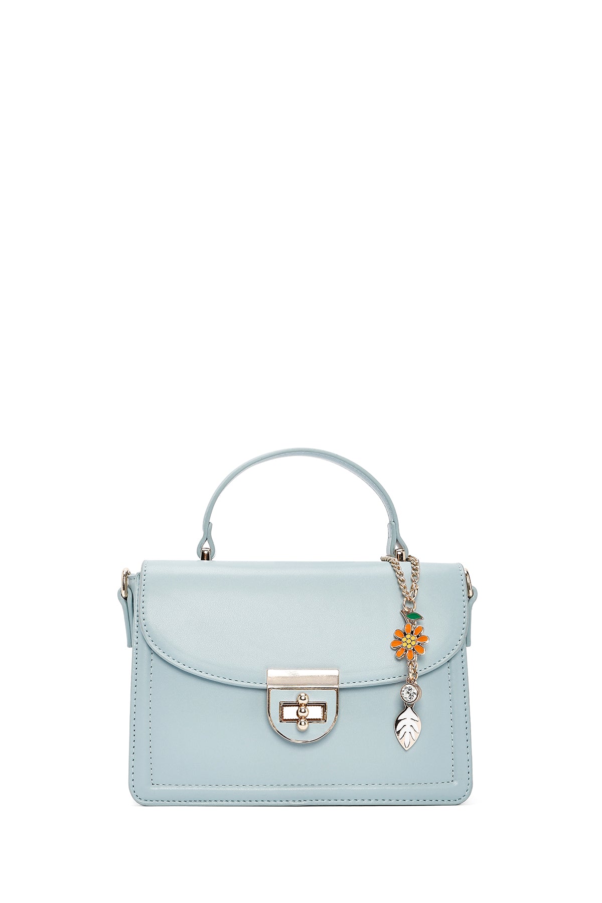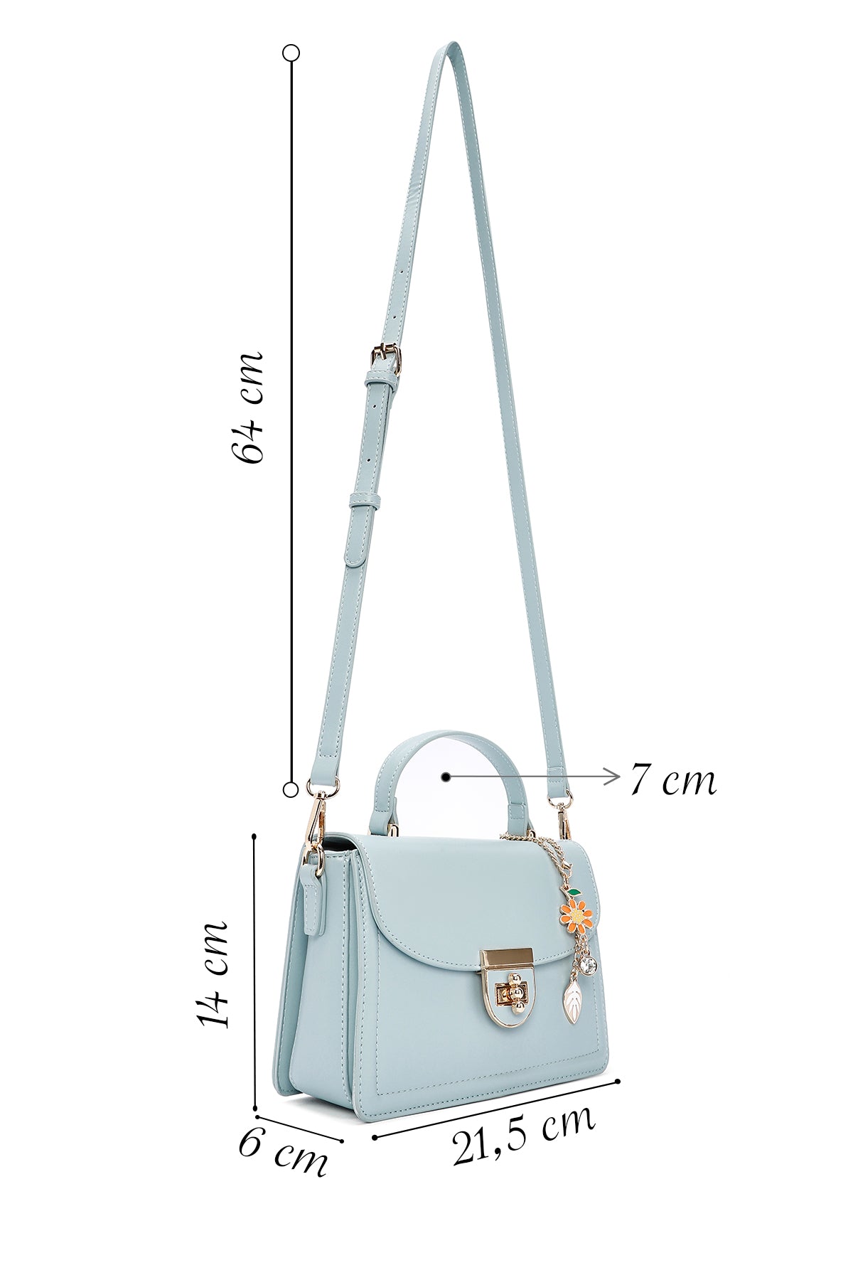 Kadın Mavi Uzun Askılı Aksesuar Detaylı Çapraz Çanta