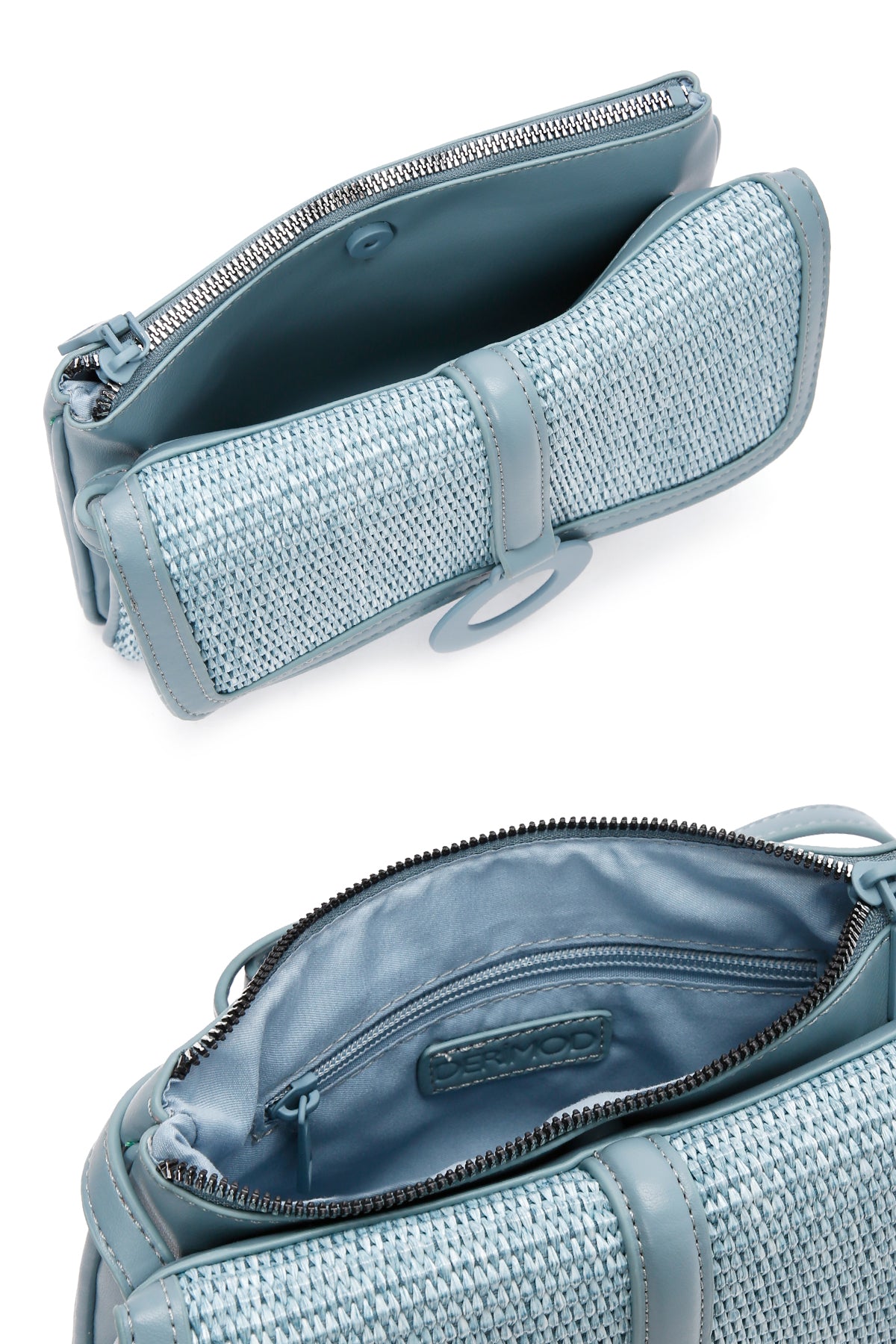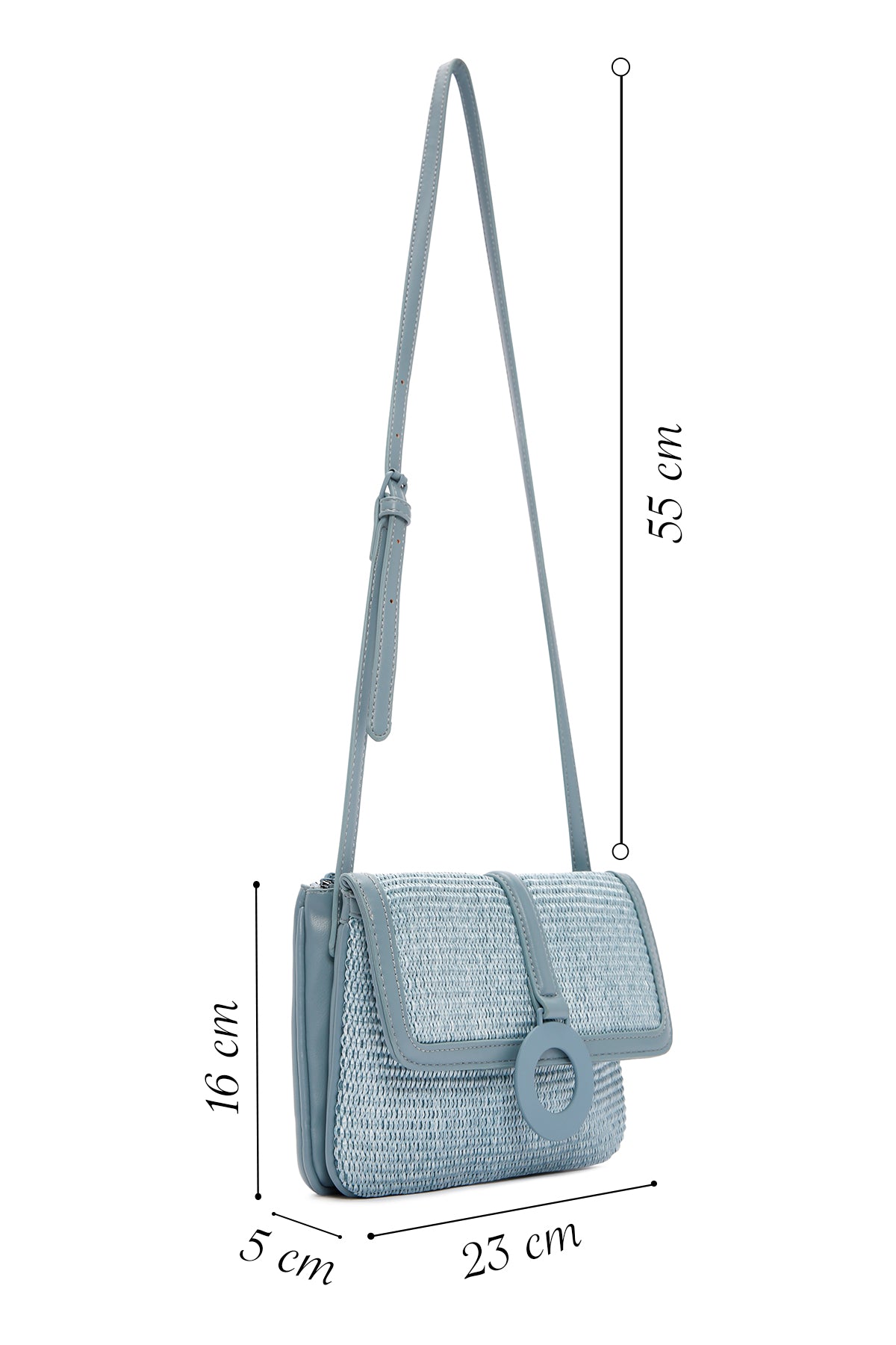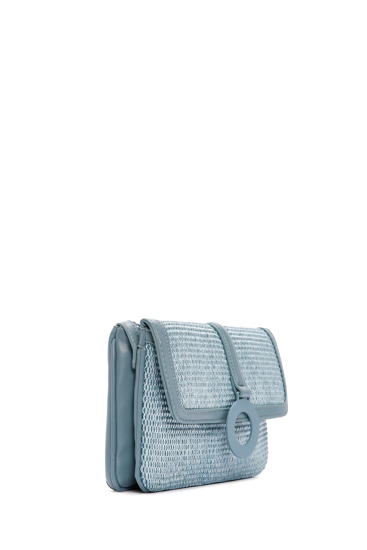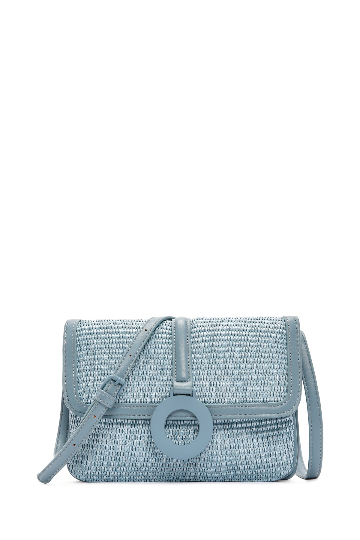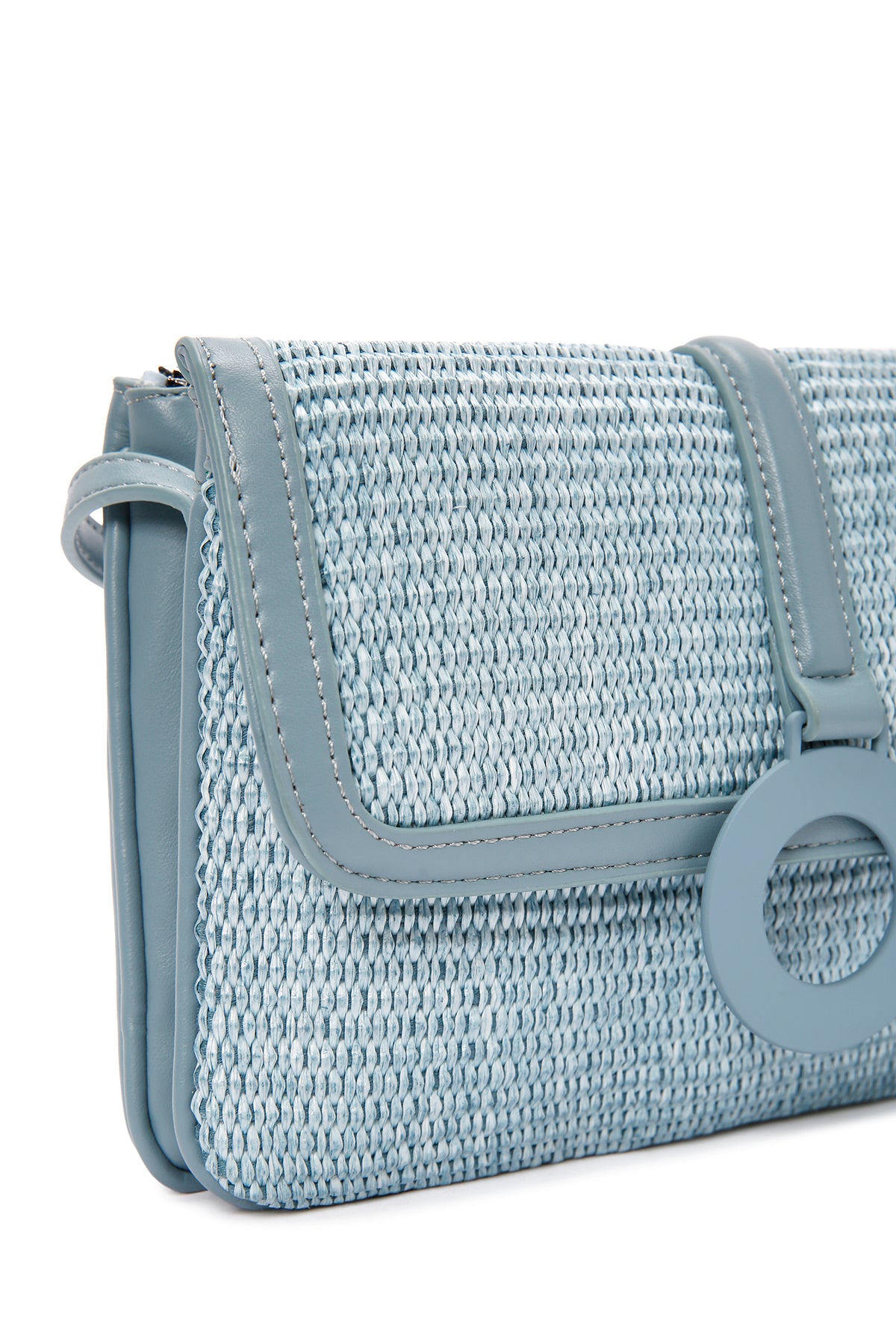 Kadın Mavi Uzun Askılı Hasır Çapraz Çanta