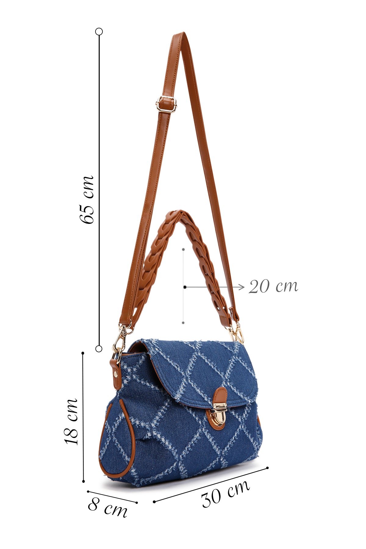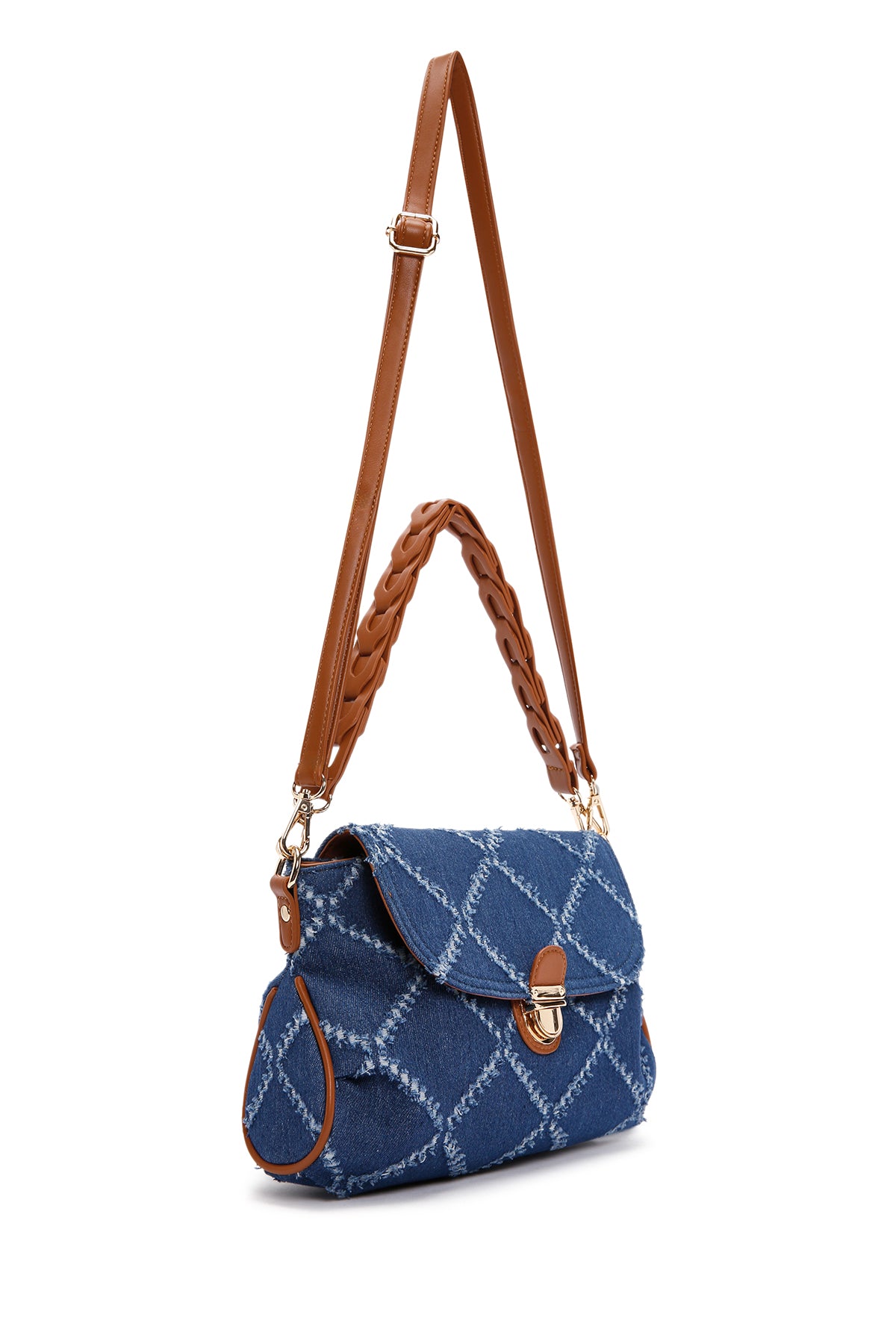 Kadın Mavi Uzun Askılı Jean Kumaş Omuz Çantası