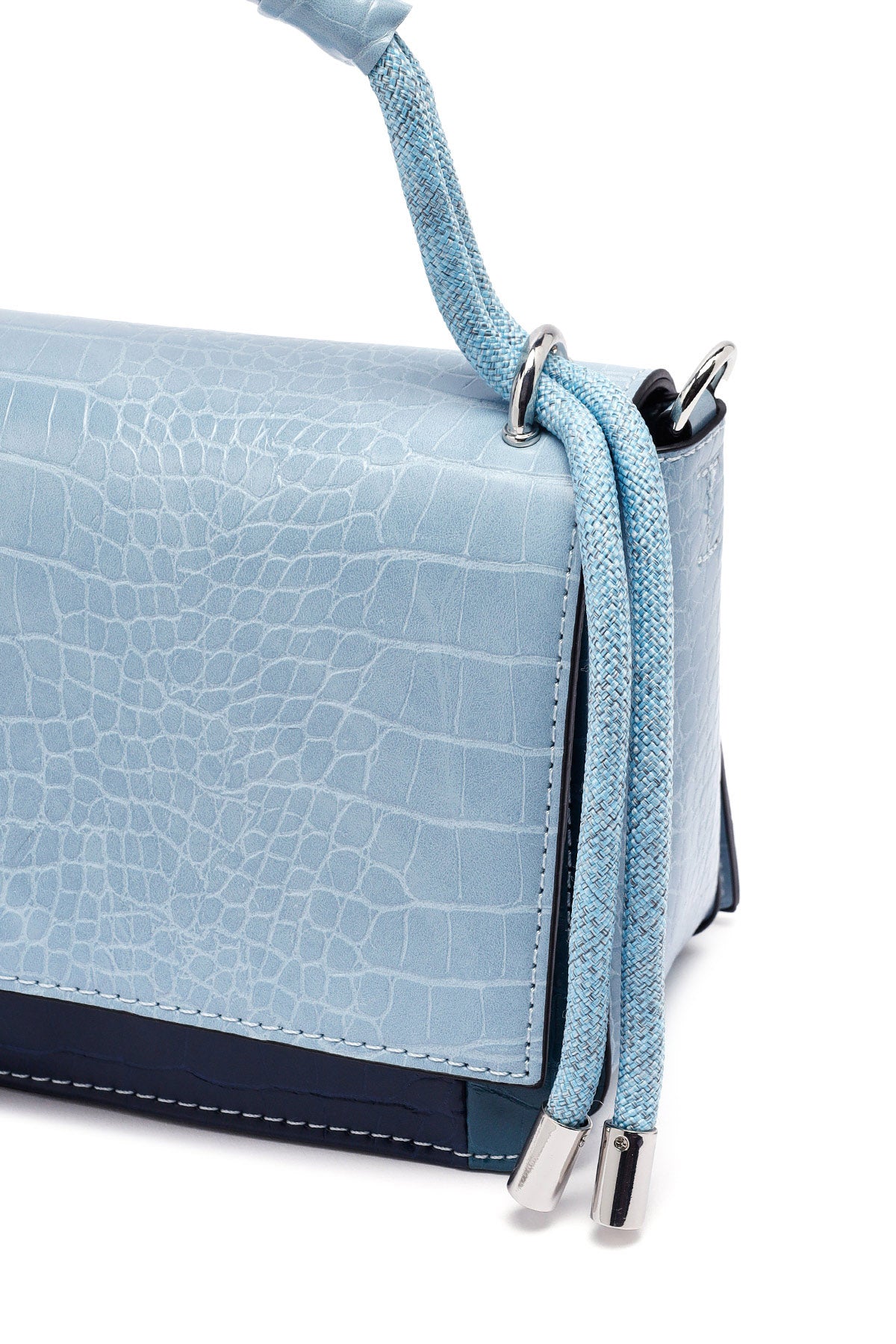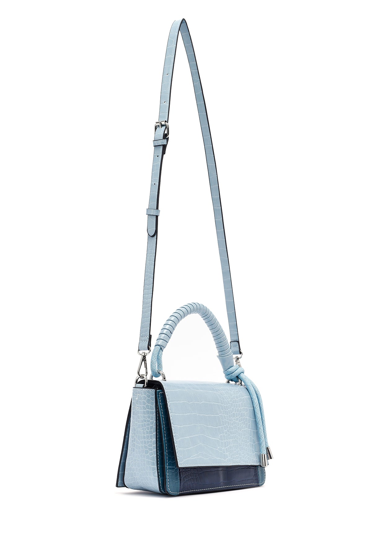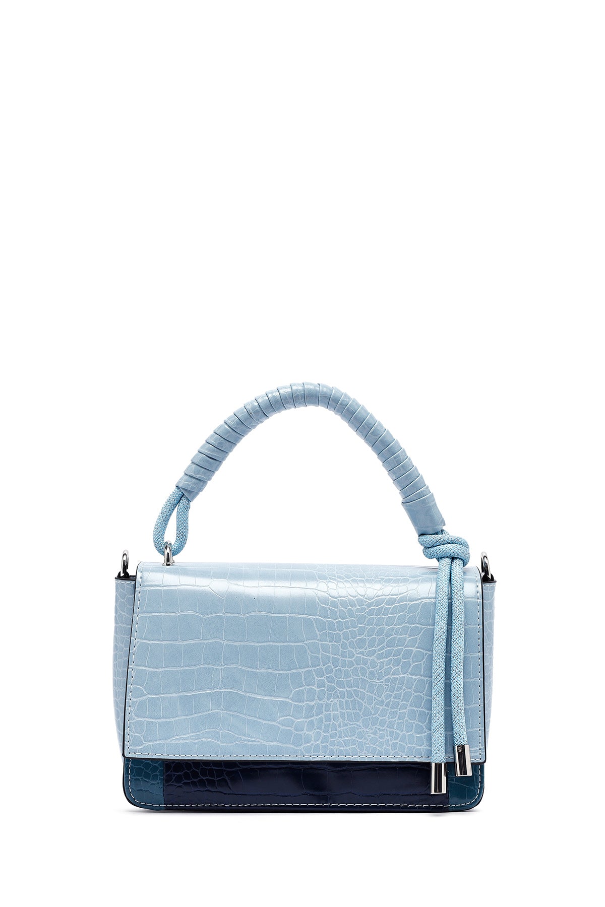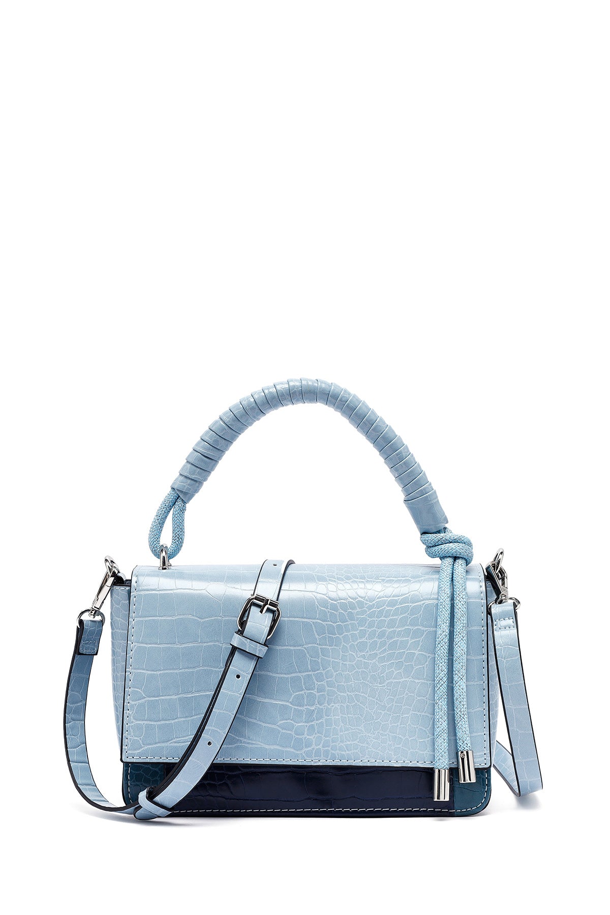 Kadın Mavi Uzun Askılı Kroko Desenli Çapraz Çanta