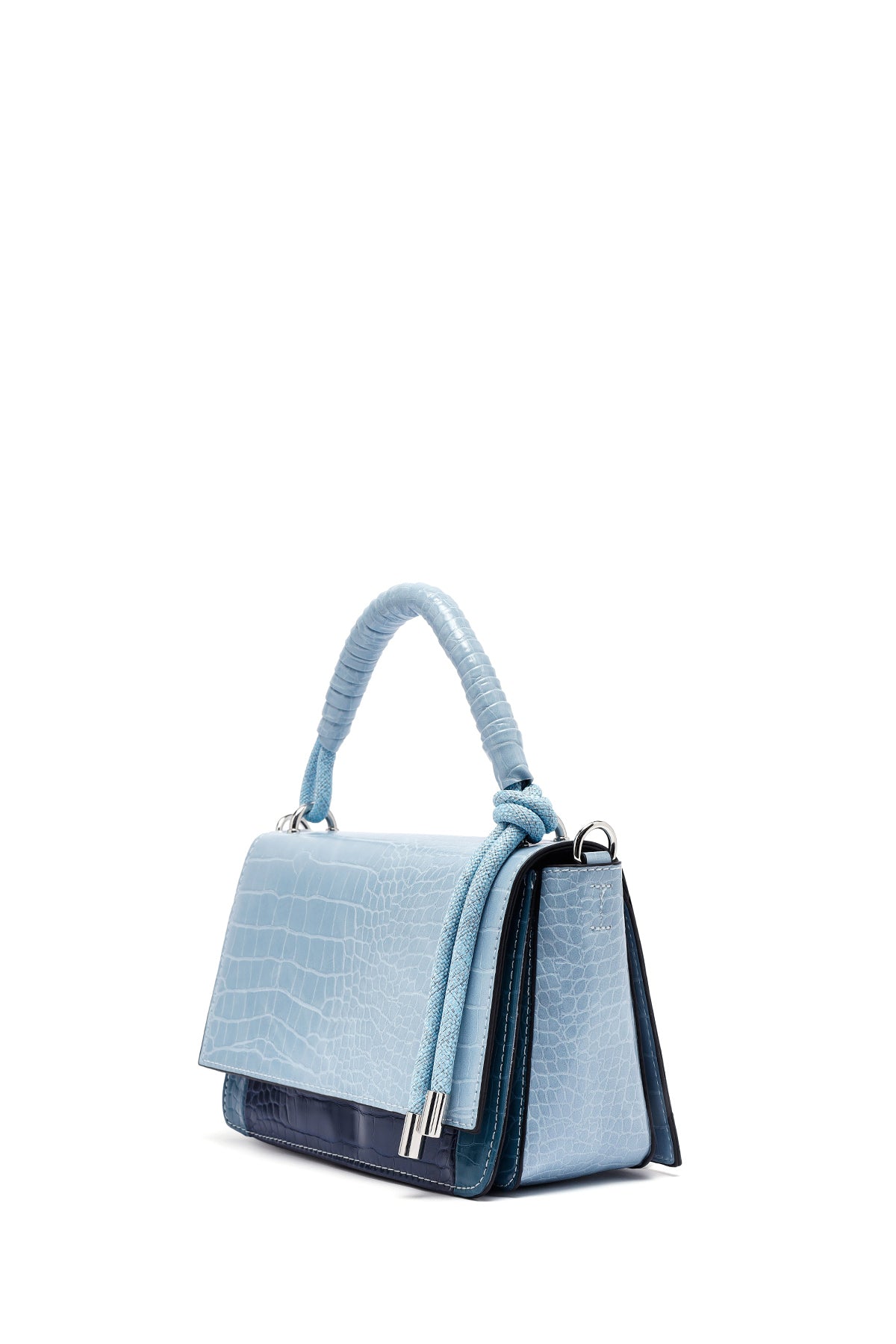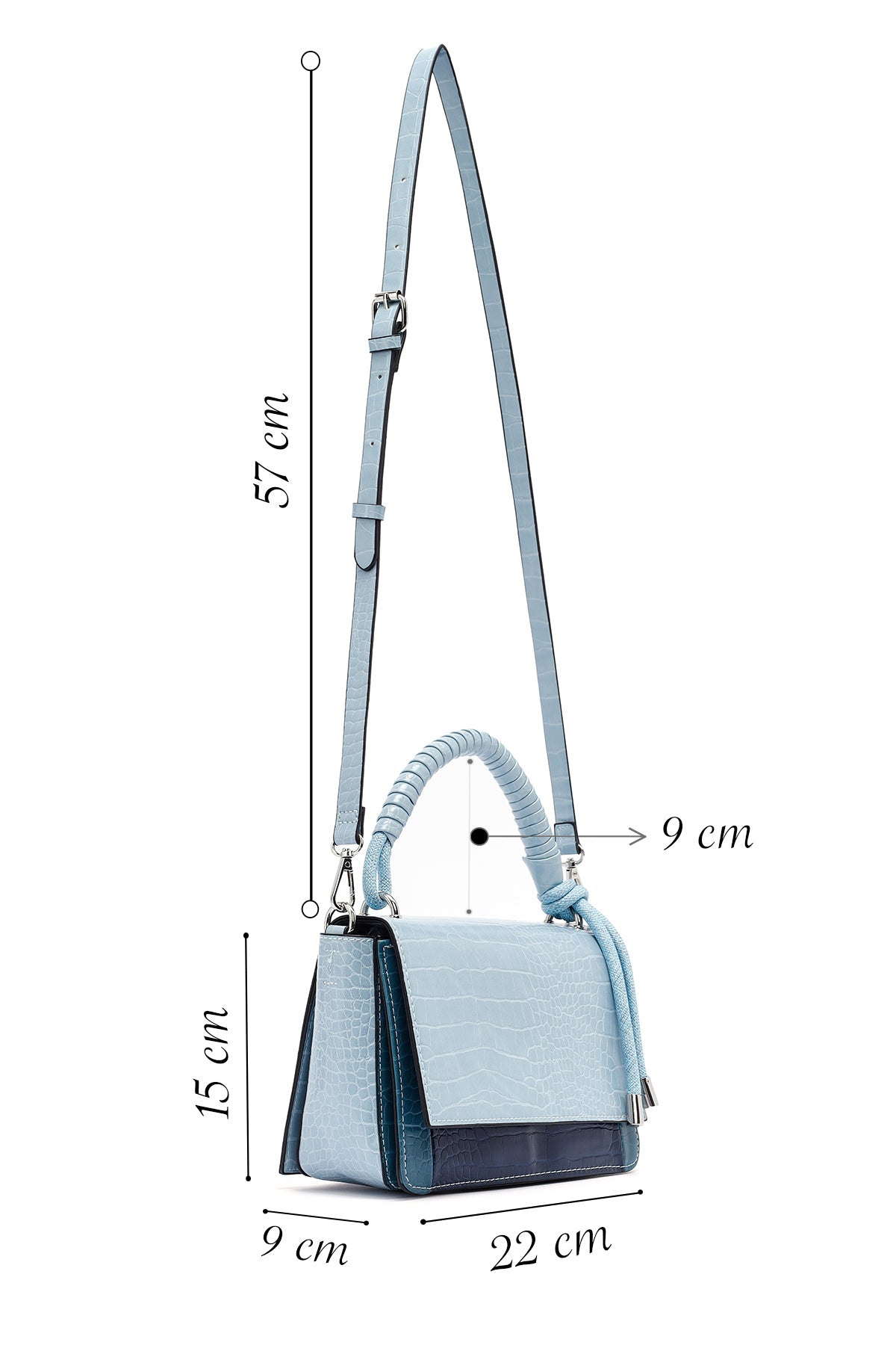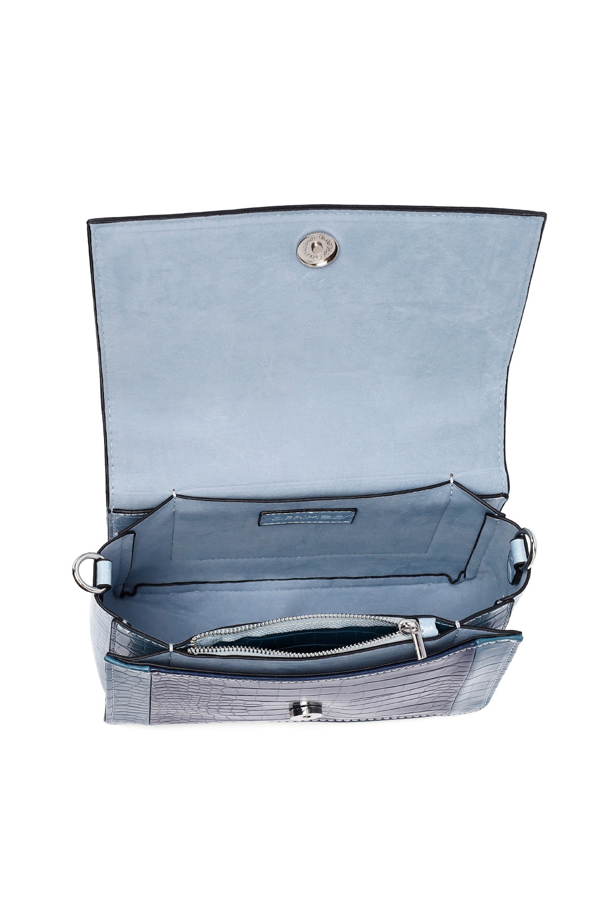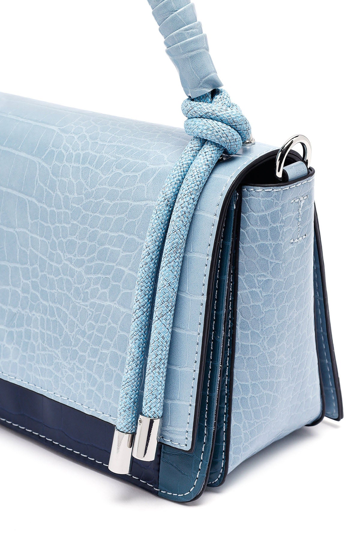 Kadın Mavi Uzun Askılı Kroko Desenli Çapraz Çanta