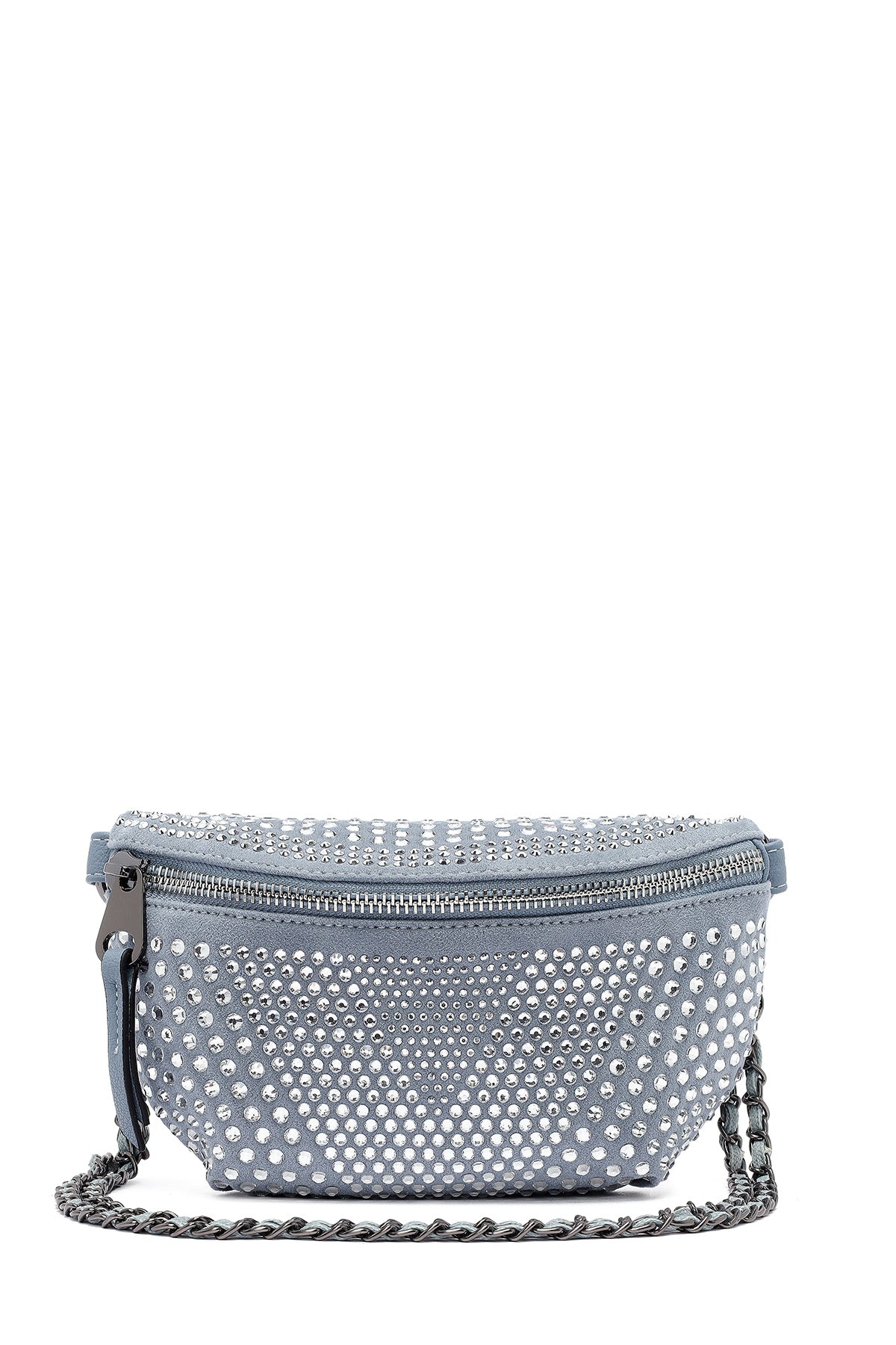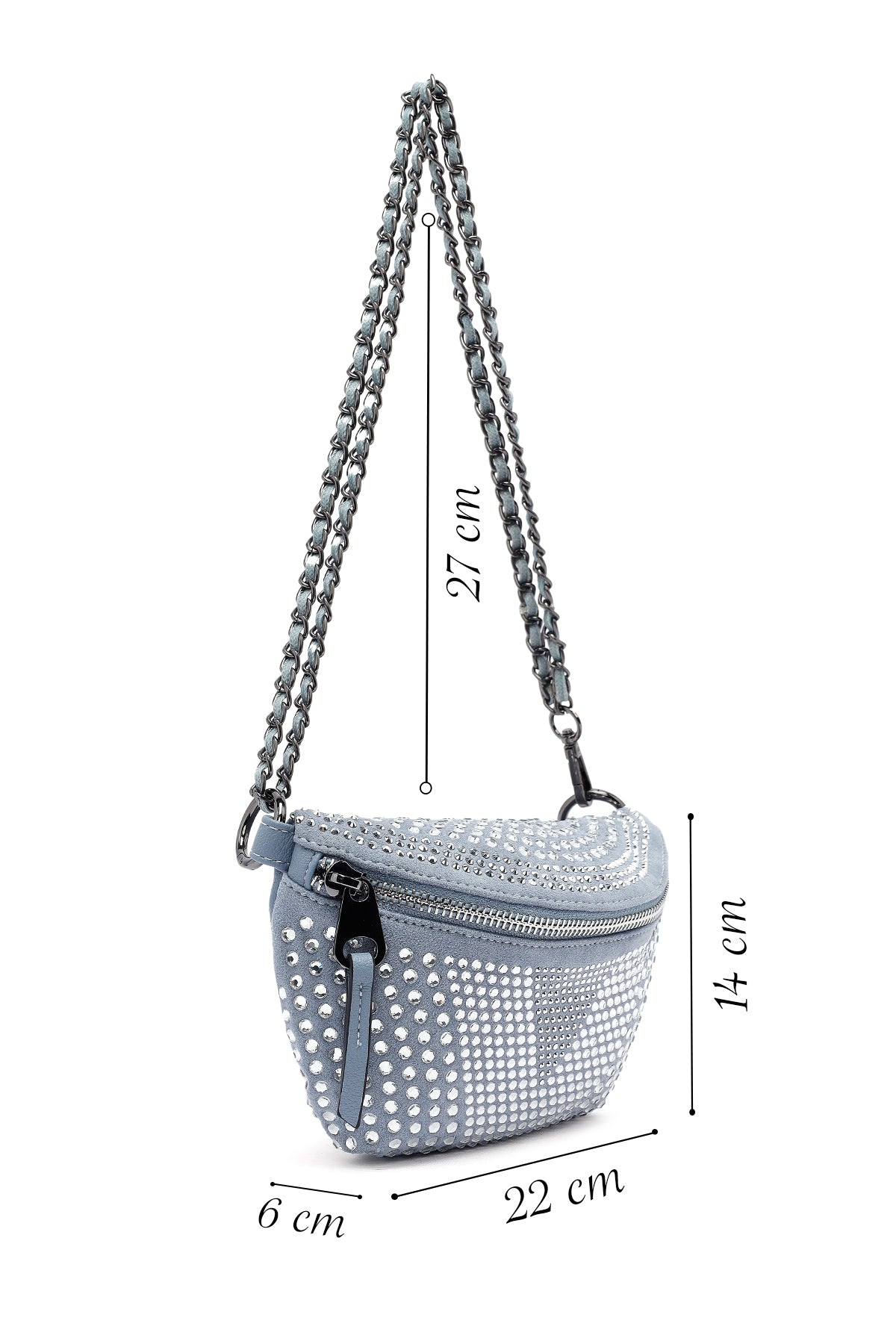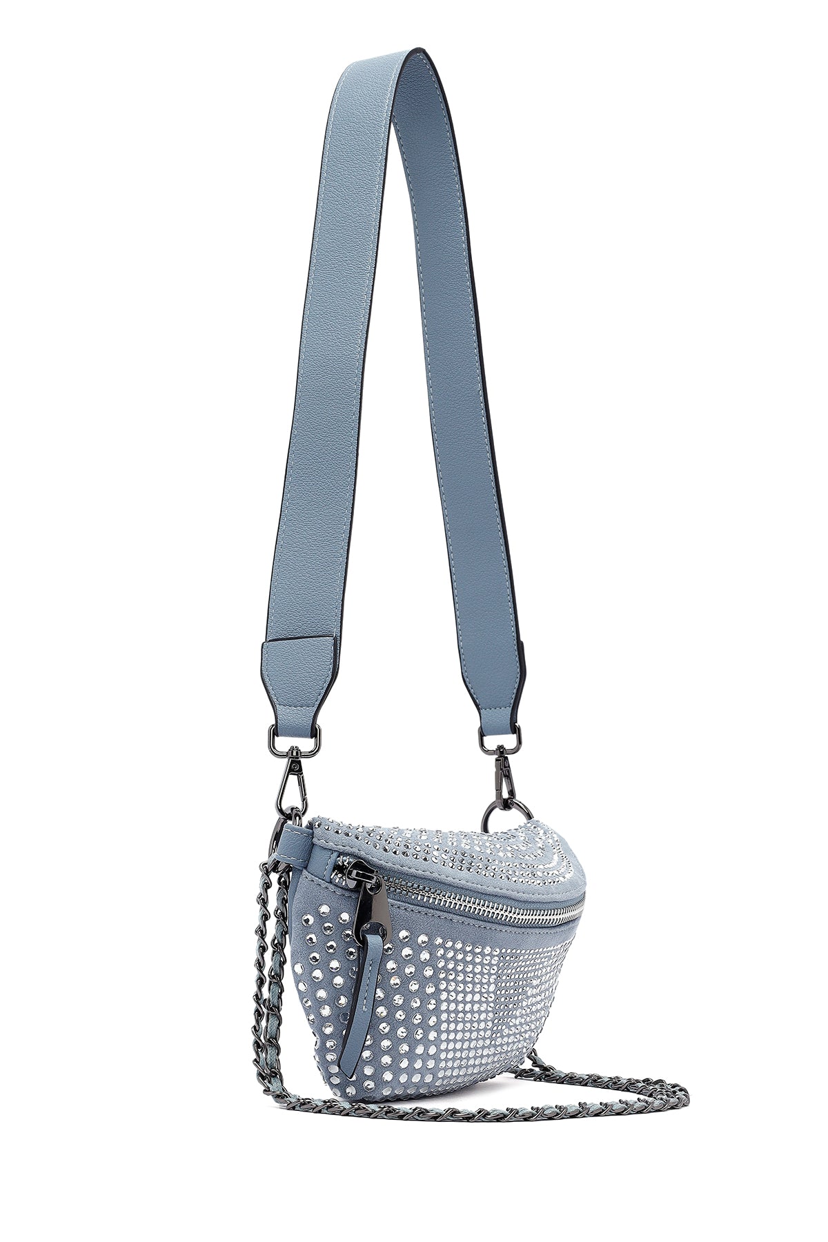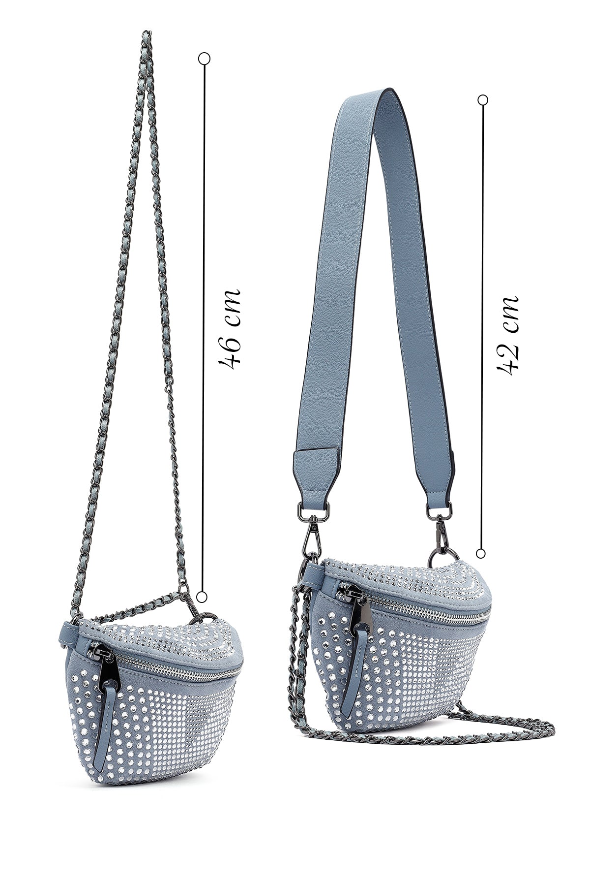 Kadın Mavi Uzun Askılı Taşlı Çapraz Çanta