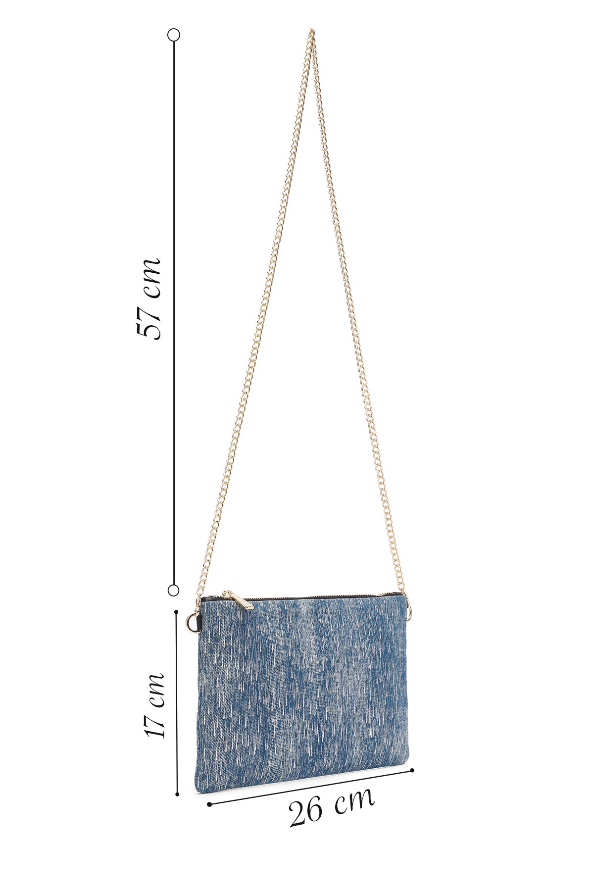 Kadın Mavi Uzun Zincir Askılı Jean Kumaş Portföy Çanta