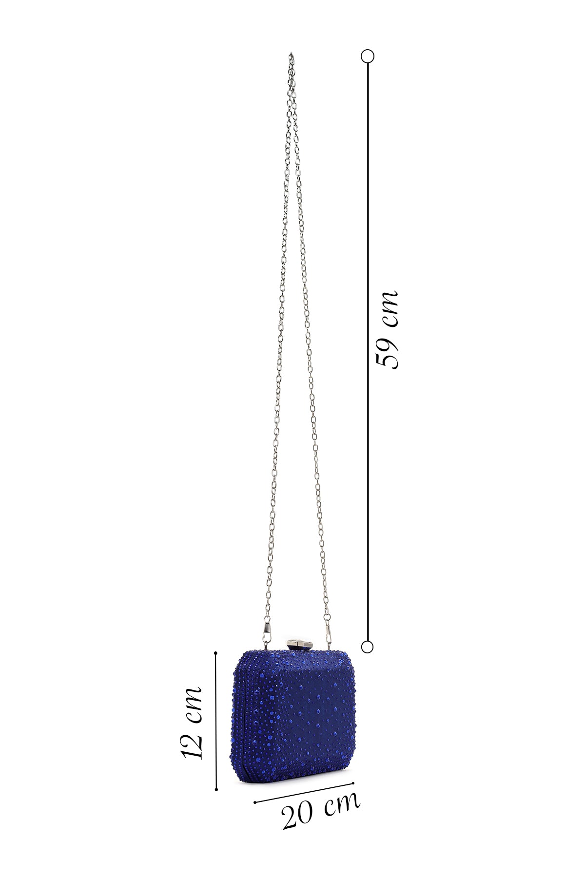 Kadın Mavi Uzun Zincir Askılı Taşlı Portföy Çanta