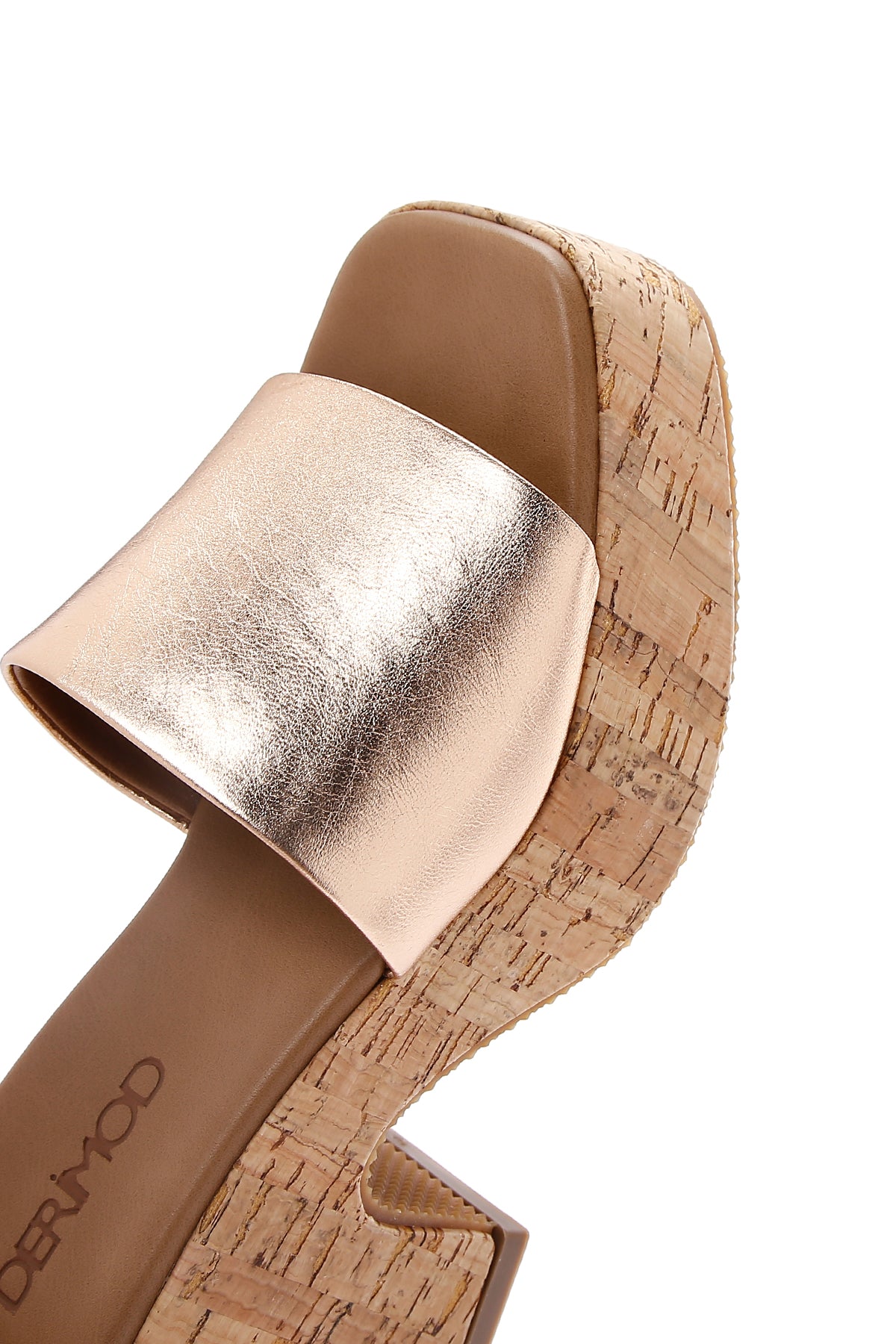 Derimod’un Zarif ve Şıklığı bir arada sunan Kadın Pembe Altın Deri Dolgu Topuk Plaftorm Terlik ile tarzınızı konuşturun. Ürünün kodu: 23SFD550232 ZD