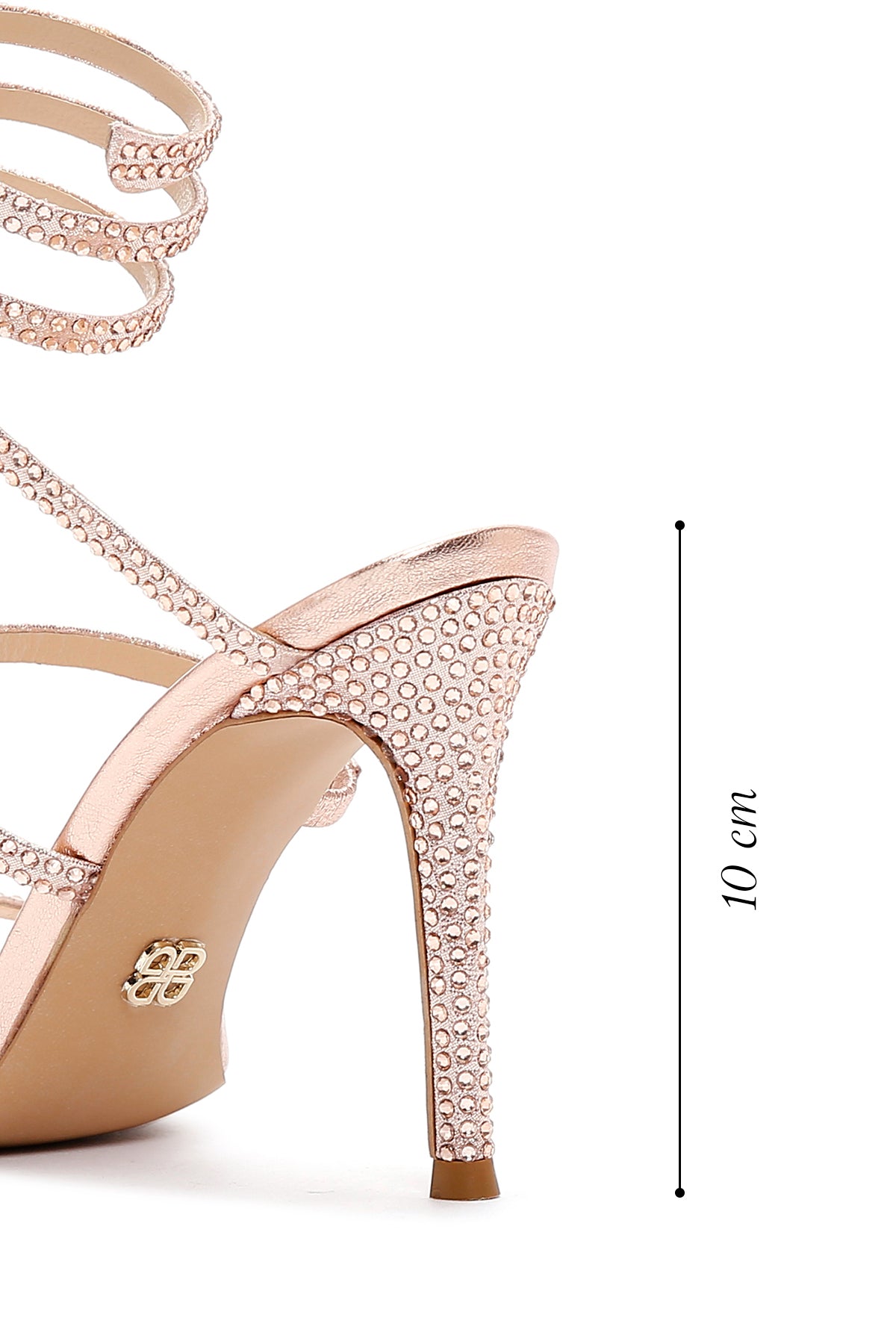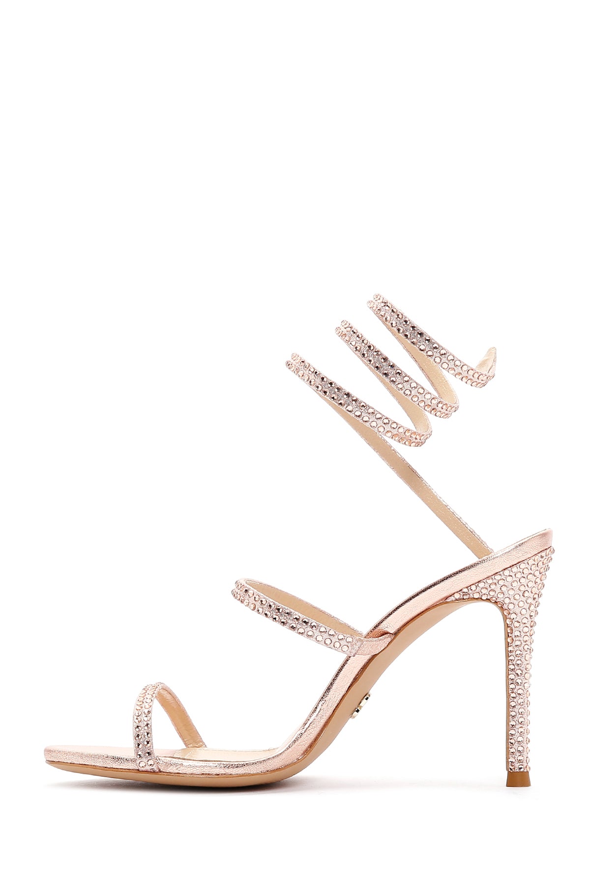 Derimod’un Zarif ve Şıklığı bir arada sunan Kadın Pembe Altın Deri Taşlı İnce Topuklu Sandalet ile tarzınızı konuşturun. Ürünün kodu: 23SFD121014 ZD