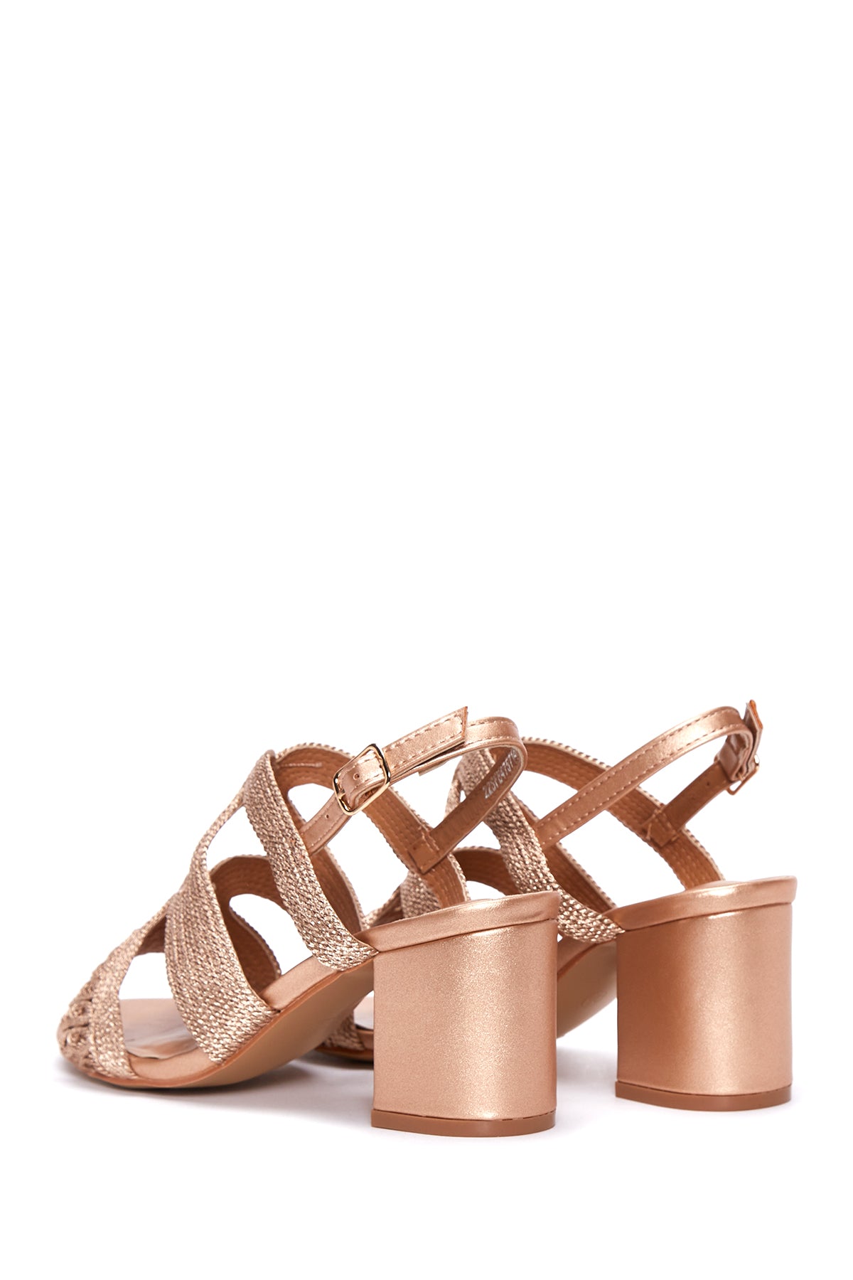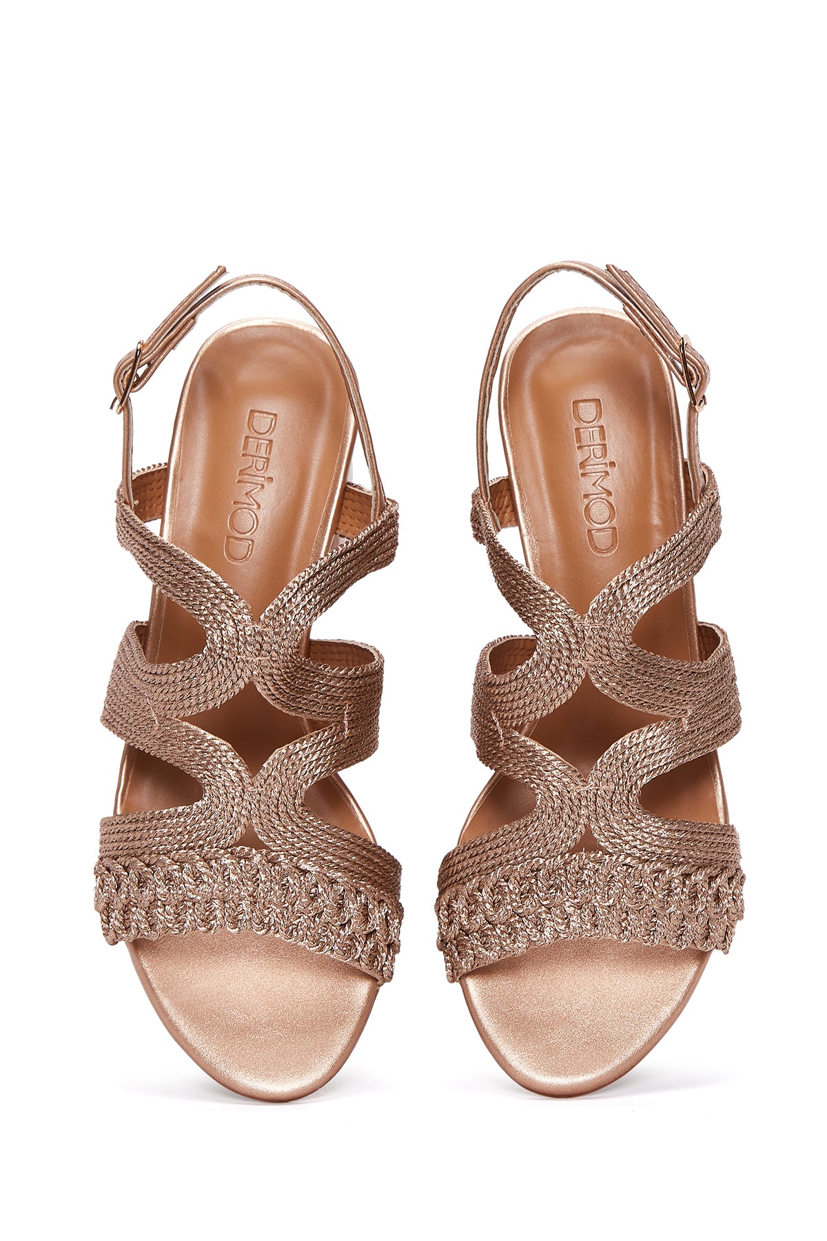 Derimod’un Zarif ve Şıklığı bir arada sunan Kadın Pembe Altın Kalın Topuklu Sandalet ile tarzınızı konuşturun. Ürünün kodu: 23SFE464414 ZD