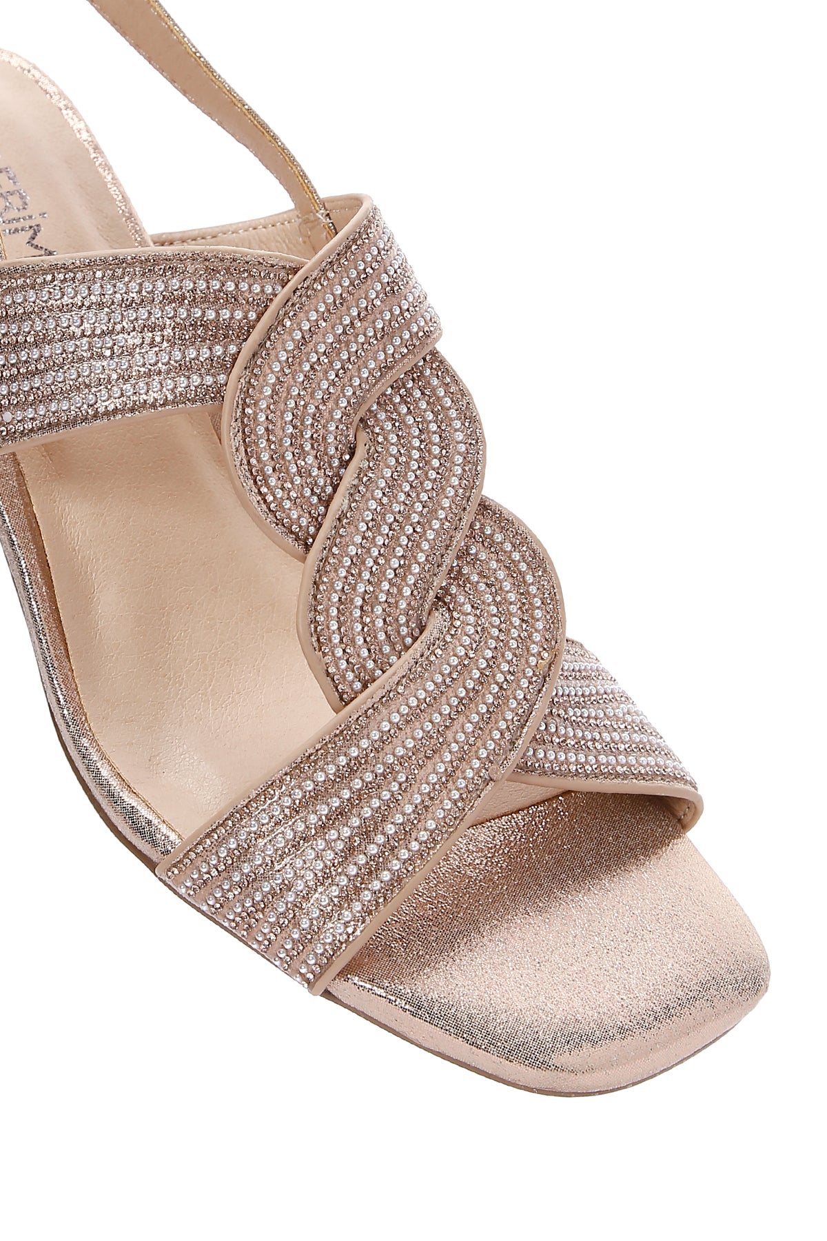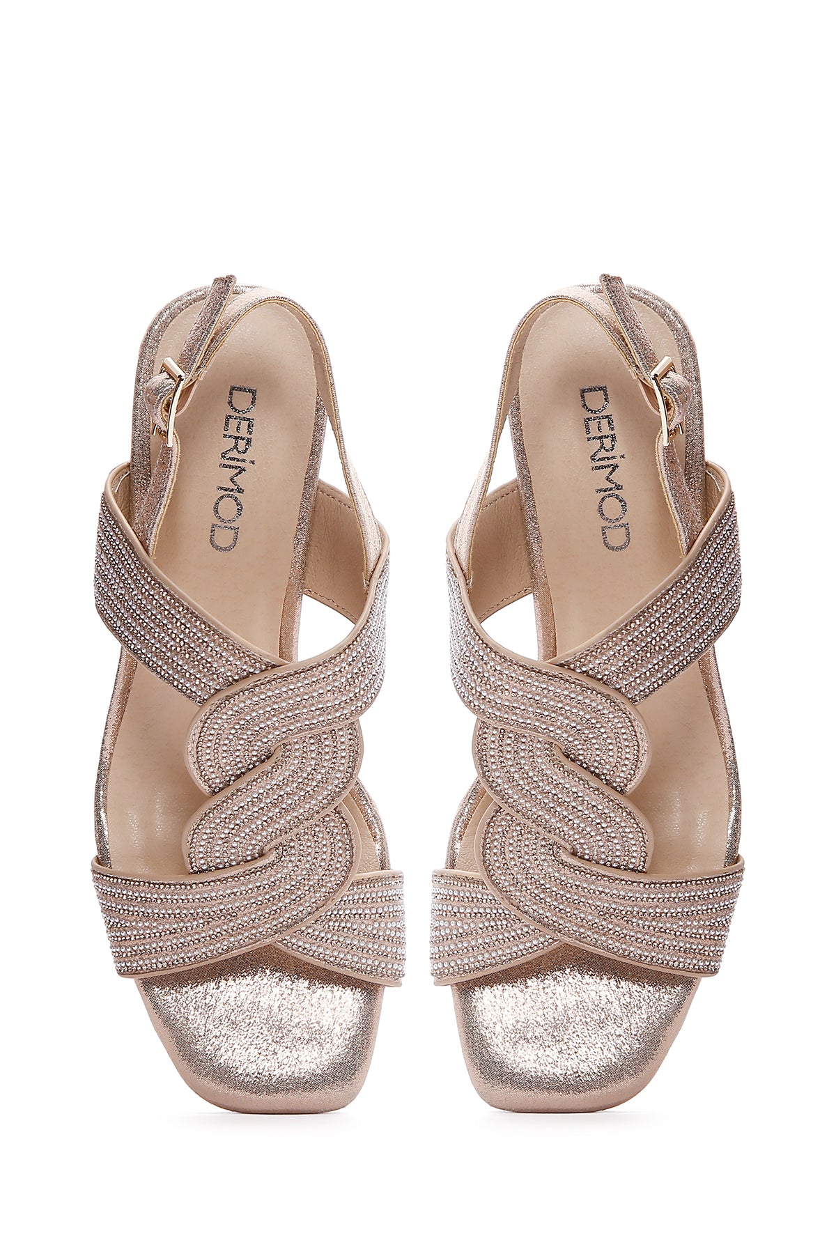Derimod’un Zarif ve Şıklığı bir arada sunan Kadın Pembe Altın Kalın Topuklu Taşlı Sandalet ile tarzınızı konuşturun. Ürünün kodu: 23SFD4445TS ZD