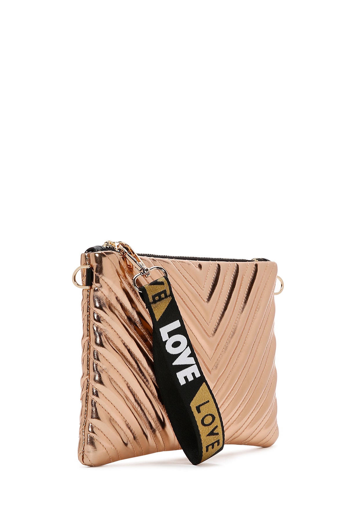 Derimod’un Zarif ve Şıklığı bir arada sunan Kadın Pembe Altın Metalik Portföy Çanta ürünü ile tarzınızı konuşturun. Ürünün kodu: 23SBD221132 ZD