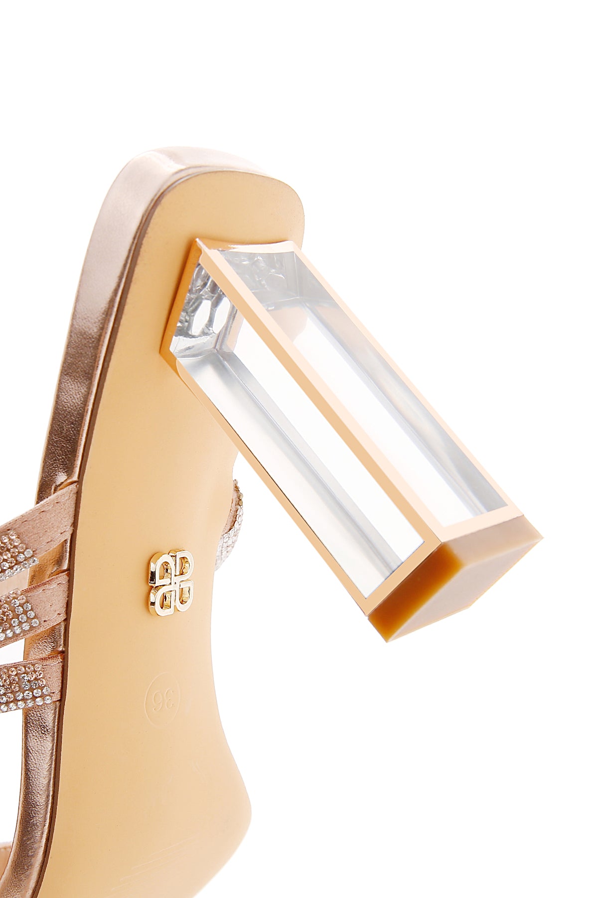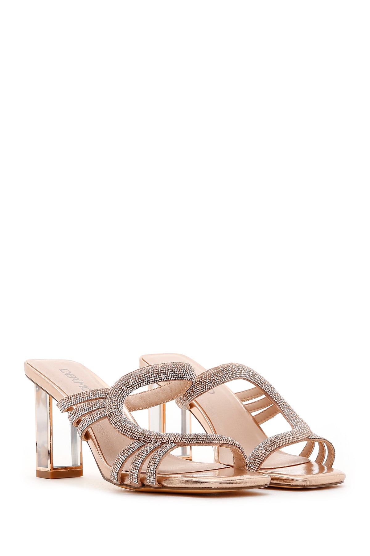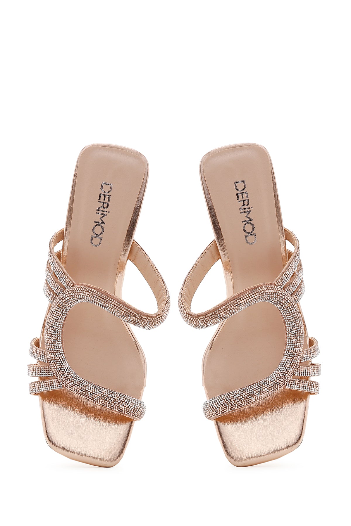 Derimod’un Zarif ve Şıklığı bir arada sunan Kadın Pembe Altın Taşlı Topuklu Terlik ile tarzınızı konuşturun. Ürünün kodu: 23SFD4430TS ZD