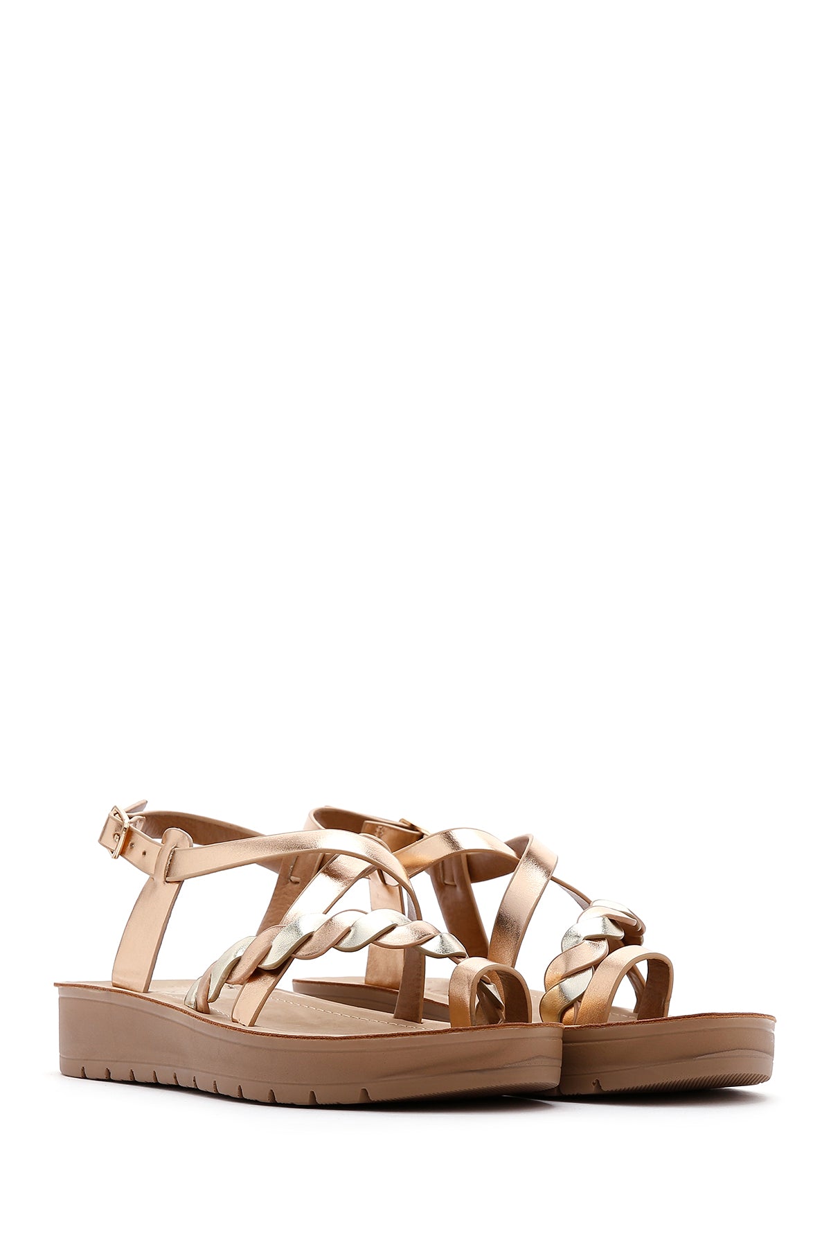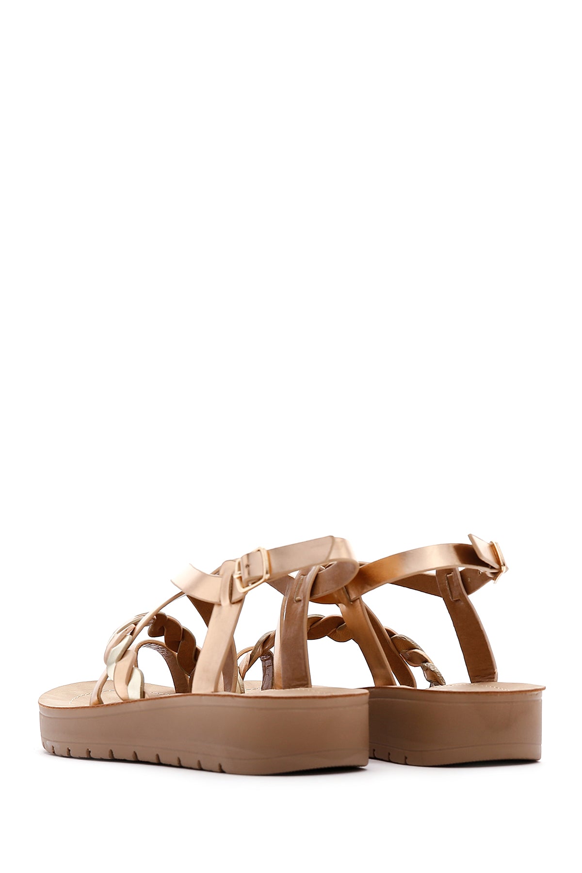 Kadın Pembe Bilekten Bantlı Metalik Sandalet