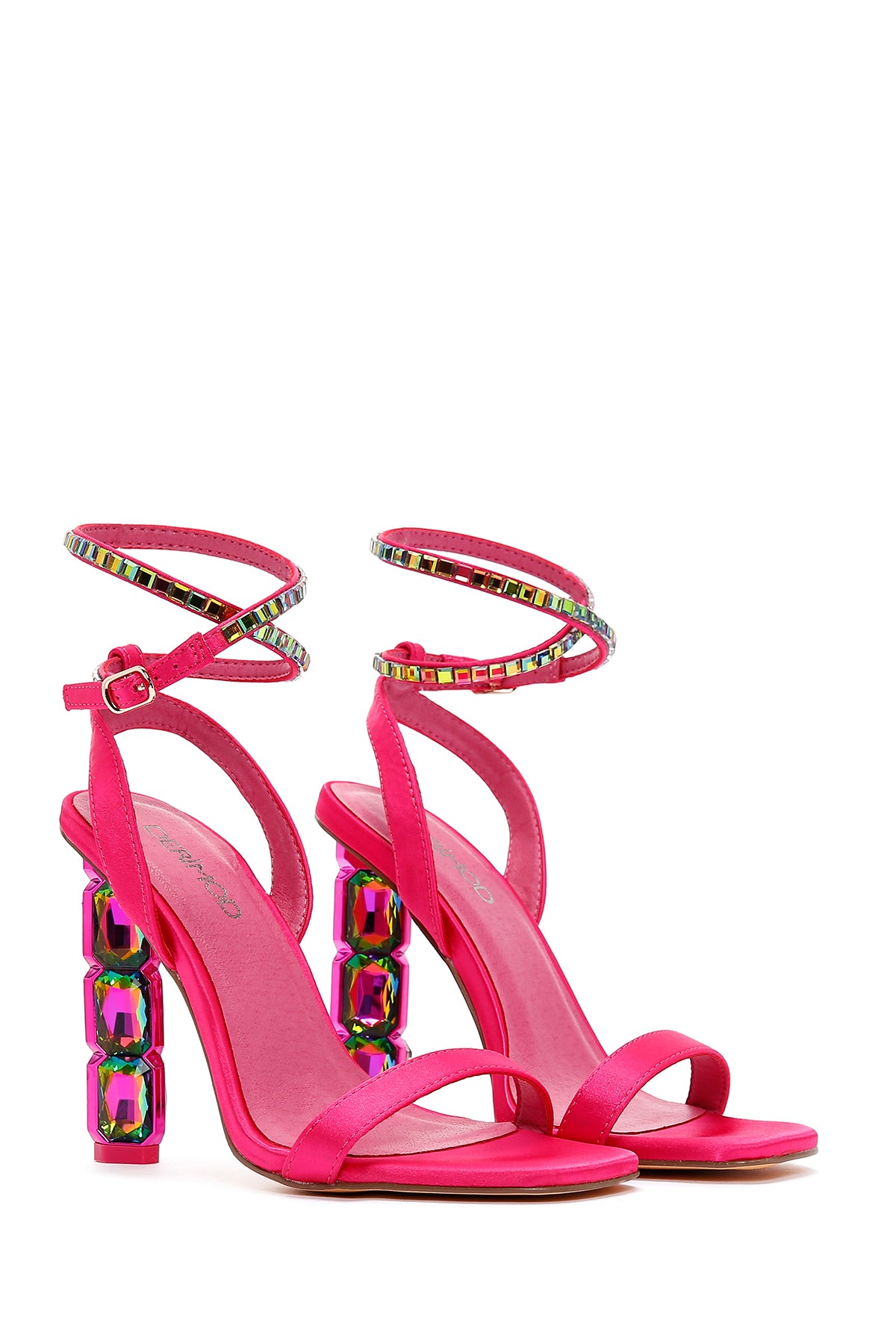 Kadın Pembe Bilekten Bantlı Yüksek Topuklu Sandalet