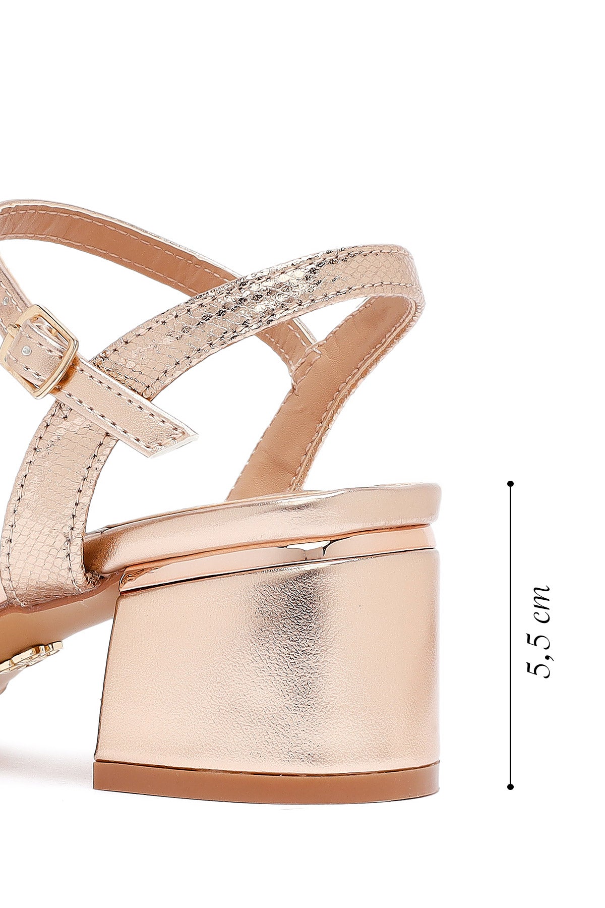 Derimod’un Zarifliği ve Şıklığı bir arada sunan Kadın Pembe Bilekten Tokalı Metalik Kalın Topuklu Sandalet ile tarzınızı konuşturun. Ürünün kodu: 25SFE466332 ZD
