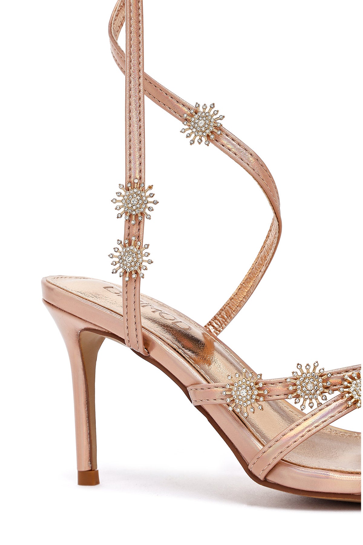 Derimod’un Zarifliği ve Şıklığı bir arada sunan Kadın Pembe Bilekten Tokalı Taşlı Metalik İnce Topuklu Sandalet ile tarzınızı konuşturun. Ürünün kodu: 25SFE482032 ZD