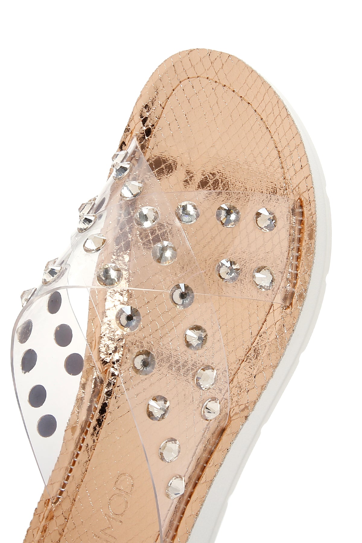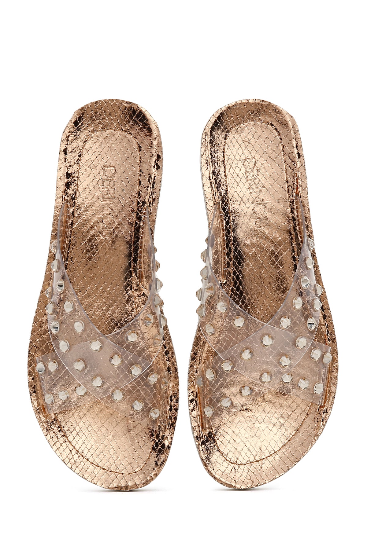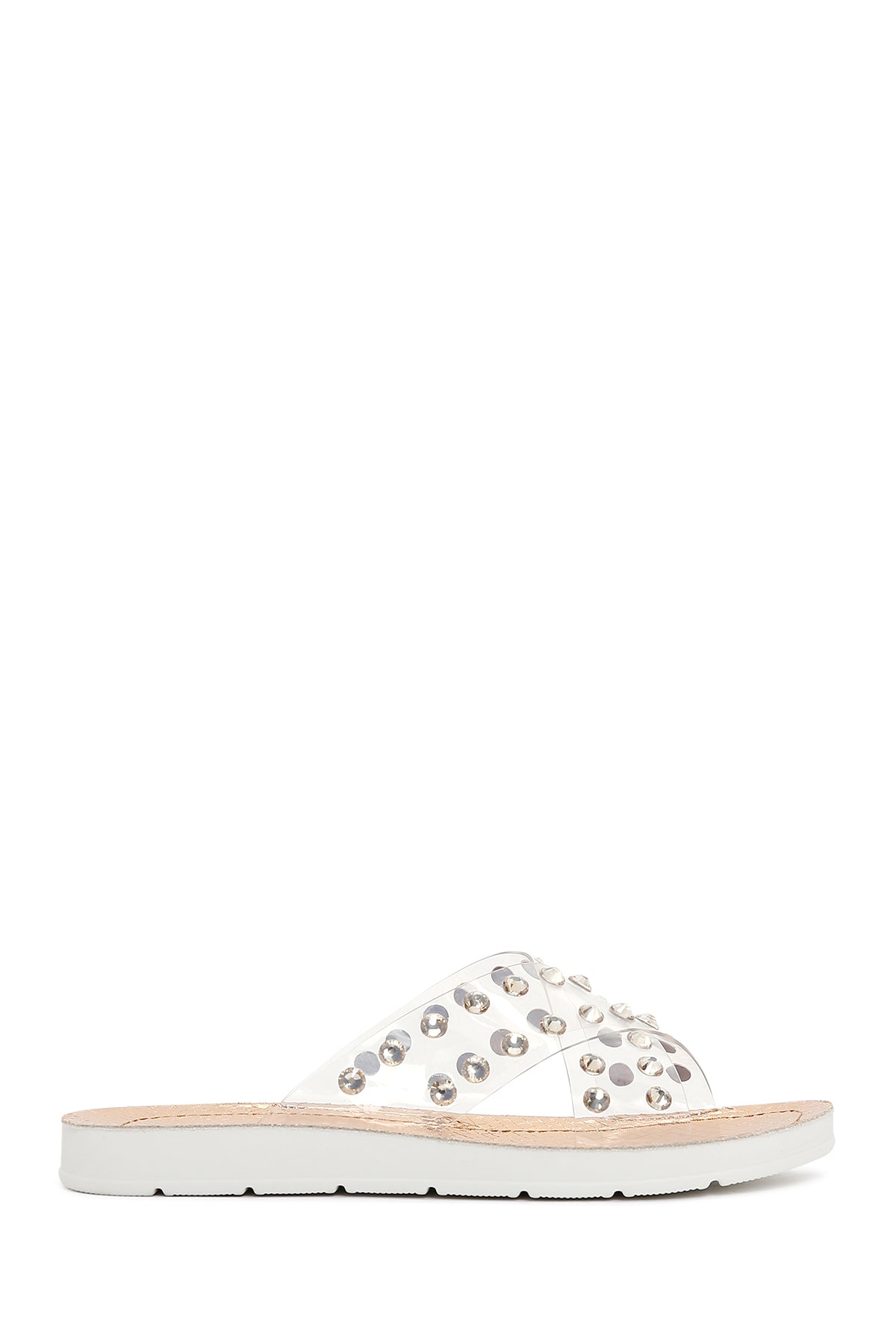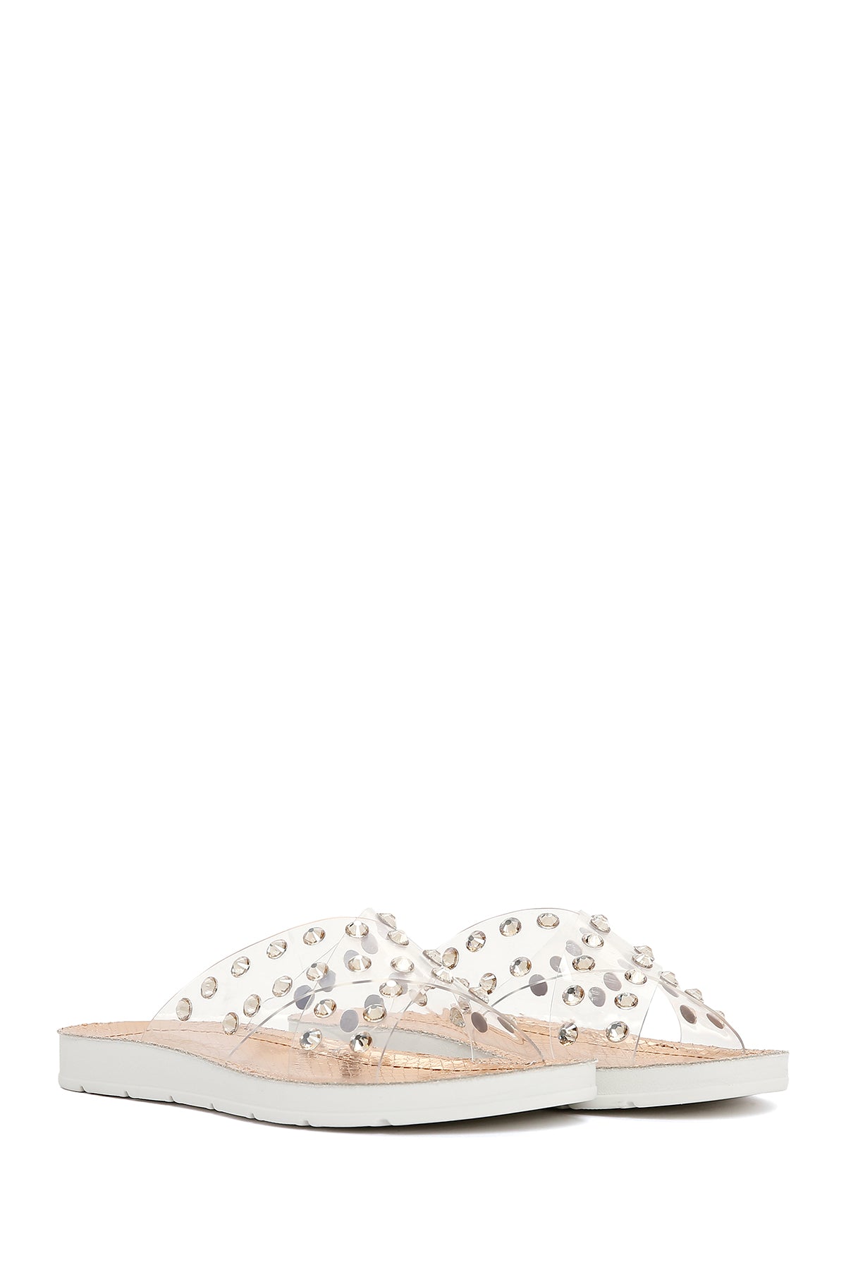 Derimod’un Zarif ve Şıklığı bir arada sunan Kadın Pembe Şeffaf Taşlı Düz Terlik ile tarzınızı konuşturun. Ürünün kodu: 23SFE4660PV ZD