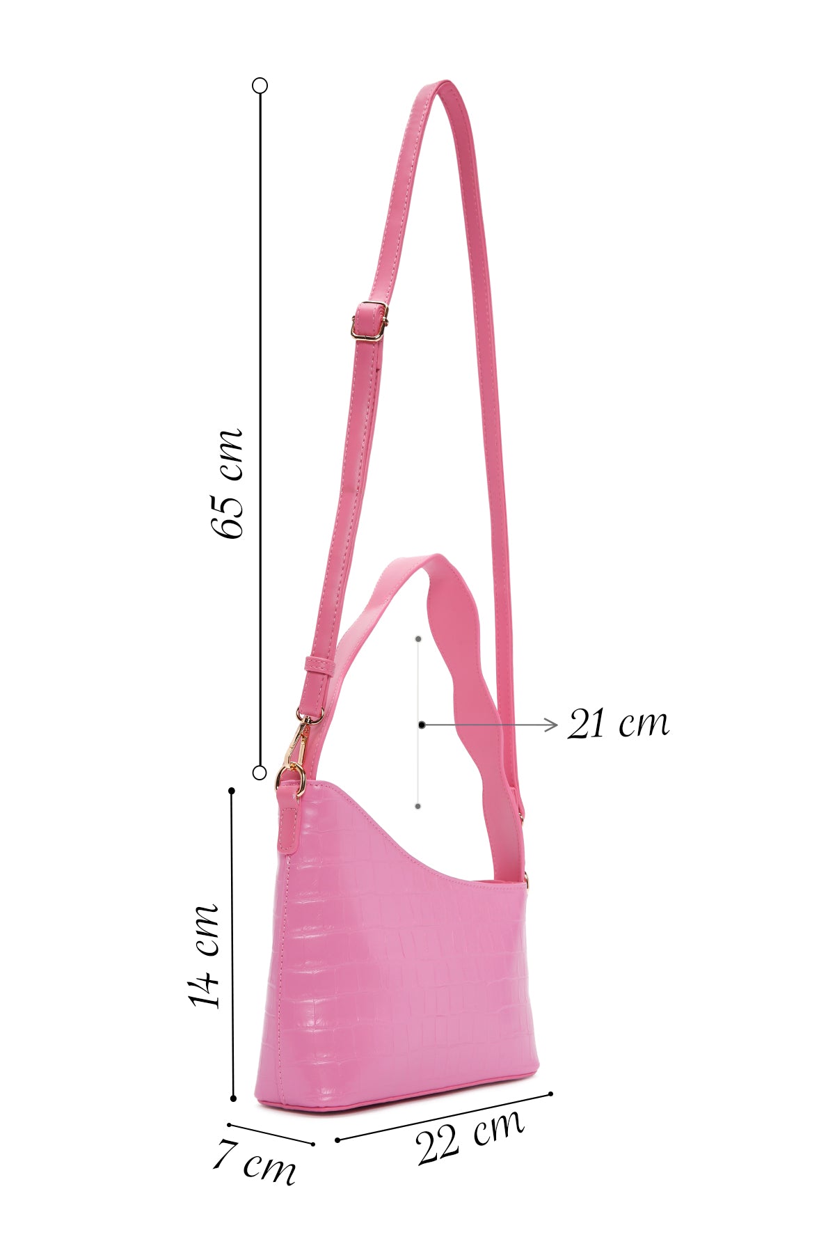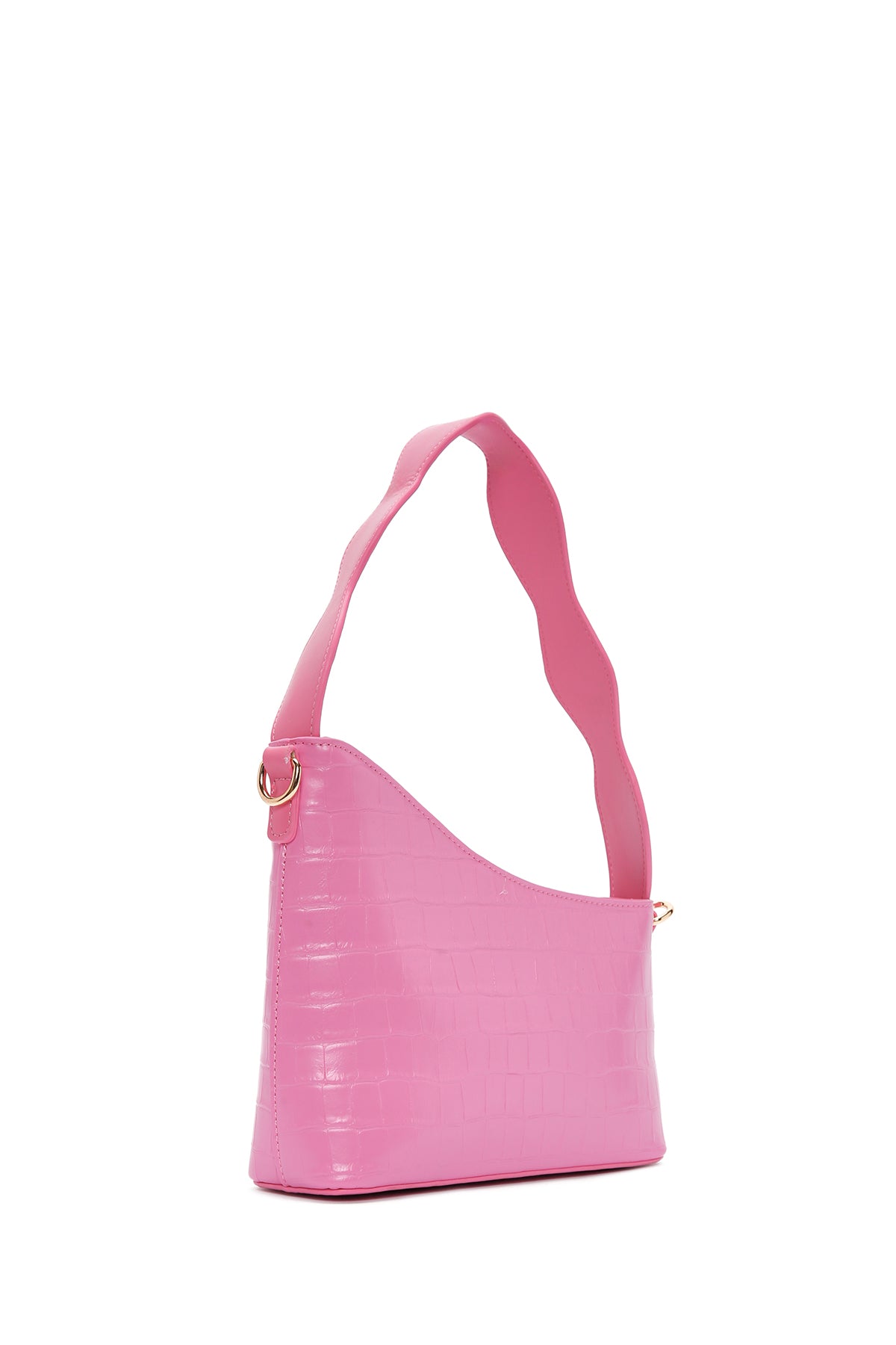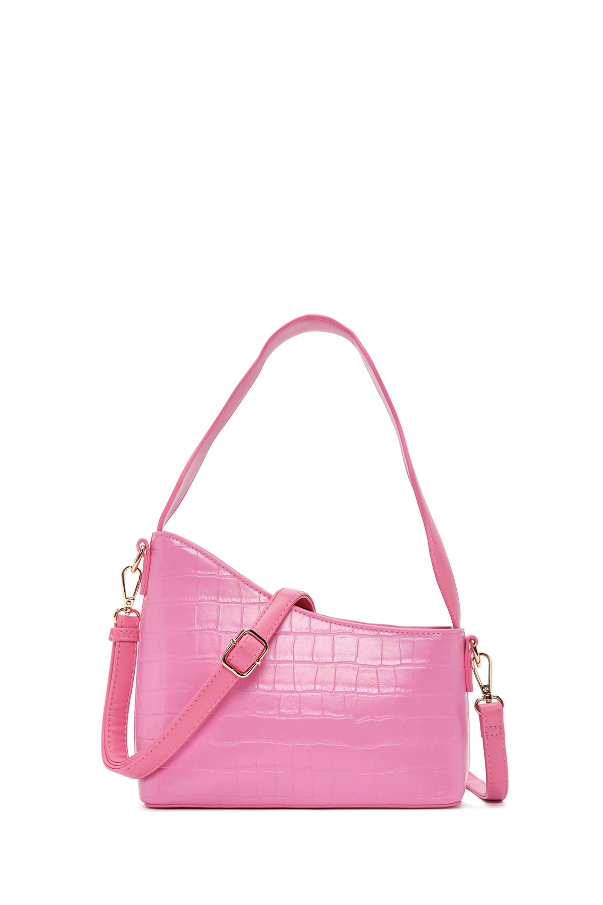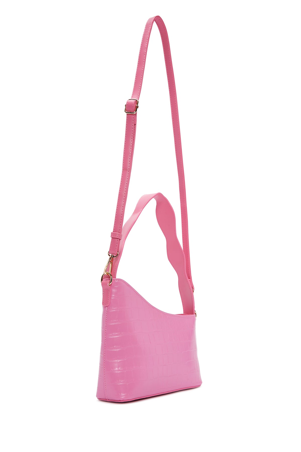 Kadın Pembe Uzun Askılı Kroko Desenli Omuz Çantası