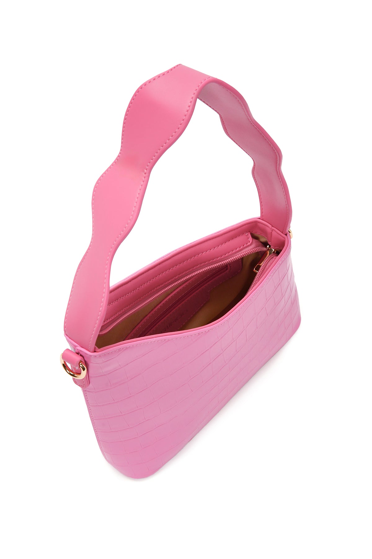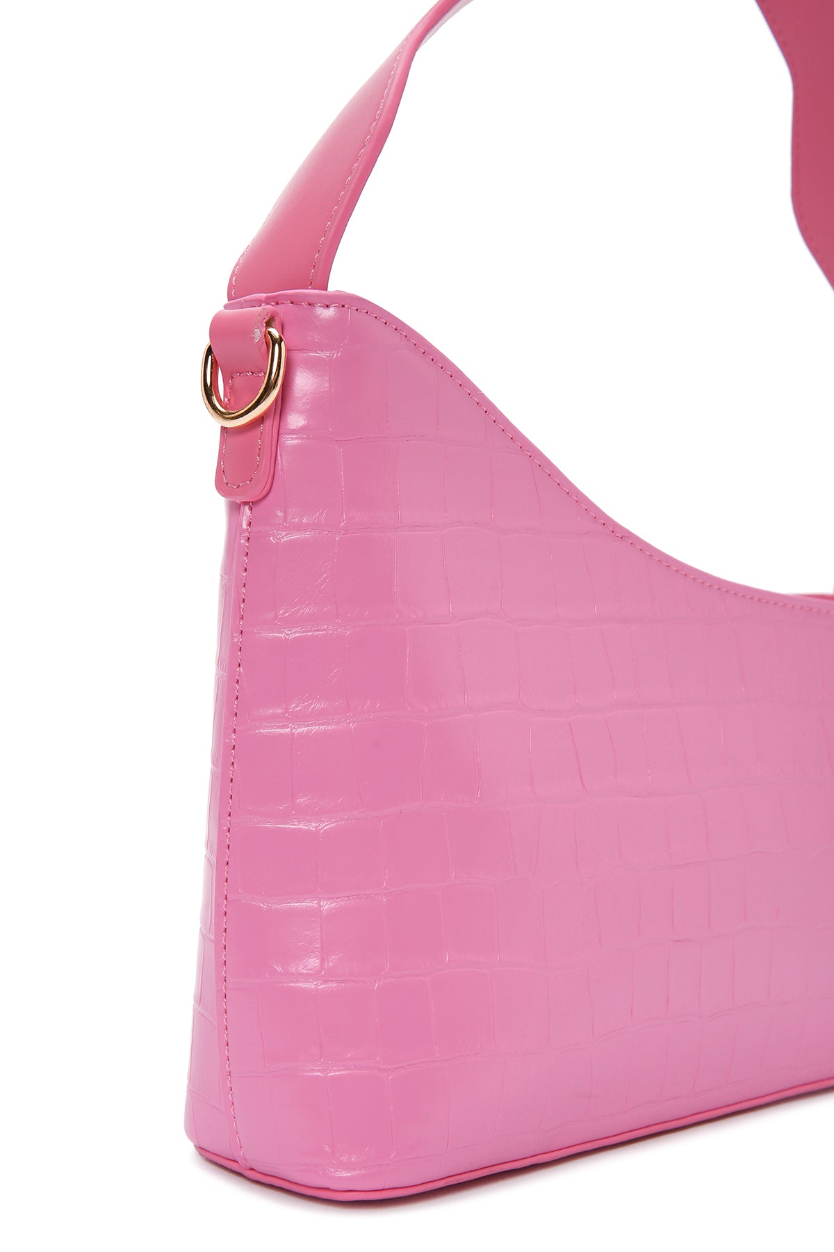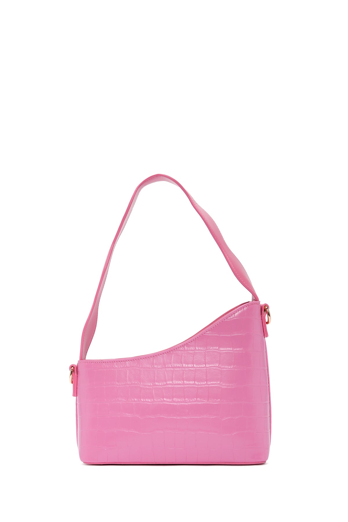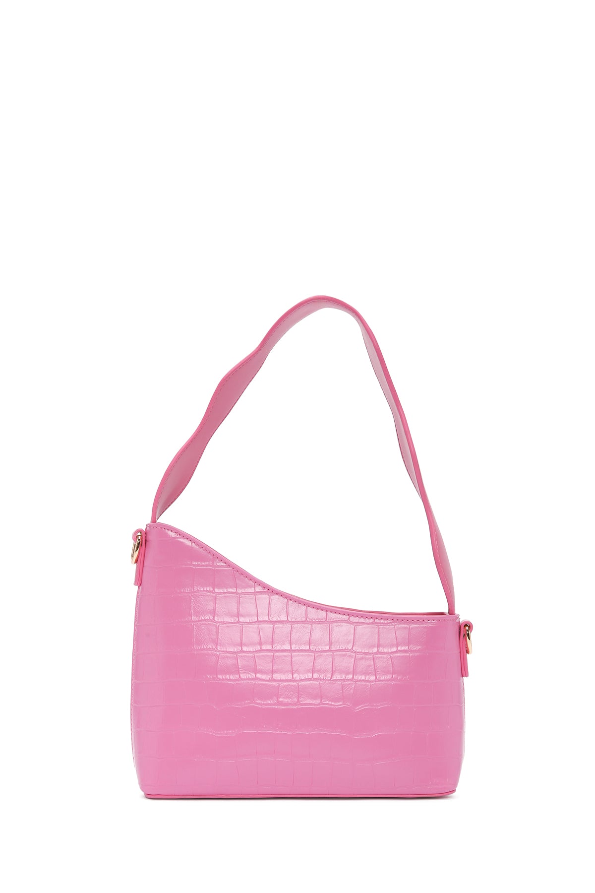Kadın Pembe Uzun Askılı Kroko Desenli Omuz Çantası