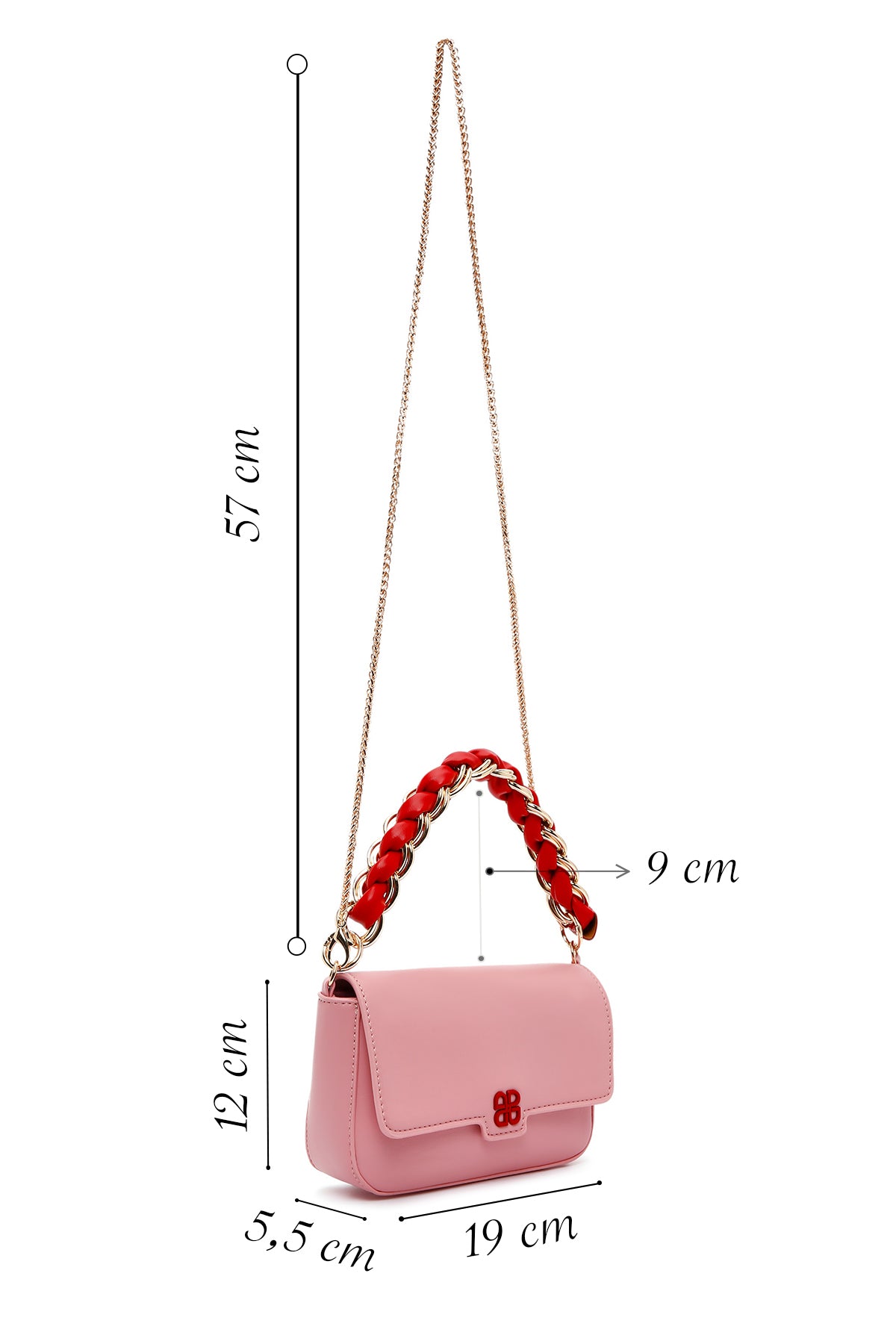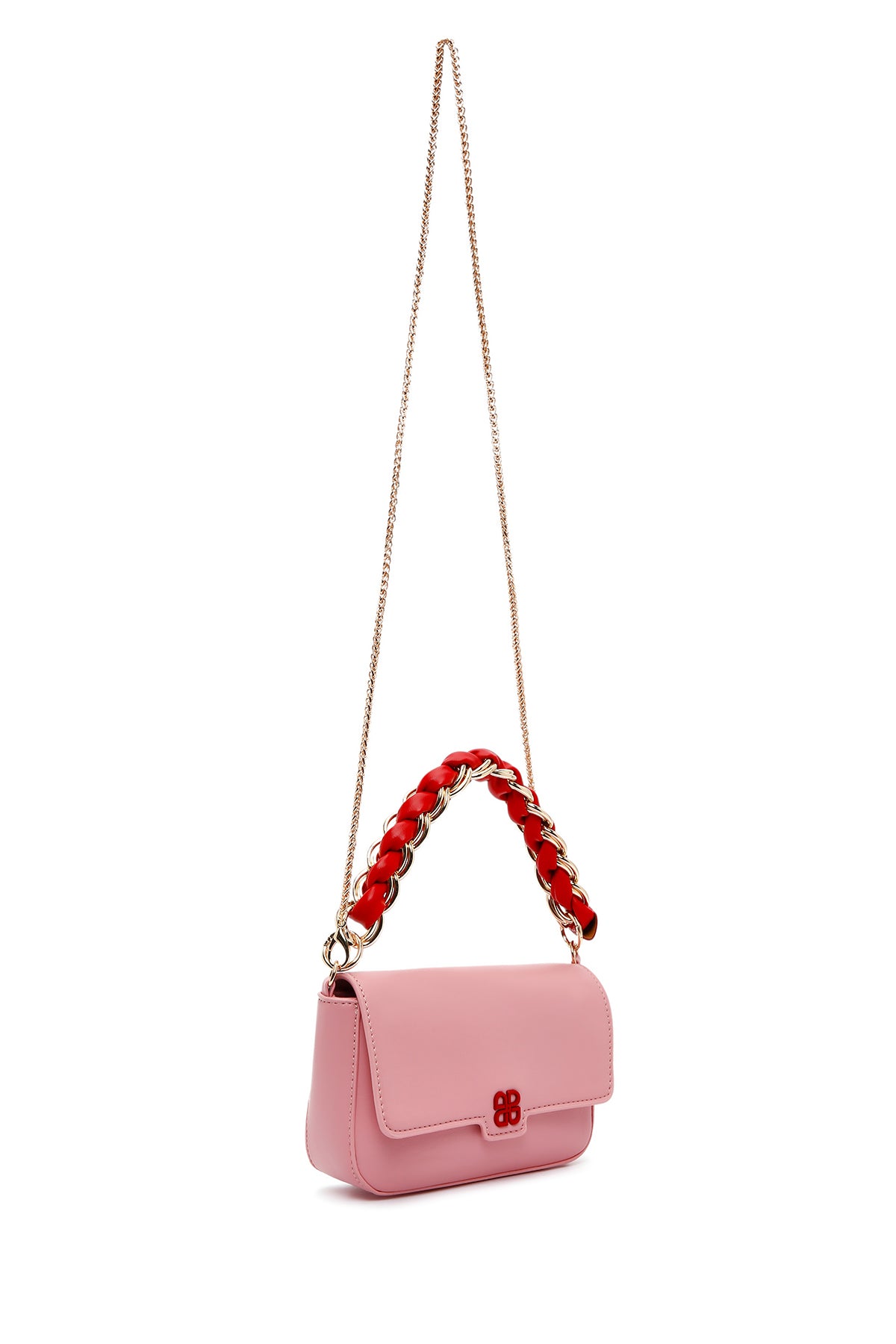 Kadın Pembe Uzun Zincir Askılı Mini Kol Çantası