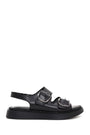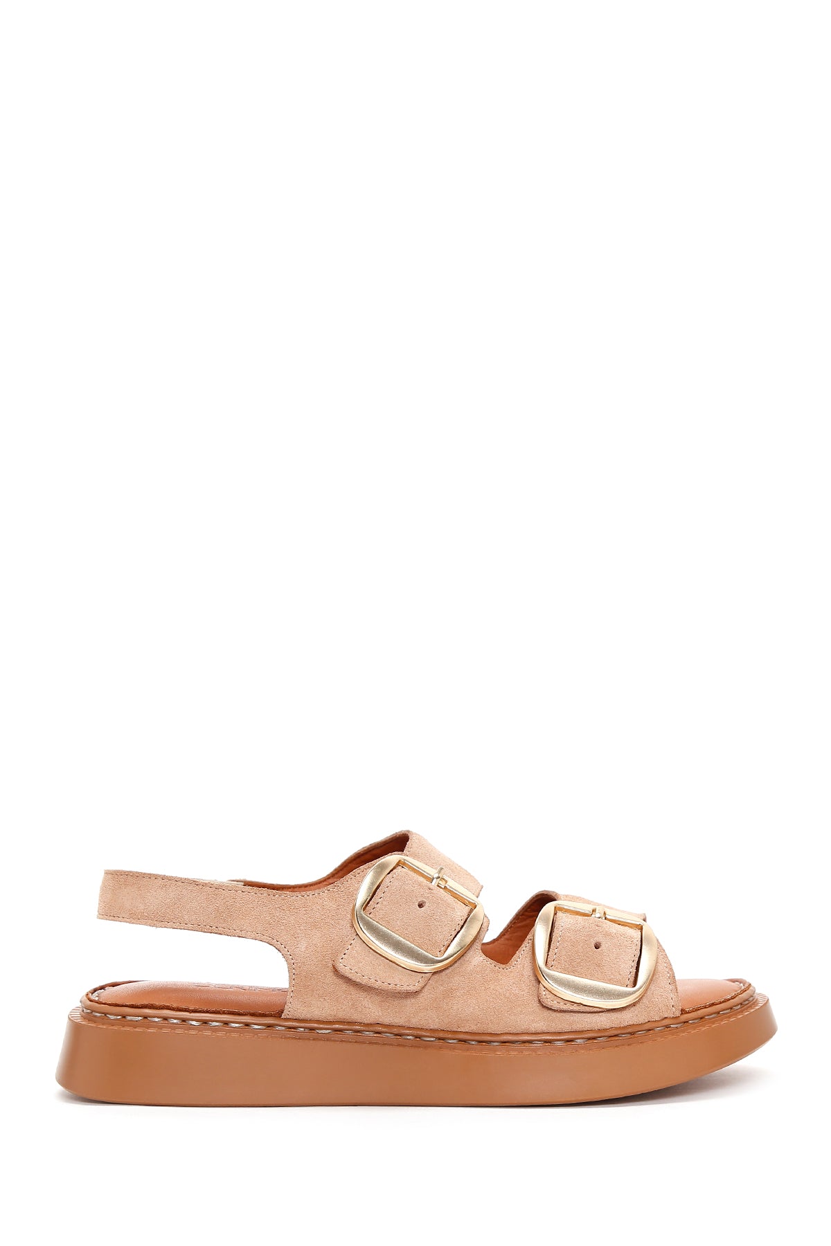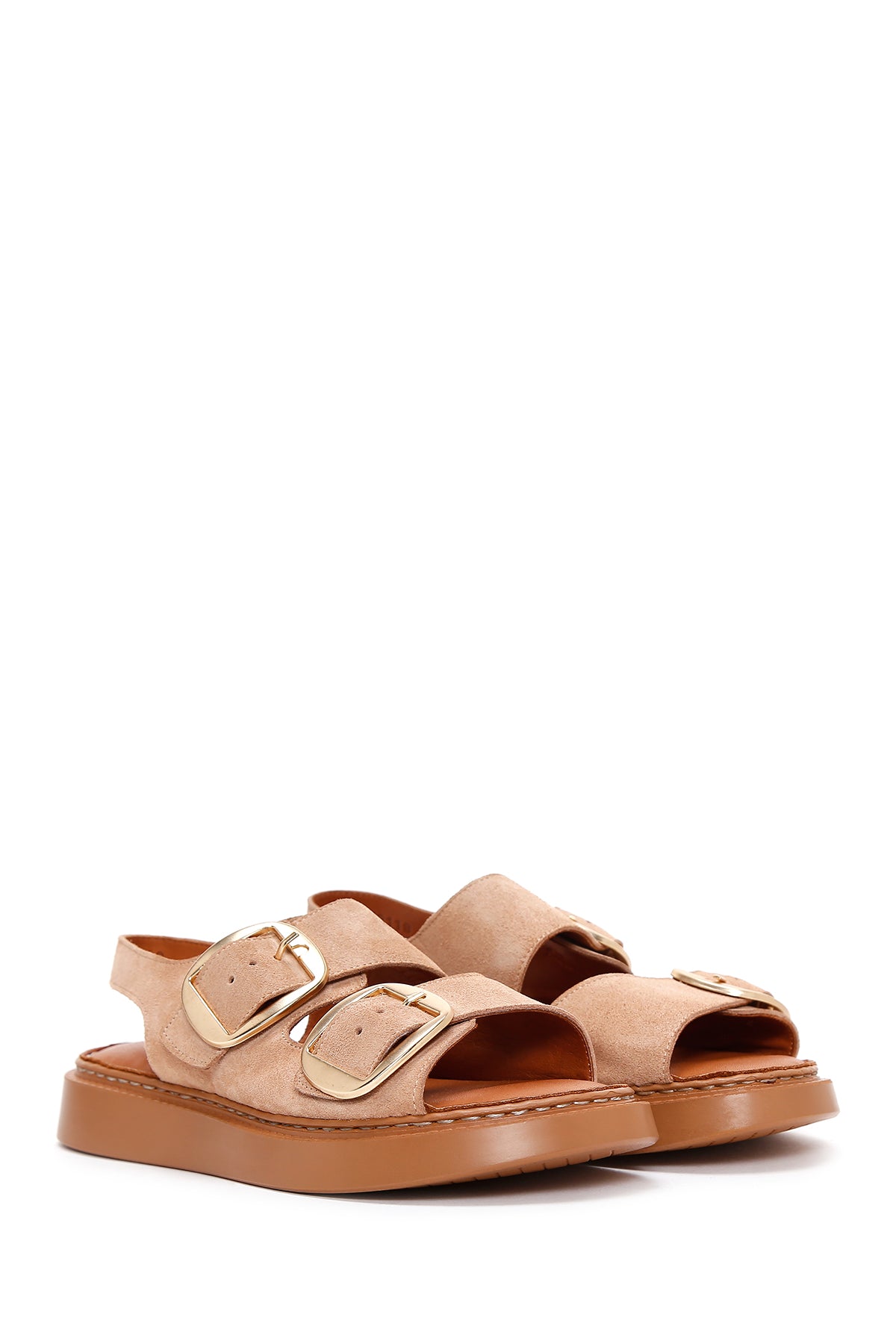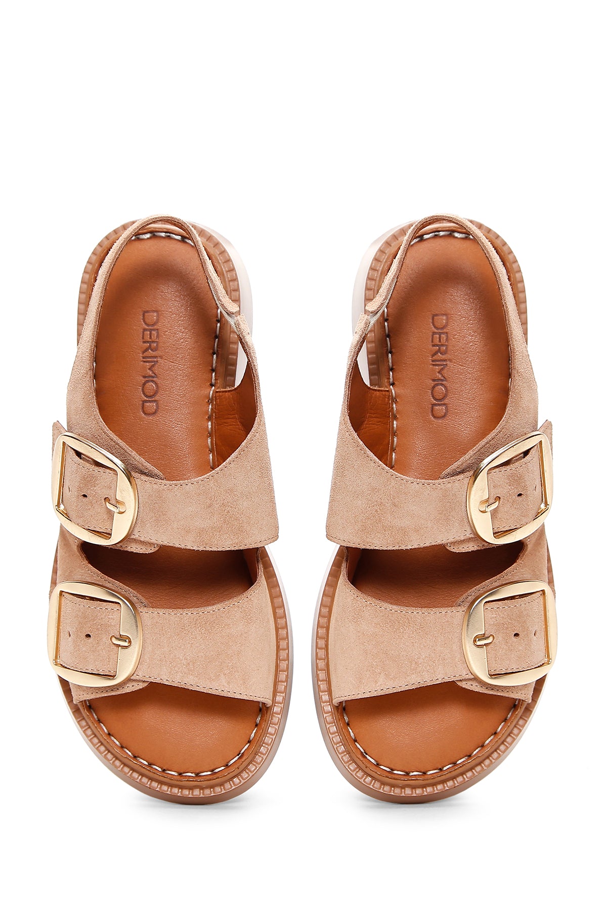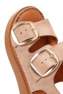 Kadın Pudra Bilekten Bantlı Çift Tokalı Deri Comfort Sandalet