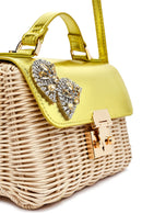 Kadın Sarı Aksesuarlı Uzun Askılı Hasır Çapraz Çanta