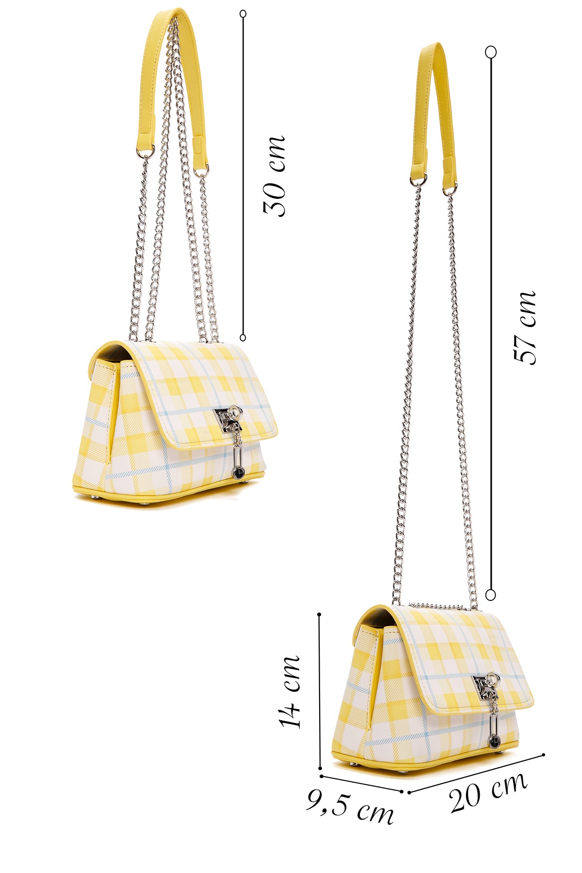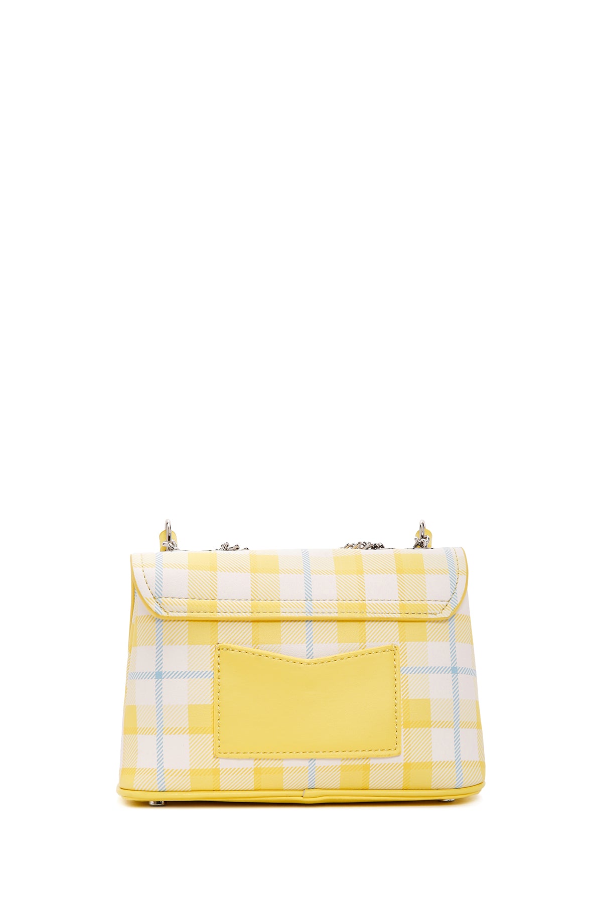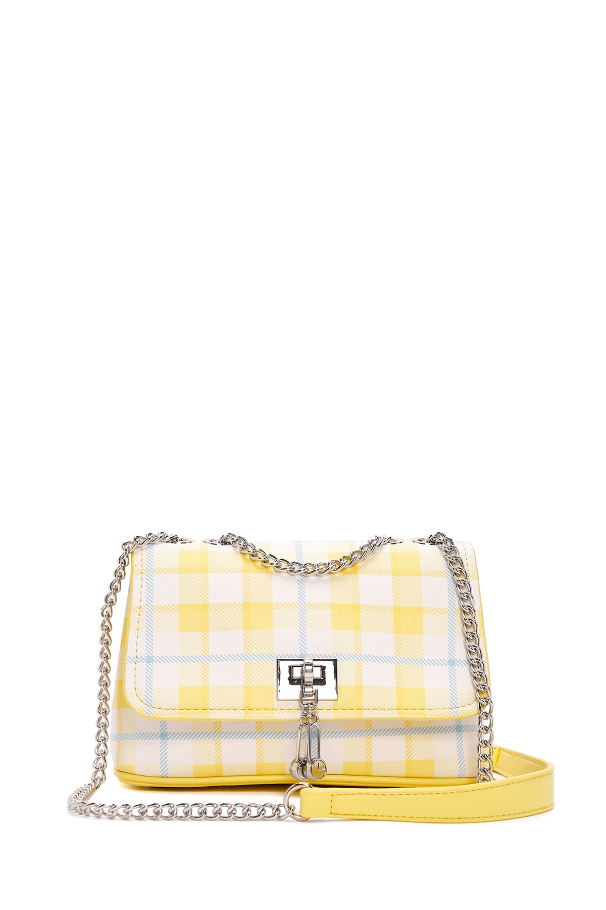 Kadın Sarı Baskılı Uzun Askılı Çapraz Çanta