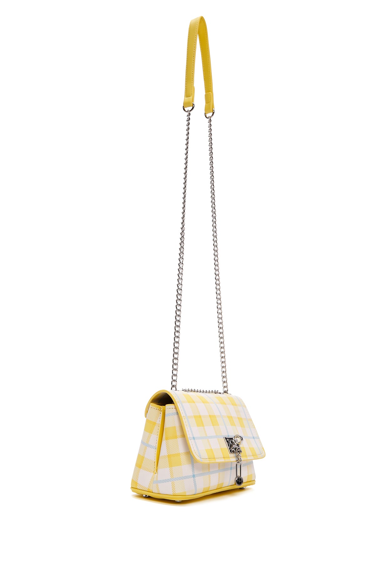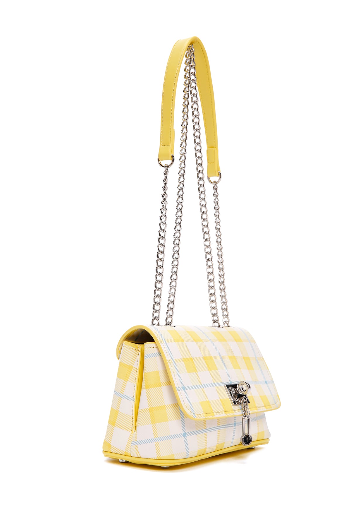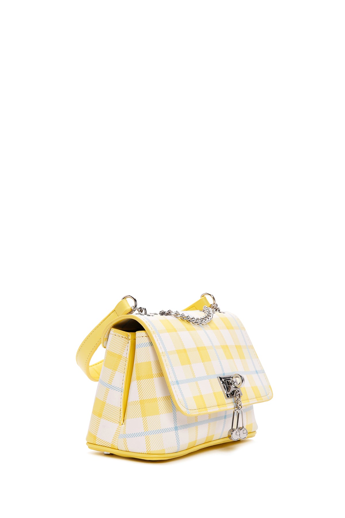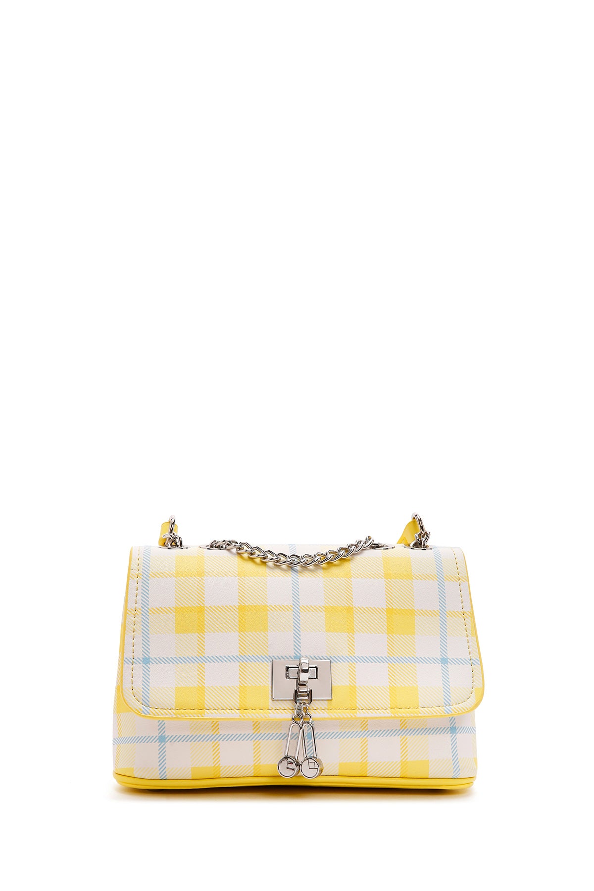 Kadın Sarı Baskılı Uzun Askılı Çapraz Çanta