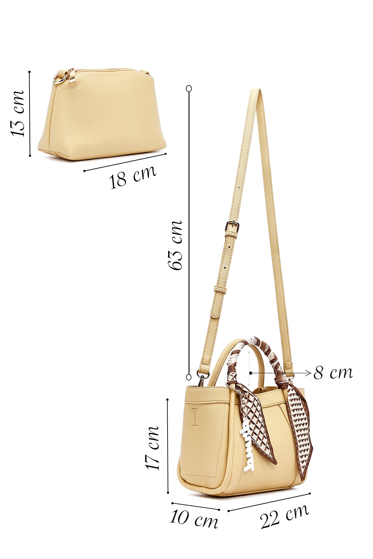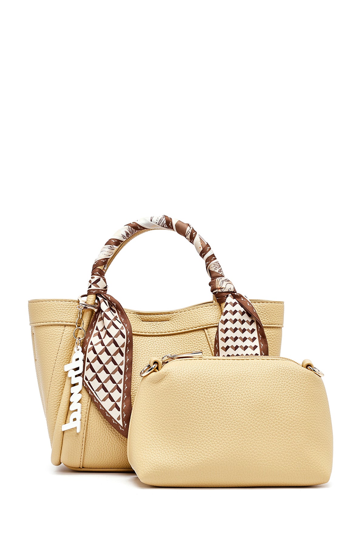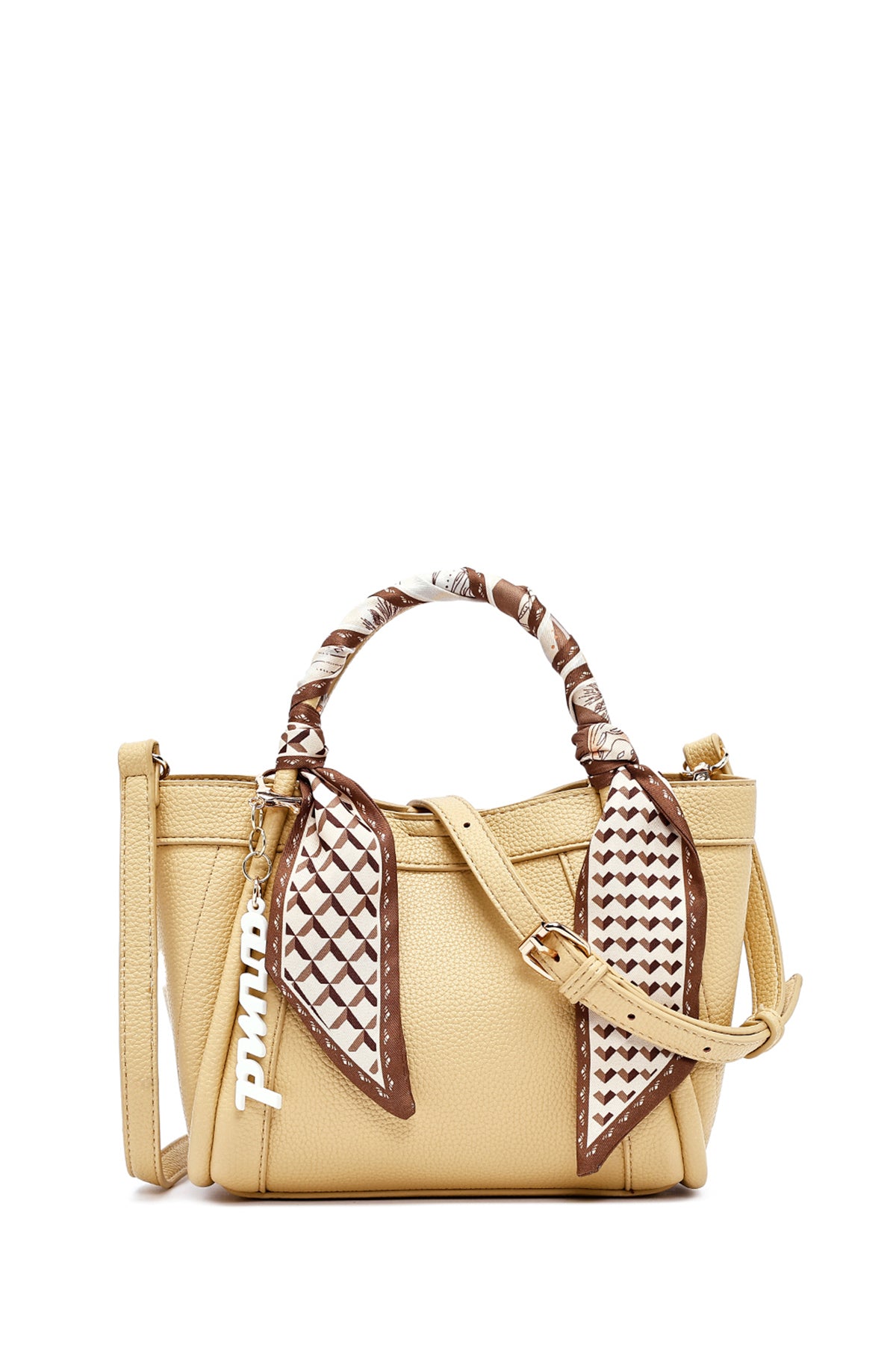 Kadın Sarı Uzun Askılı Aksesuarlı Kol Çantası