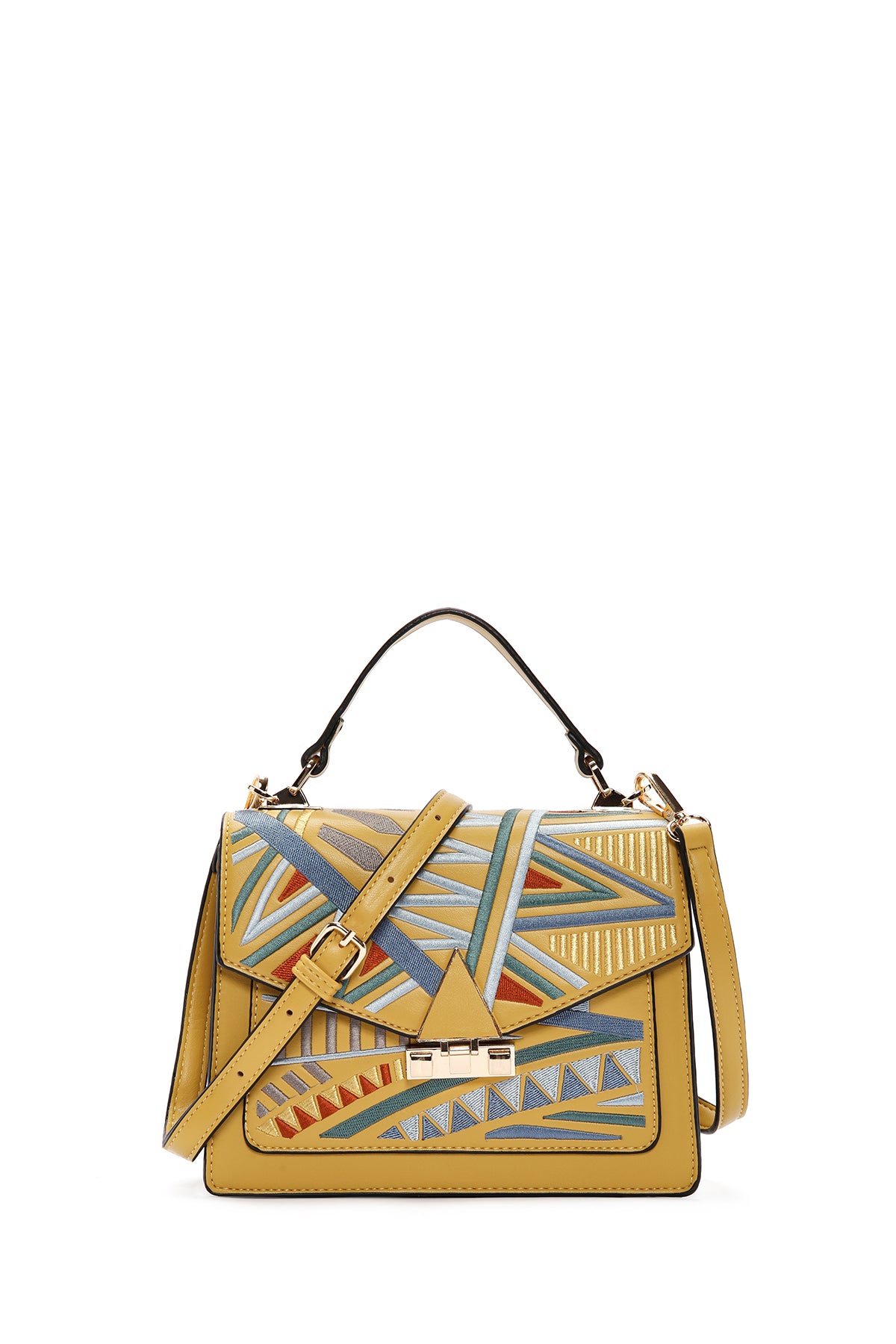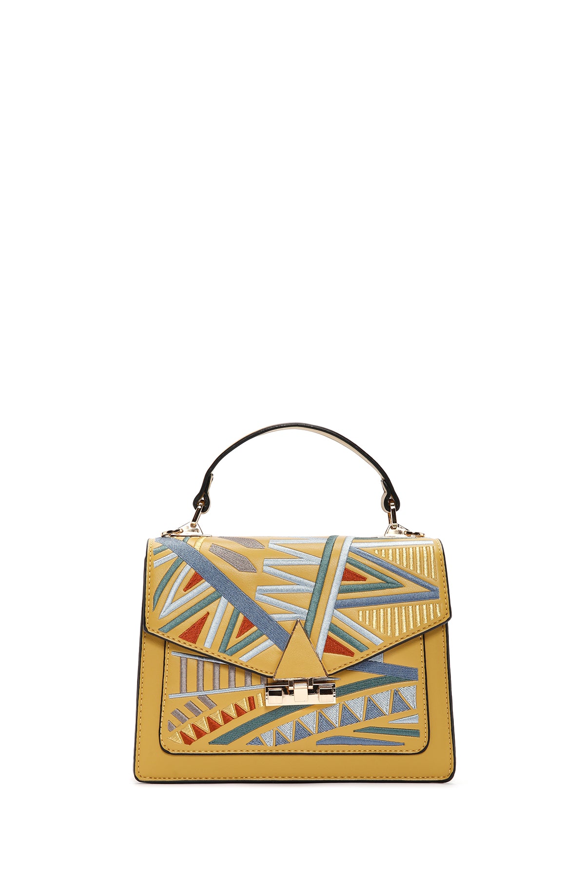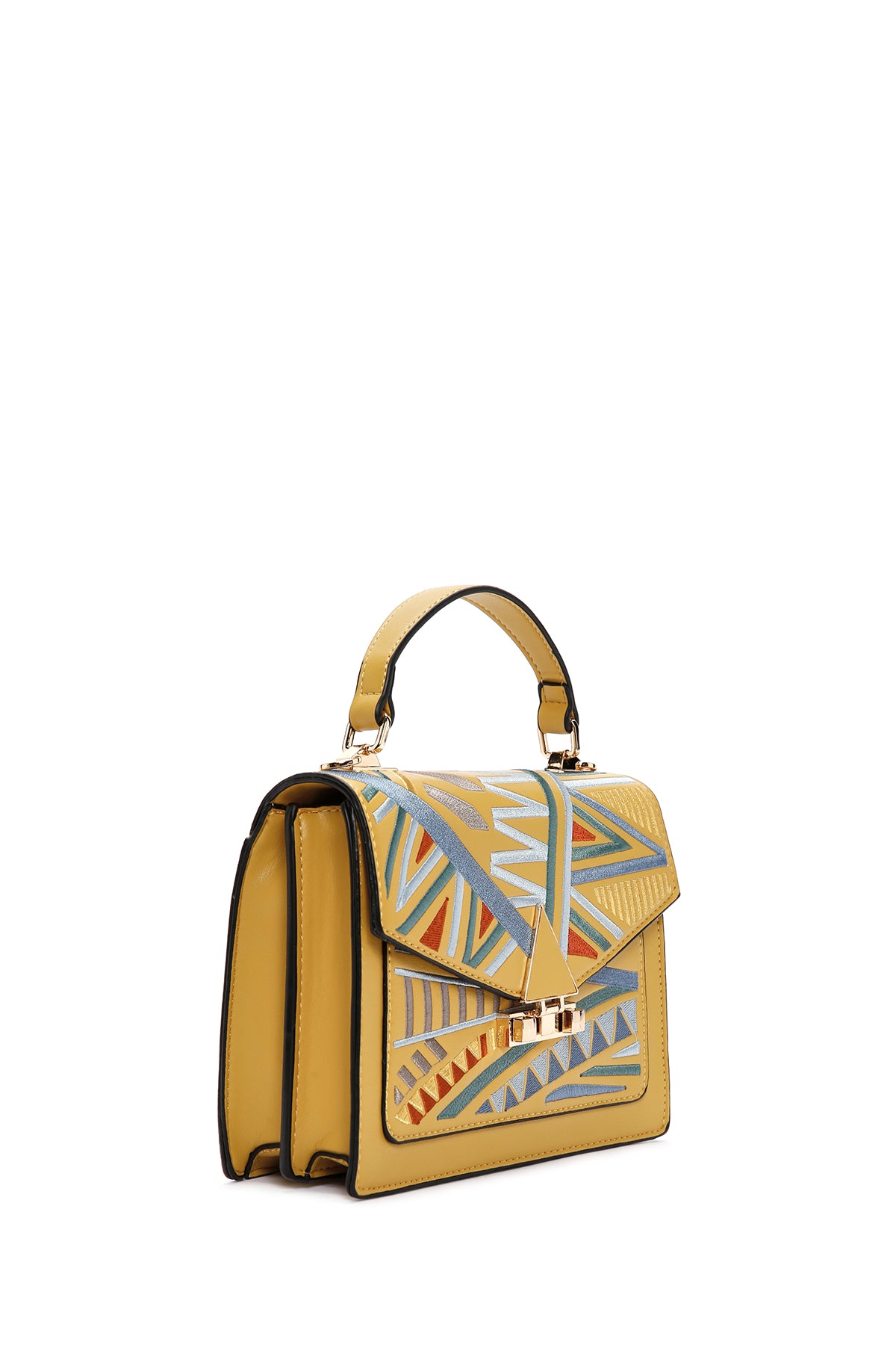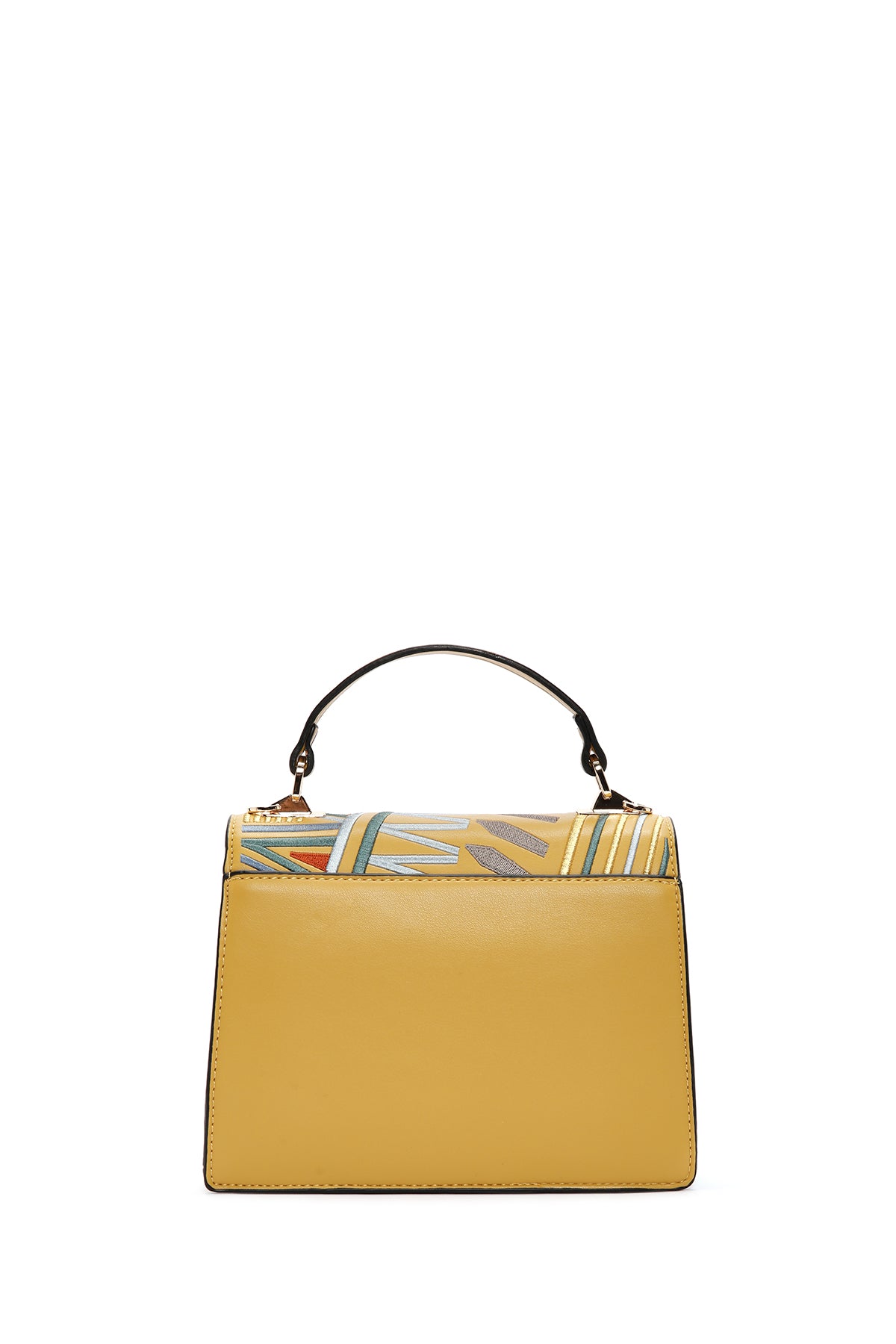 Kadın Sarı Uzun askılı Baskılı El Çantası
