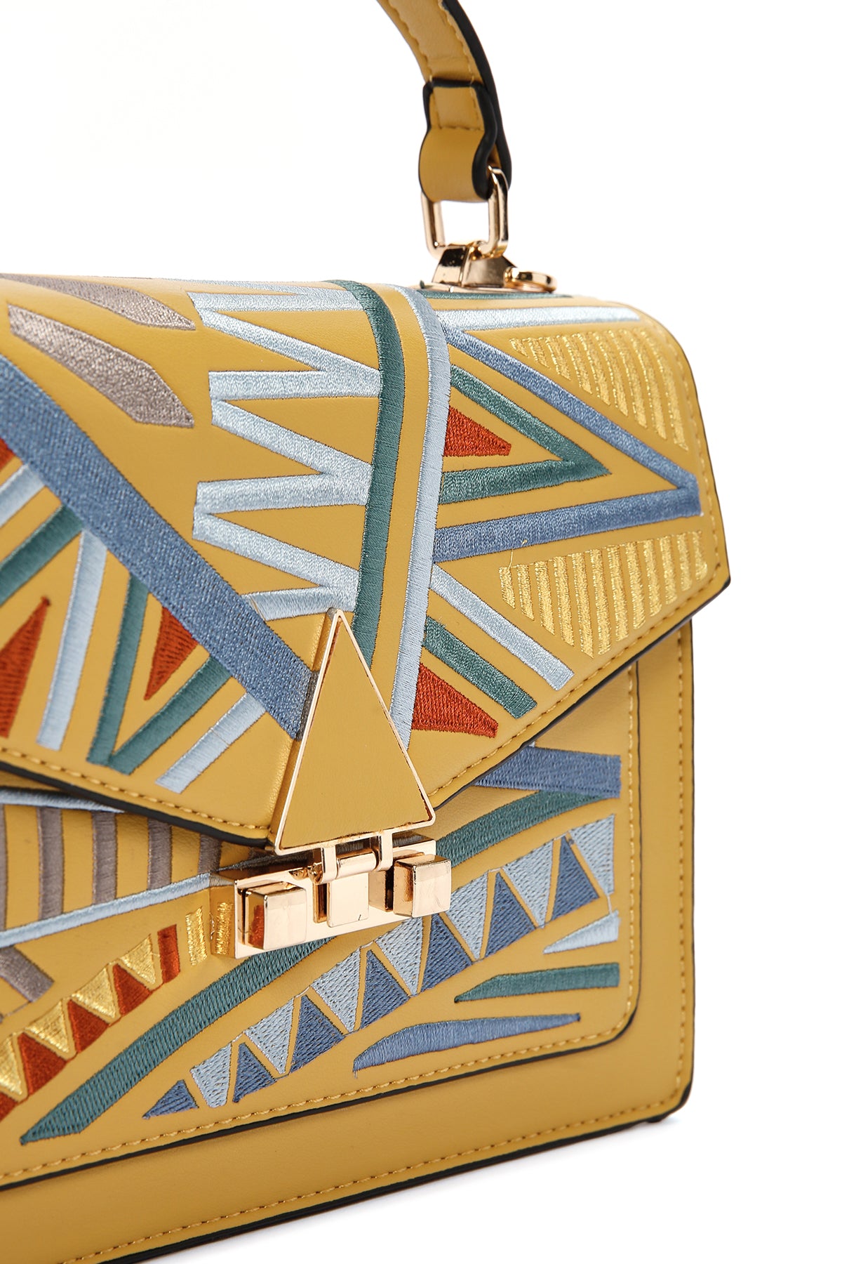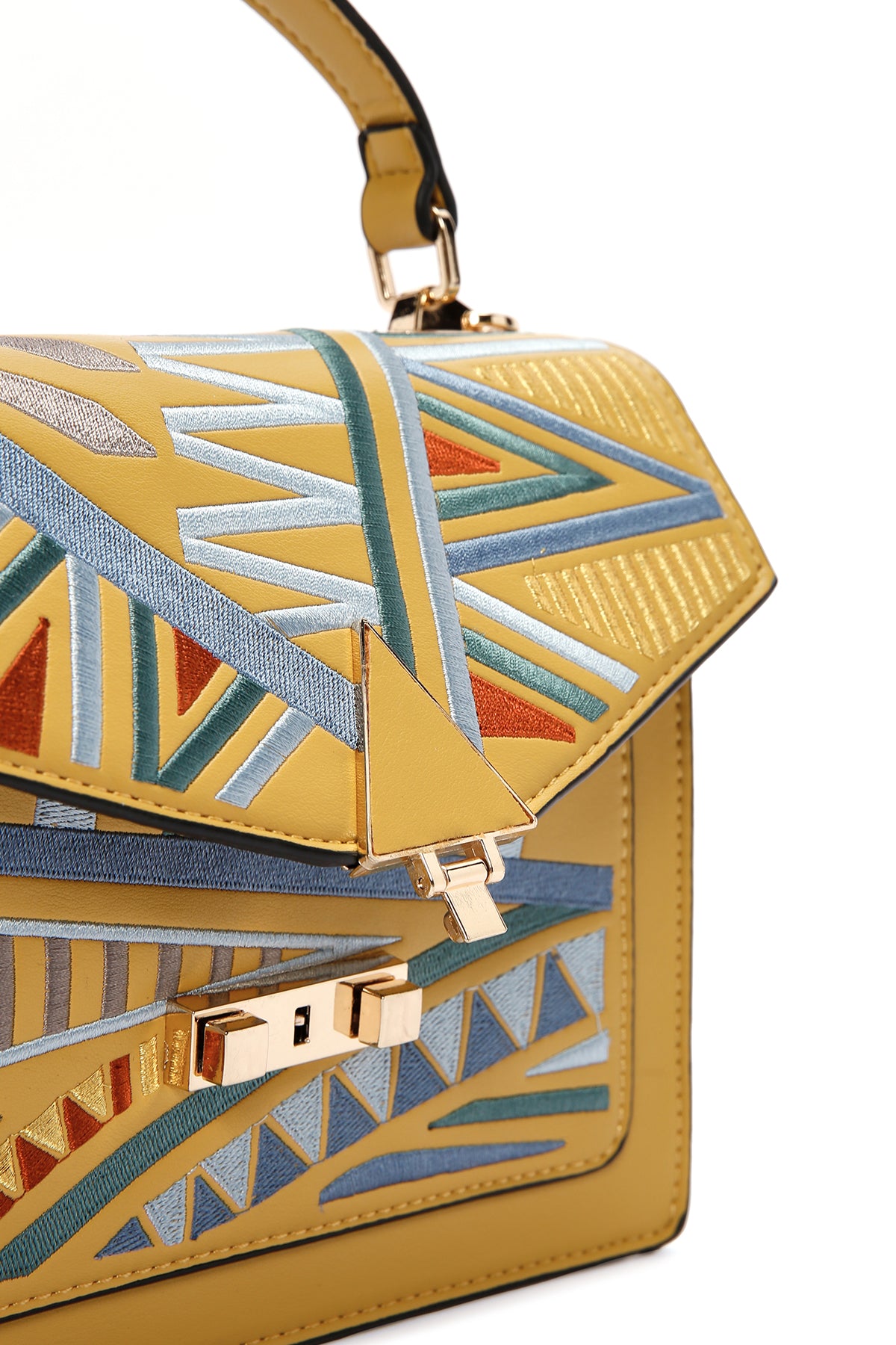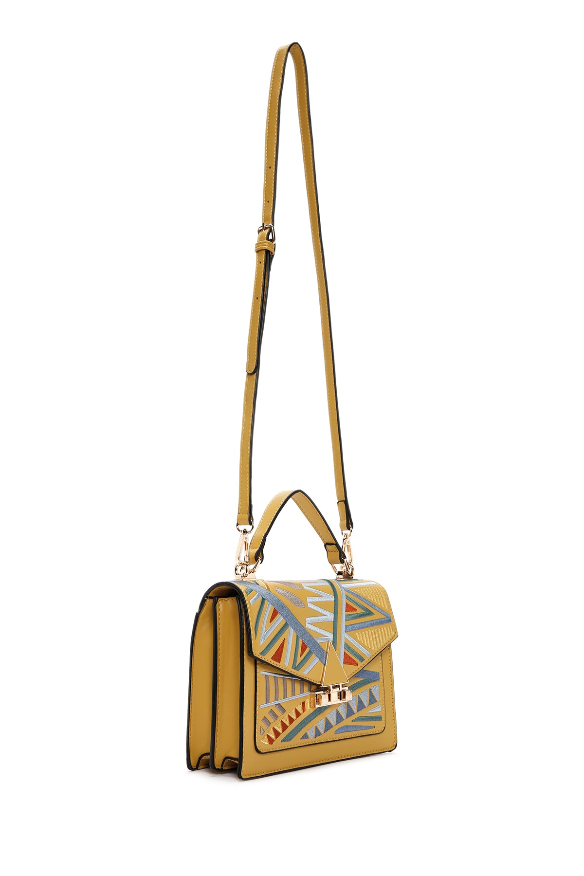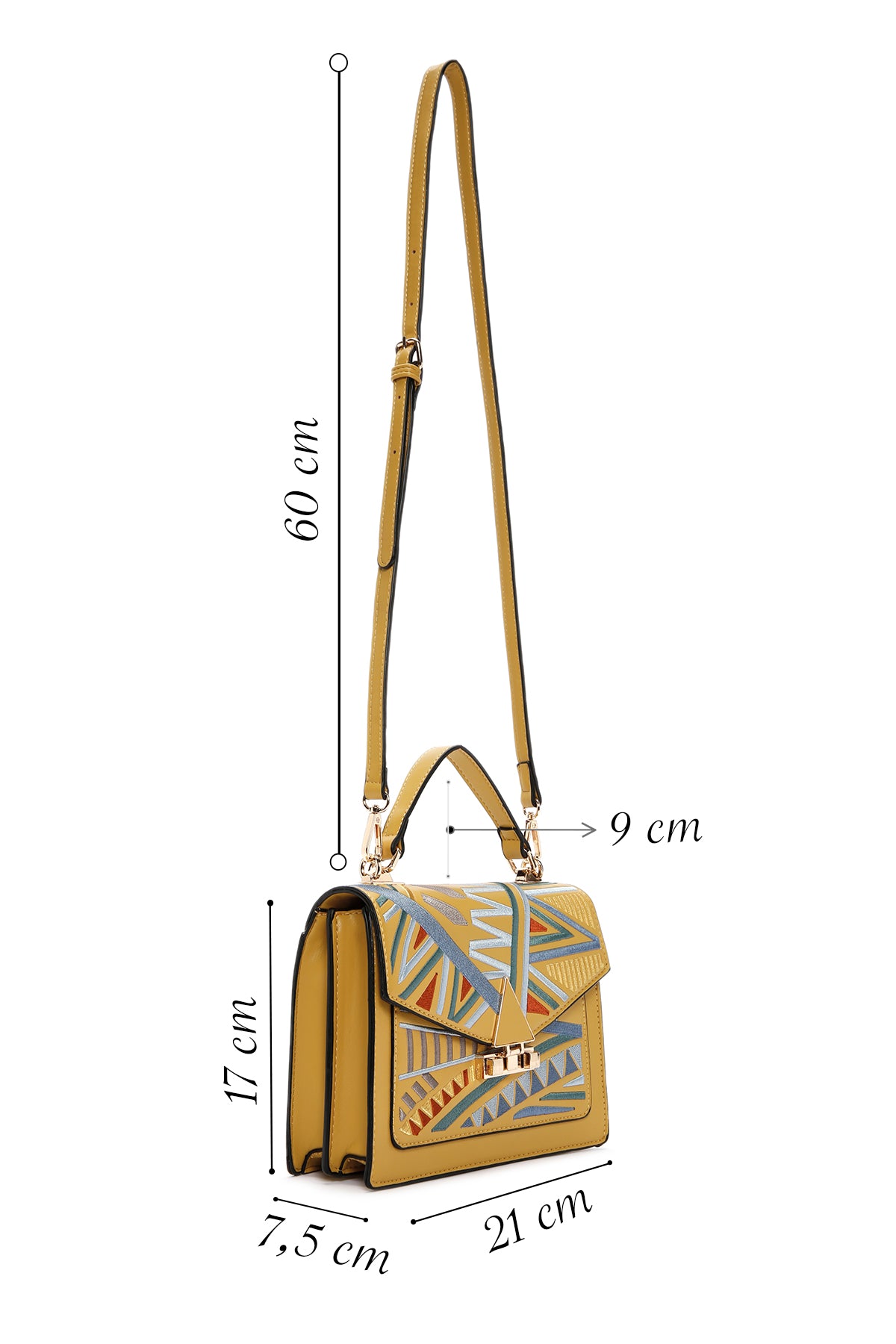 Kadın Sarı Uzun askılı Baskılı El Çantası
