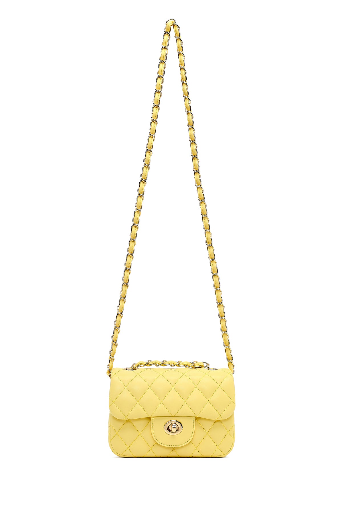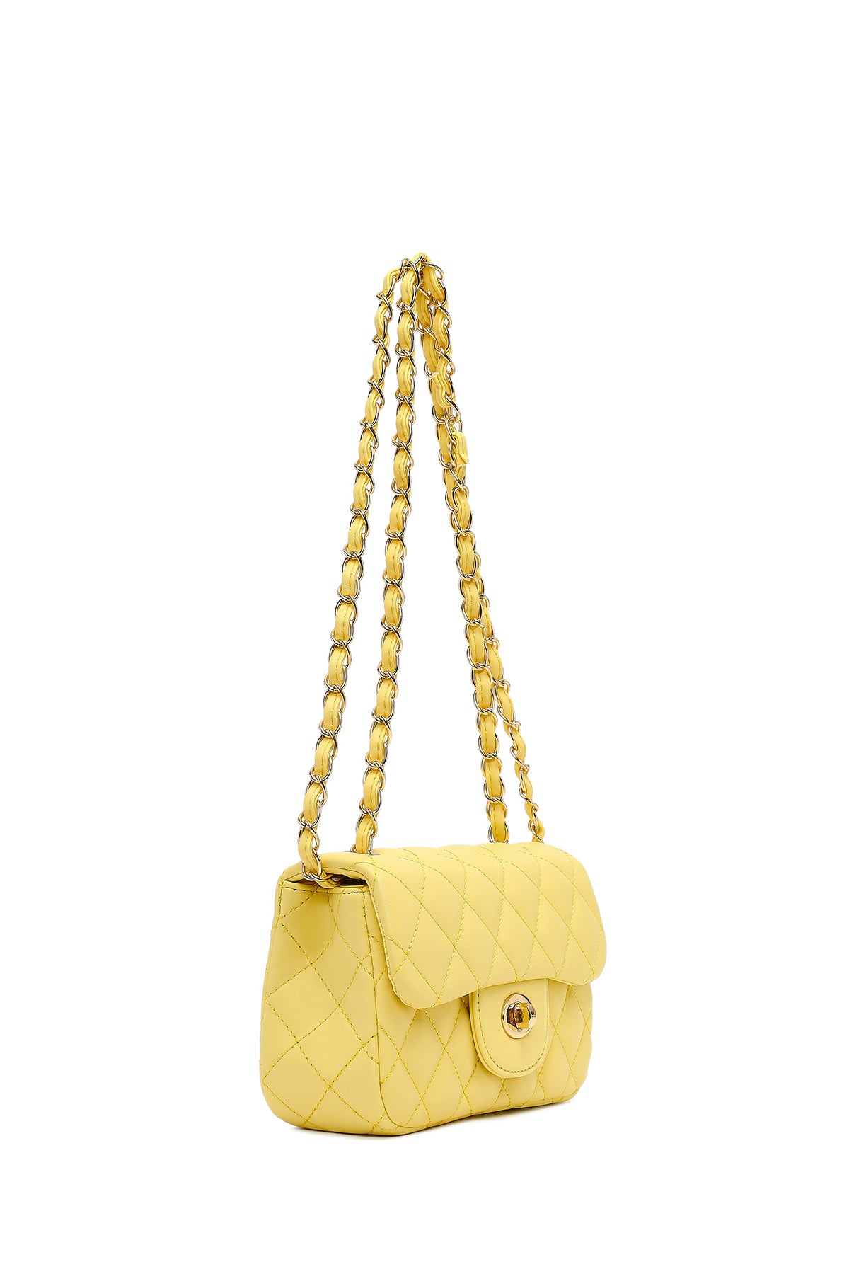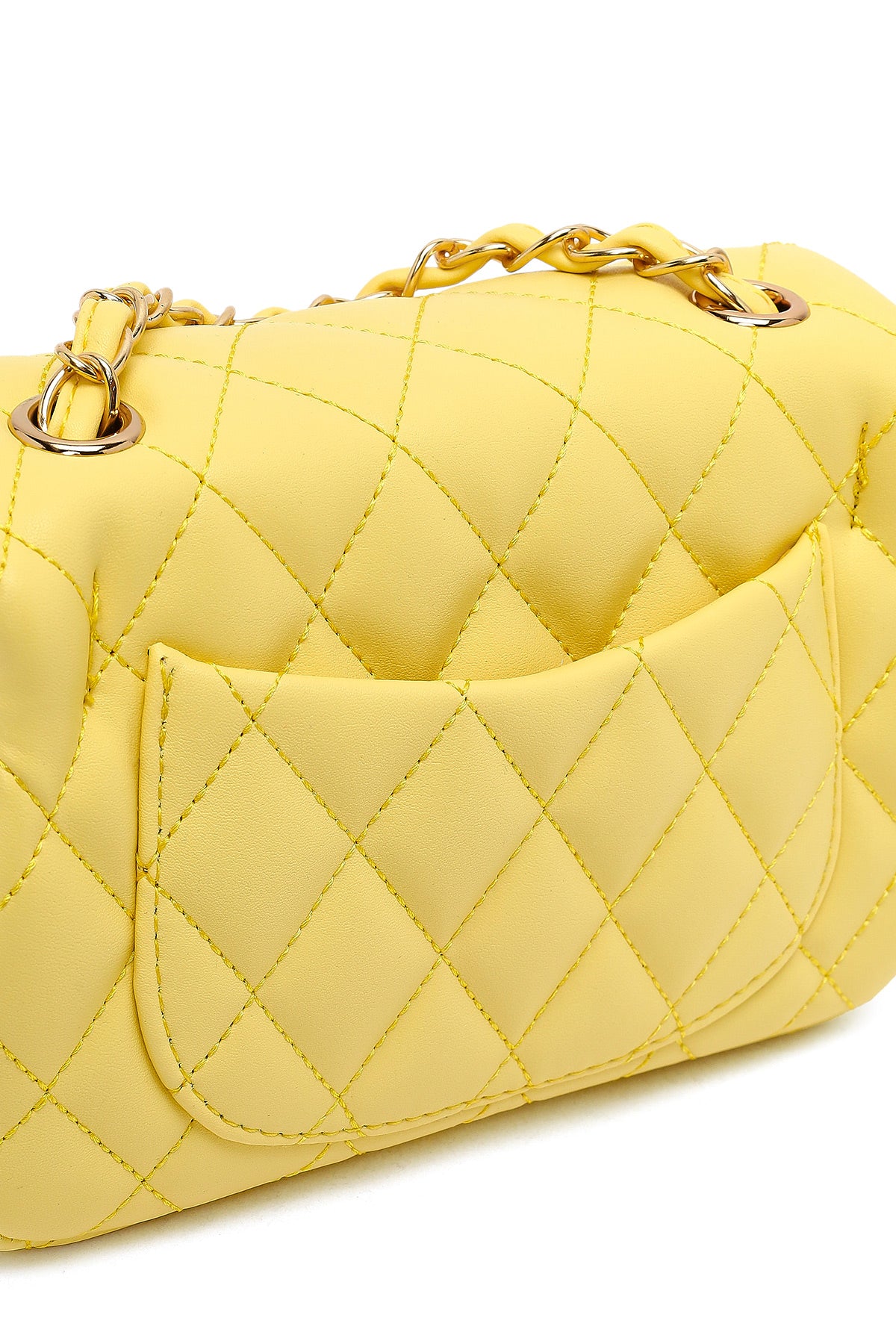 Kadın Sarı Uzun Askılı Kapitone Mini Çapraz Çanta