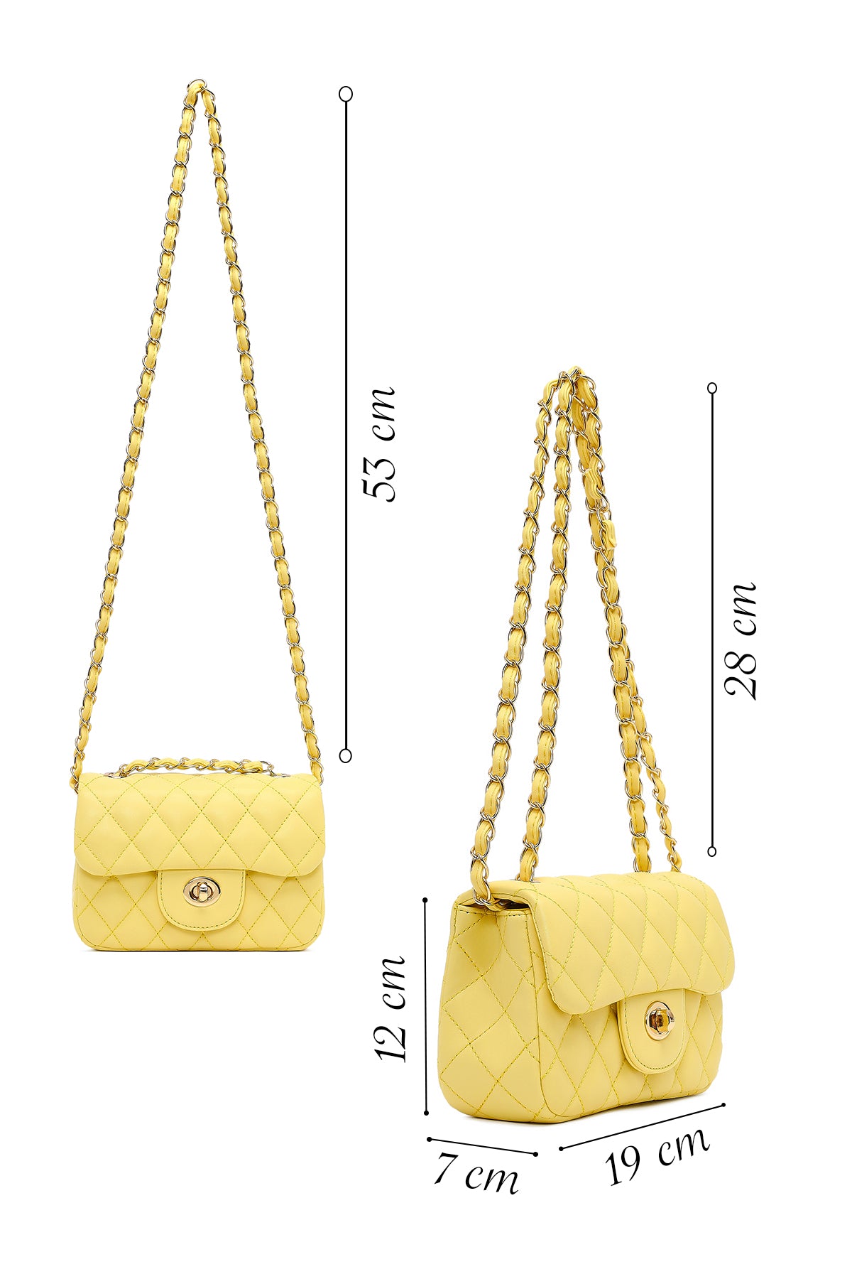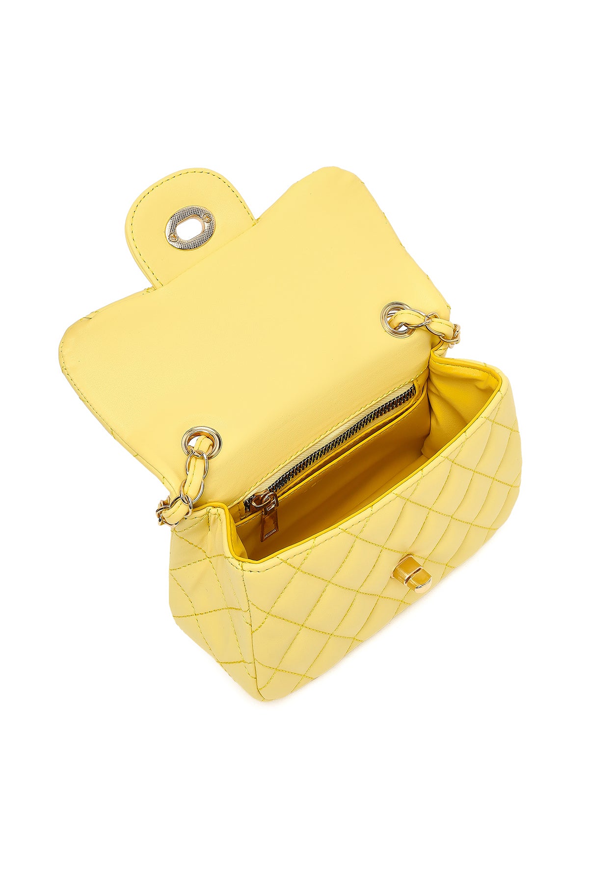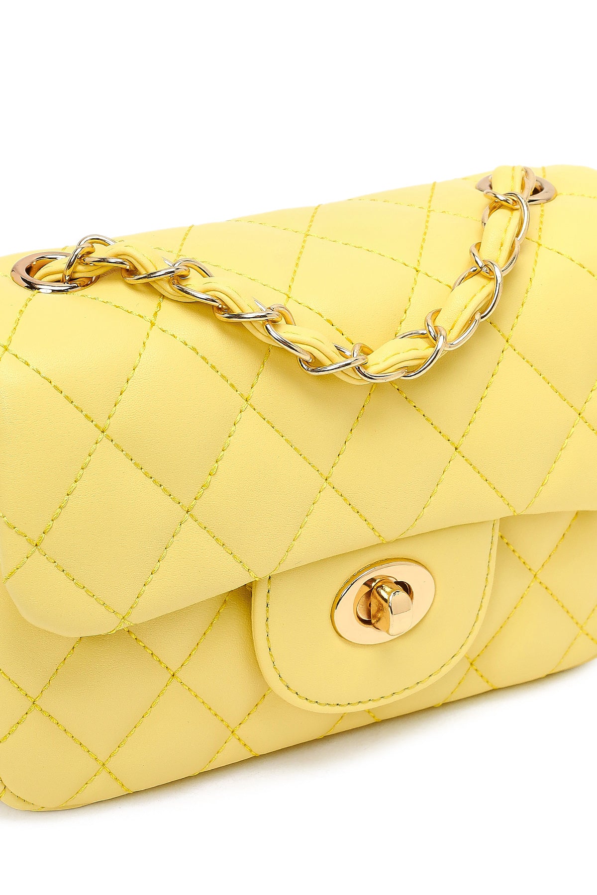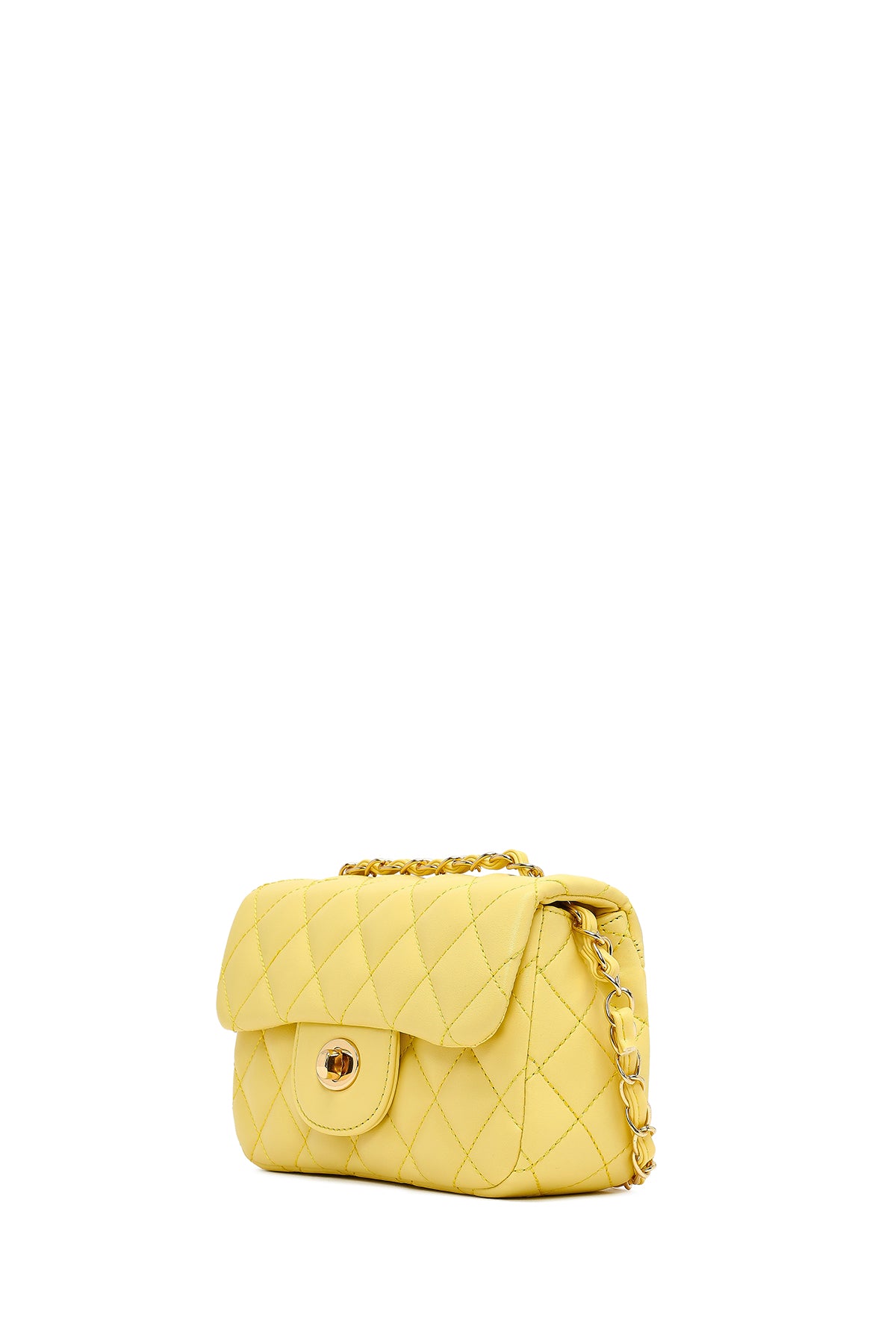 Kadın Sarı Uzun Askılı Kapitone Mini Çapraz Çanta