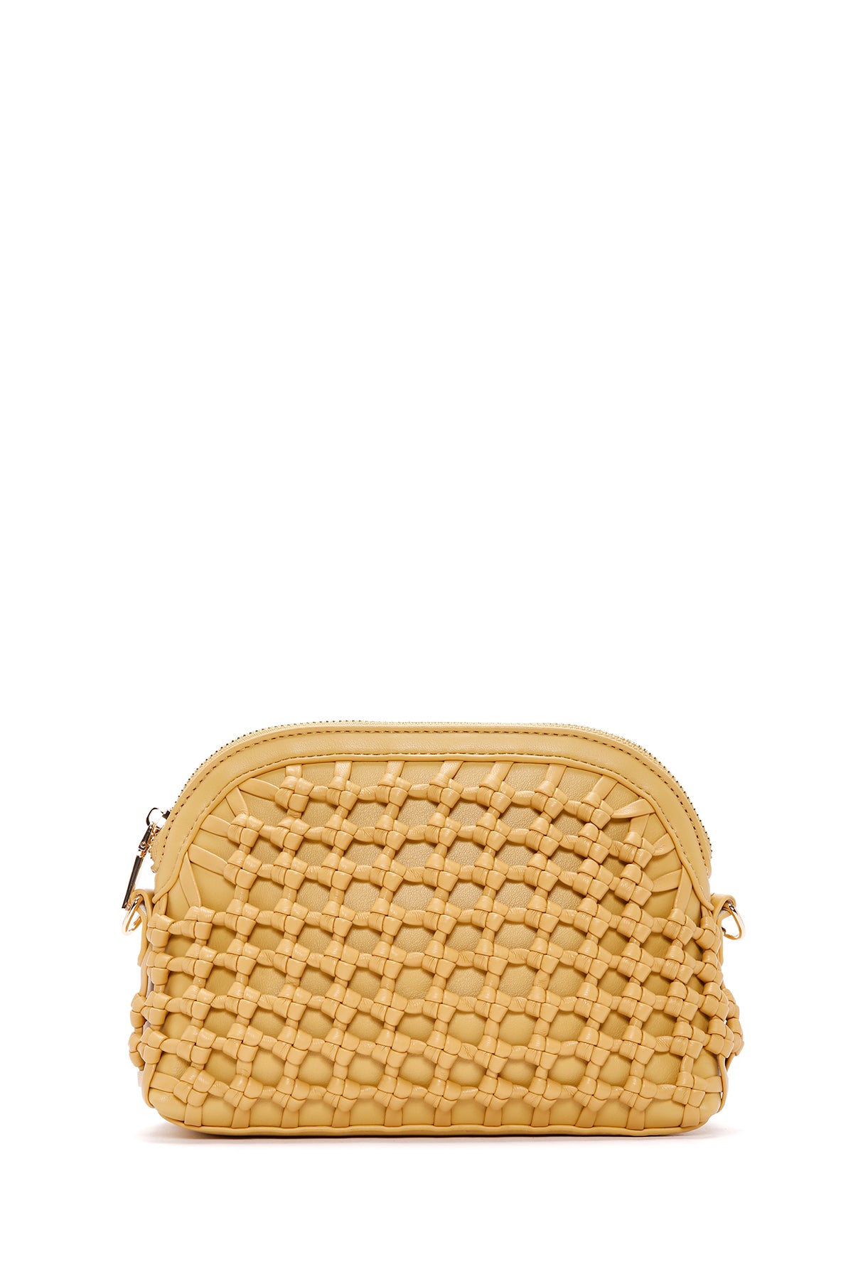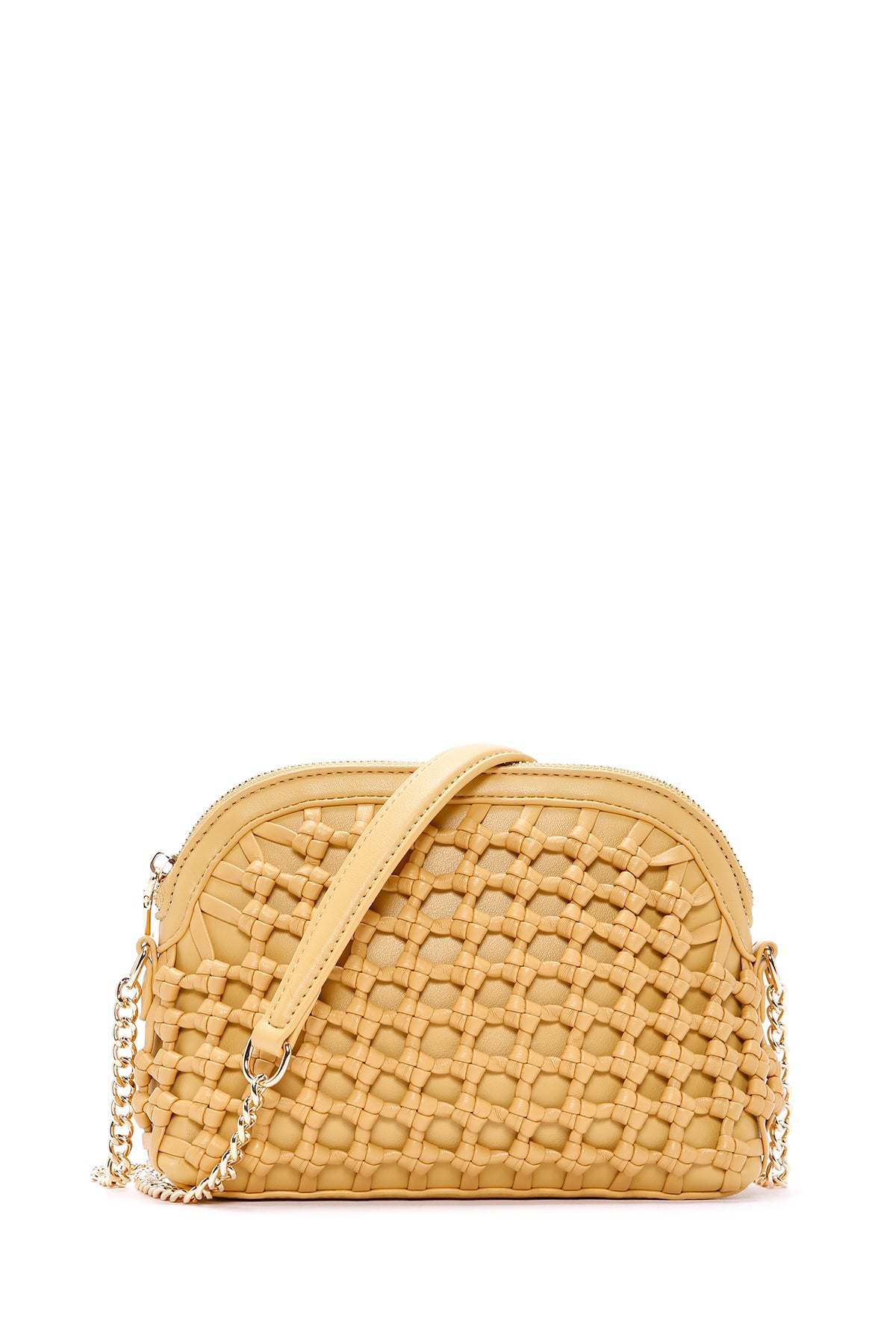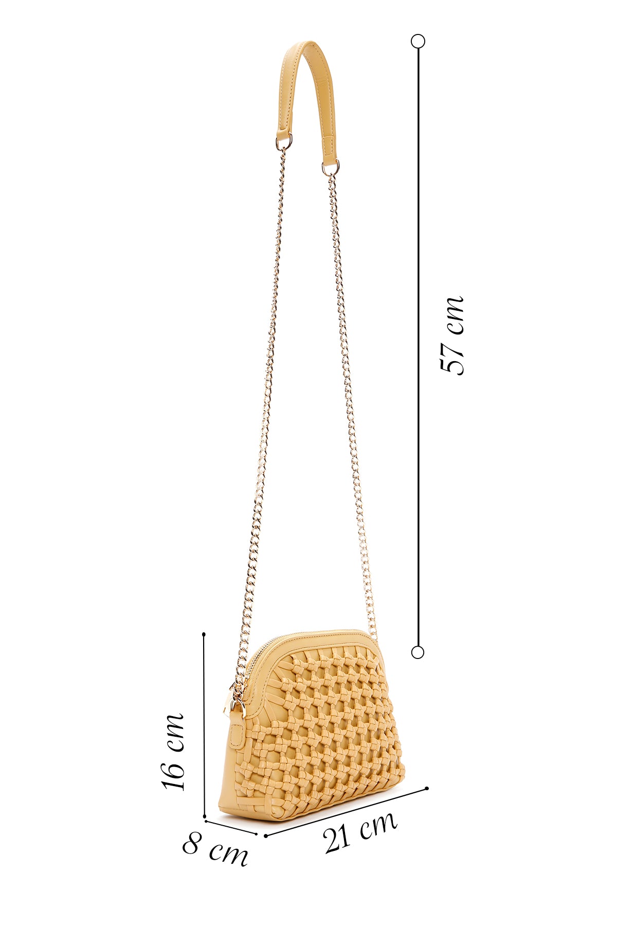 Kadın Sarı Uzun Zincir Askılı Örgü Çapraz Çanta