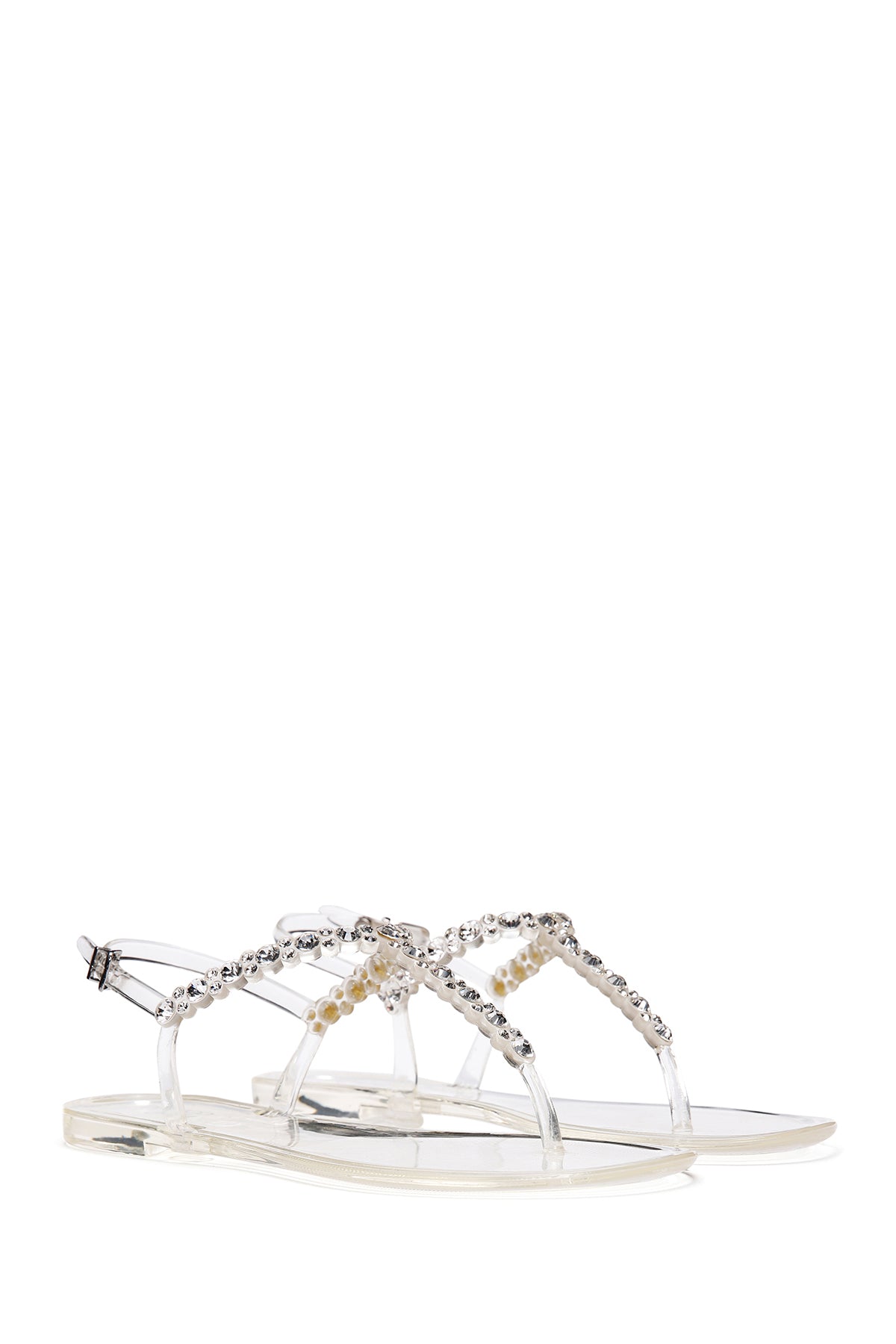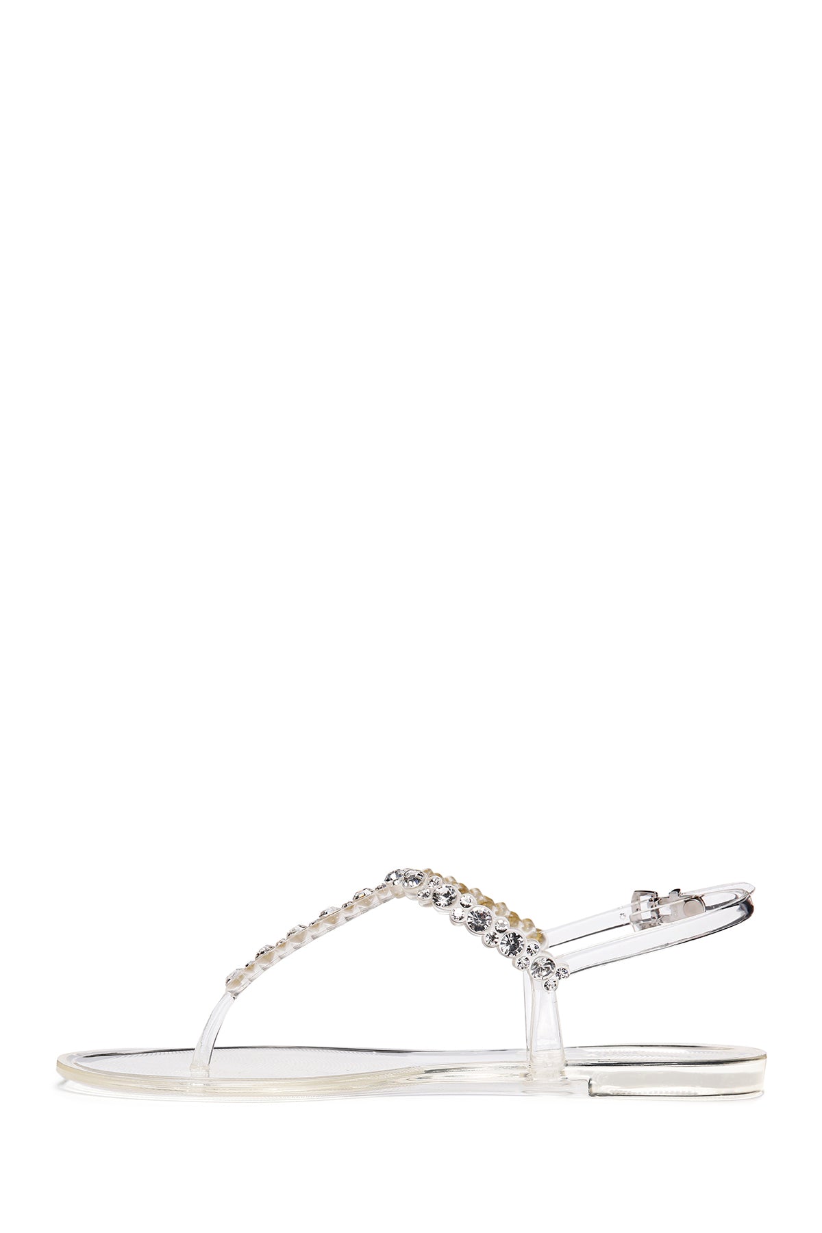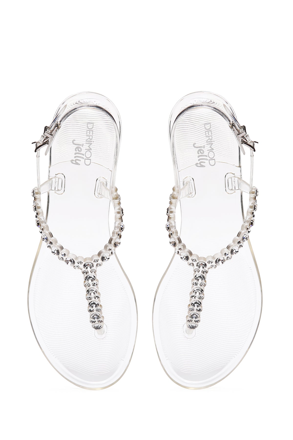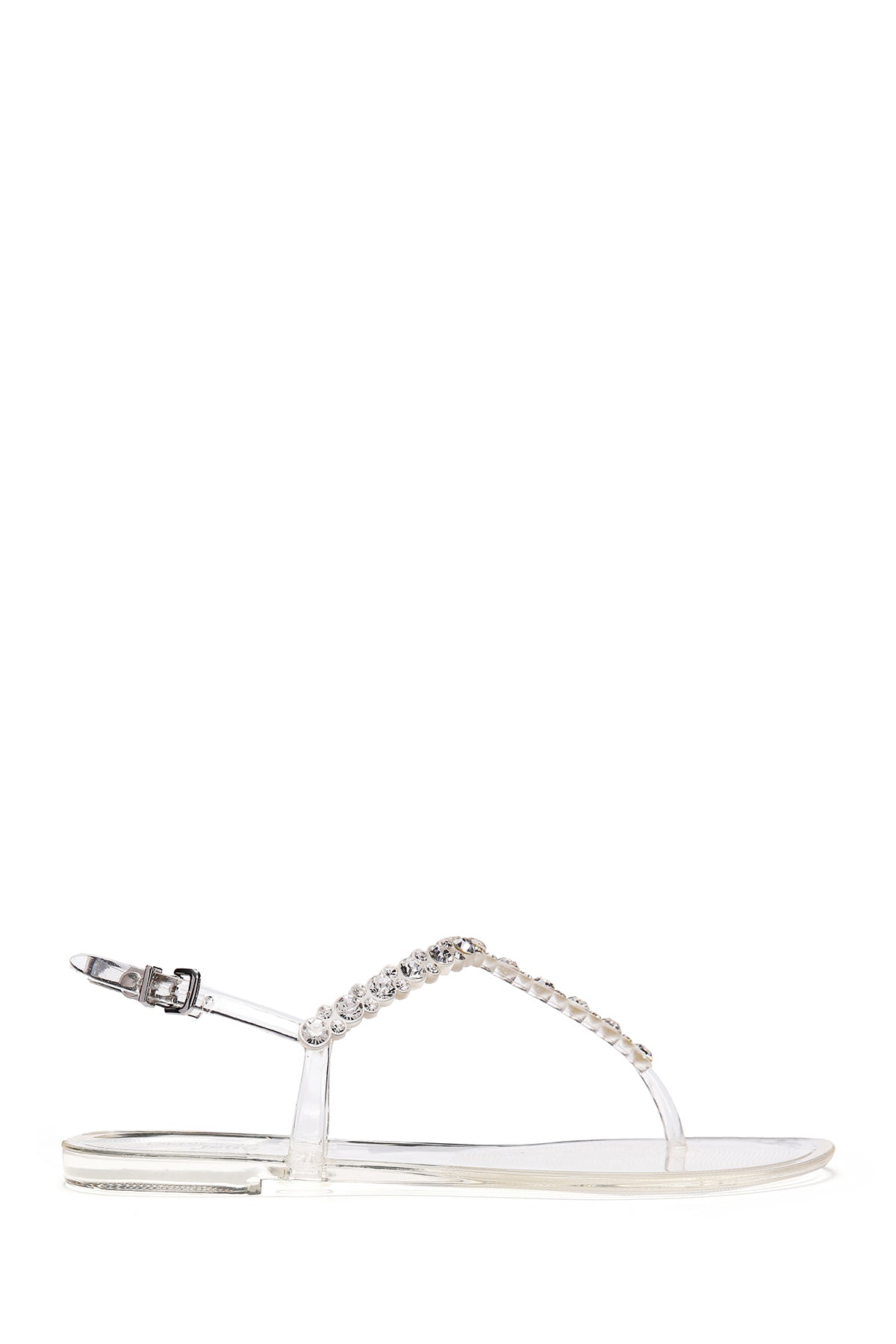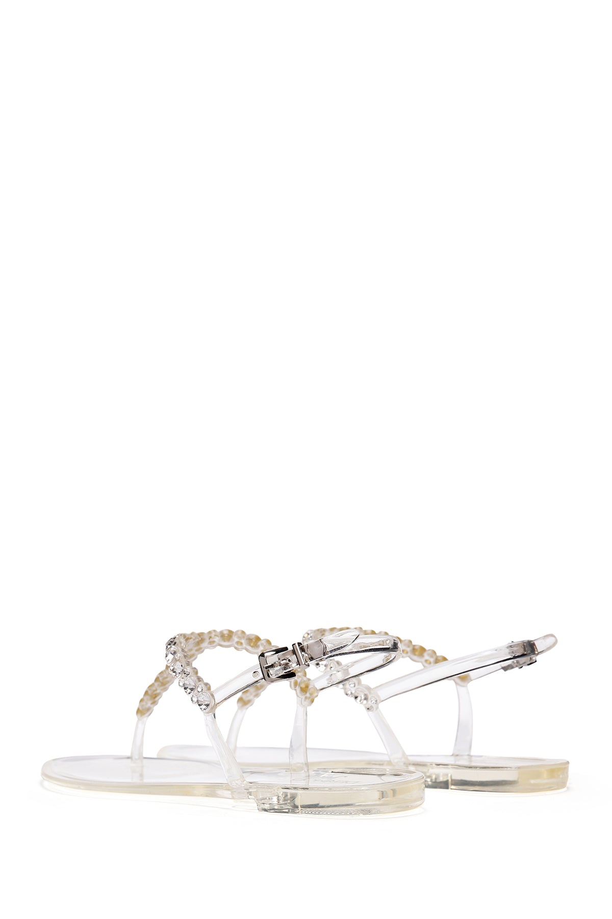 Kadın Şeffaf Bilekten Bantlı Taşlı Parmak Arası Sandalet