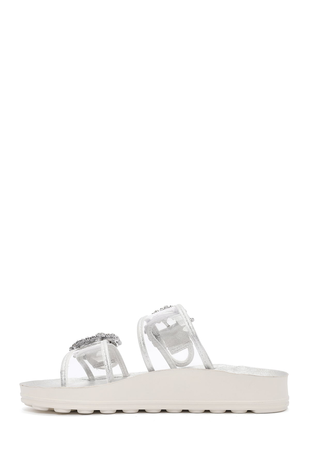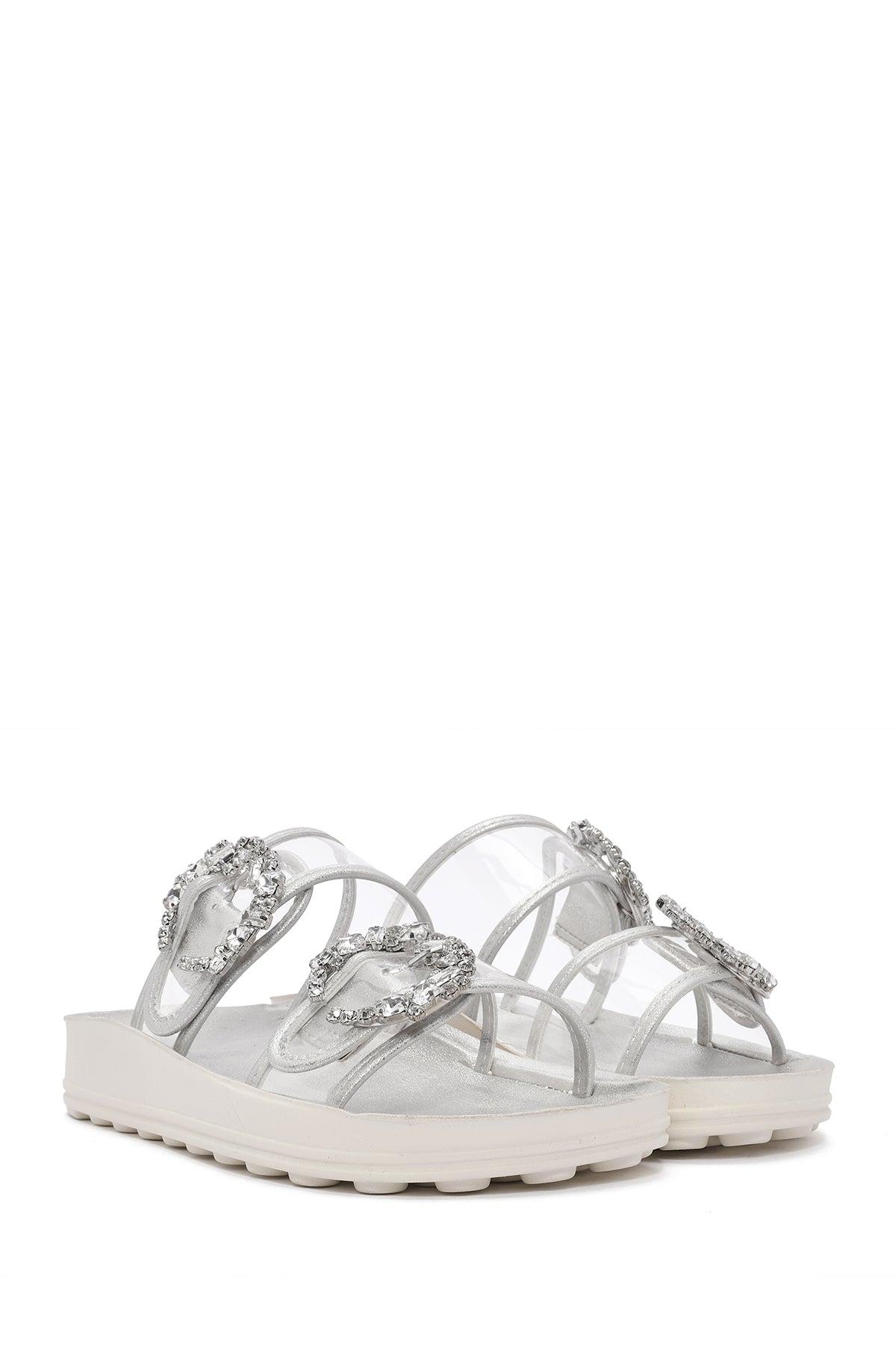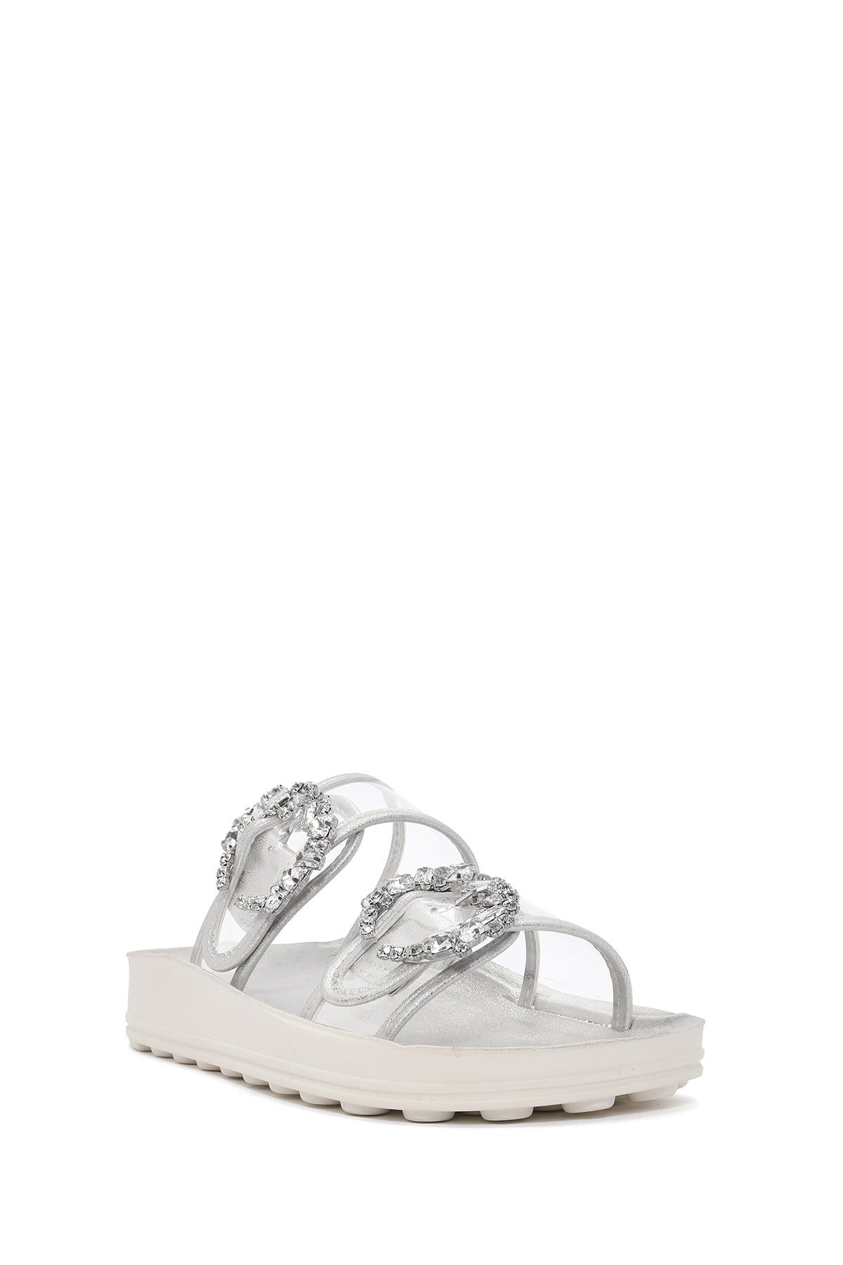 Derimod’un Zarifliği ve Şıklığı bir arada sunan Kadın Şeffaf Çift Tokalı Taşlı Terlik ile tarzınızı konuşturun. Ürünün kodu: 25SFE460718 SD