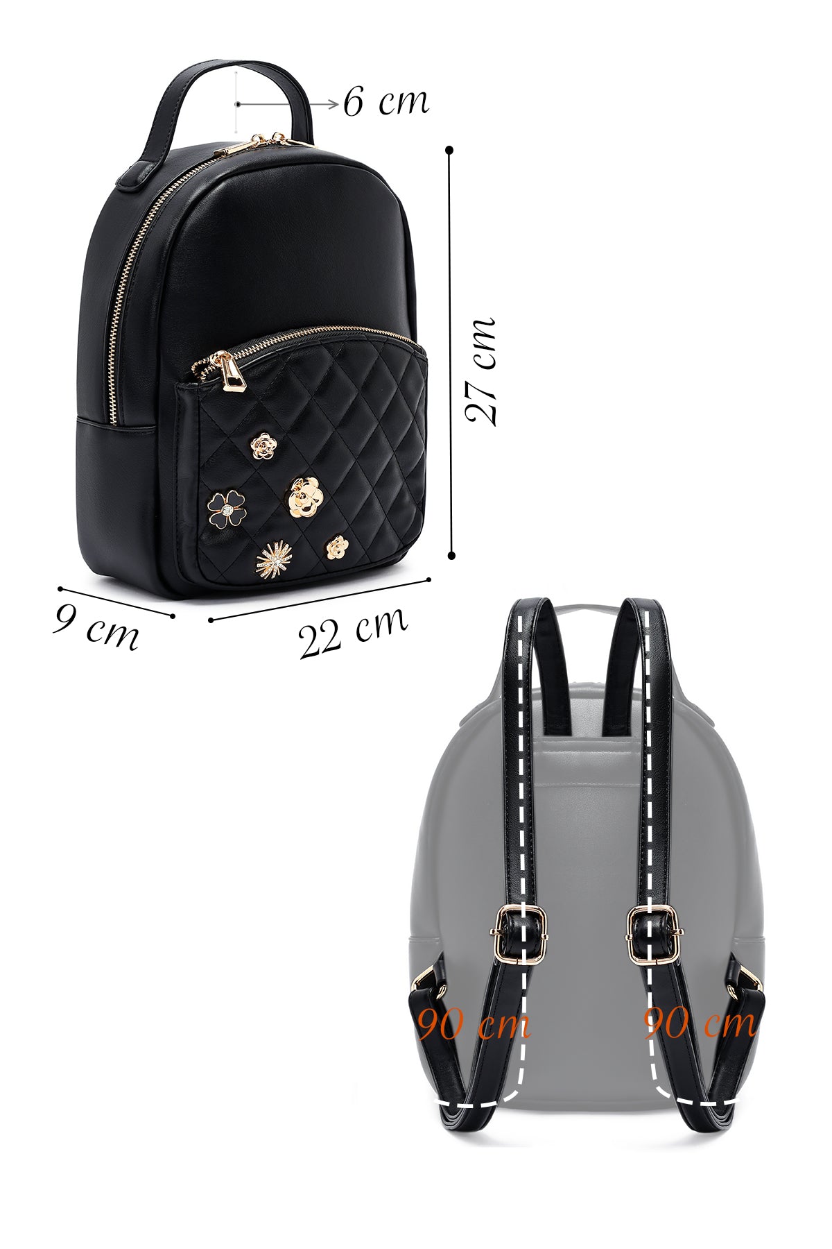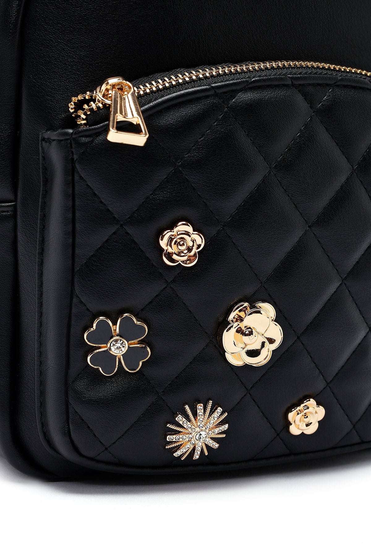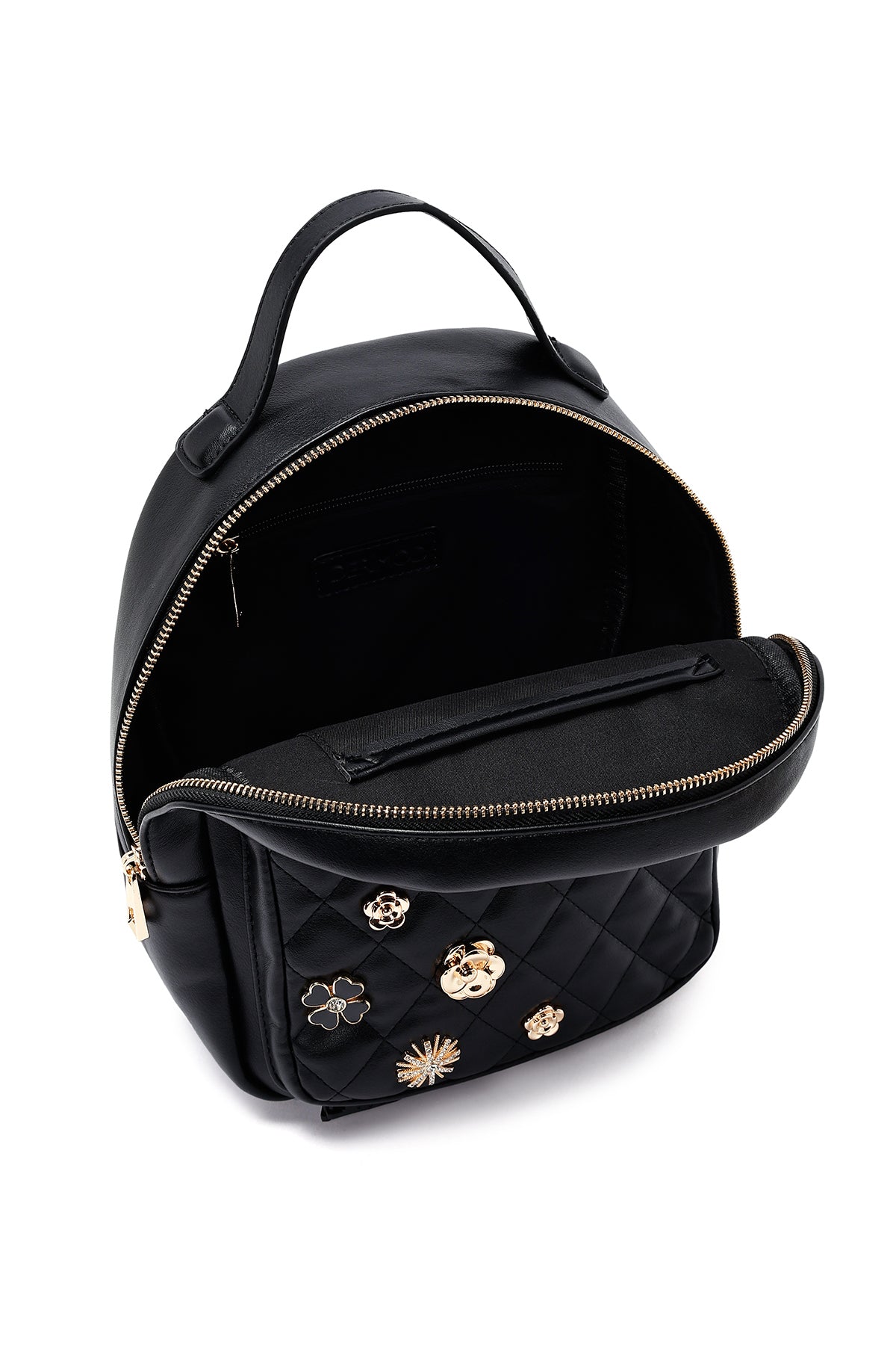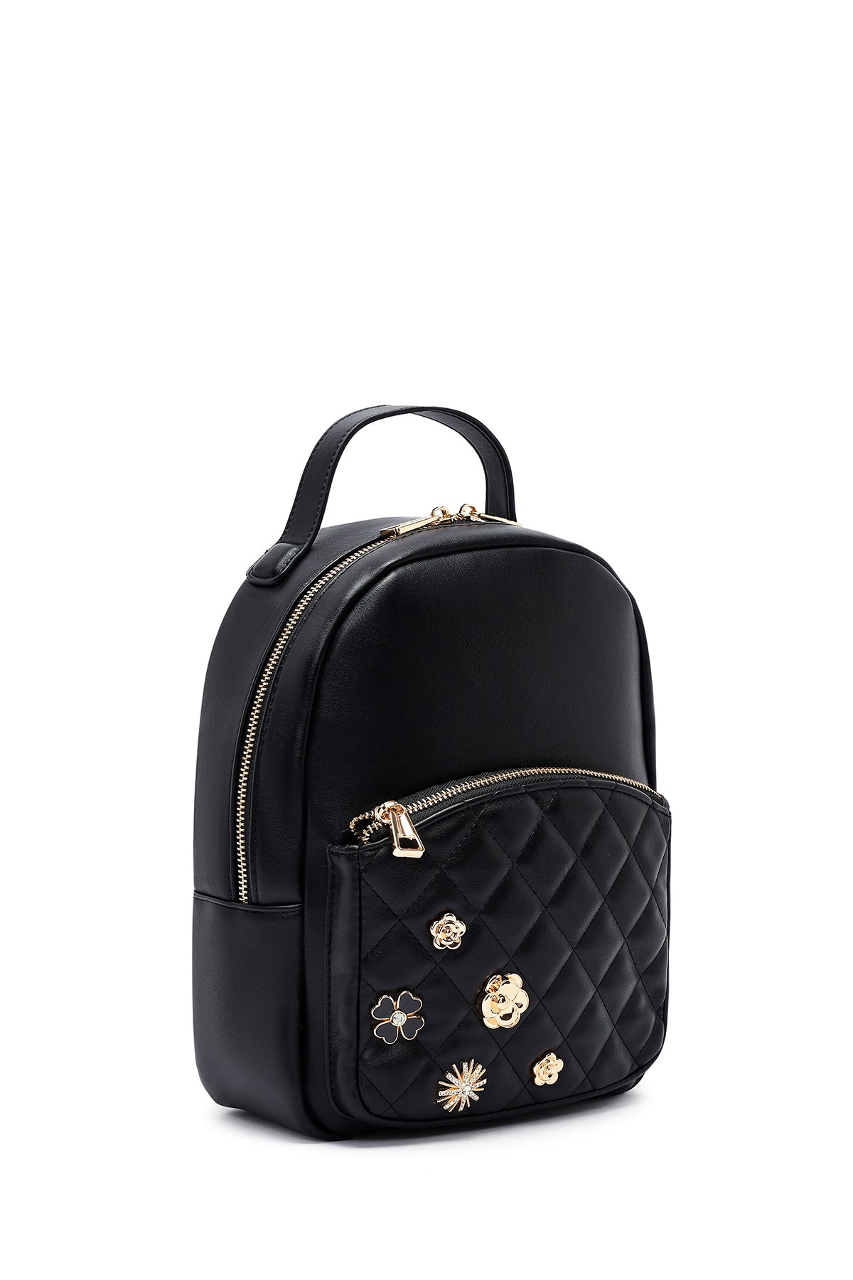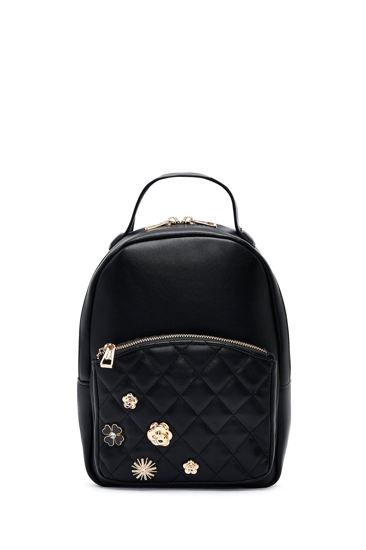 Kadın Siyah Aksesuarlı Kapitone Sırt Çantası