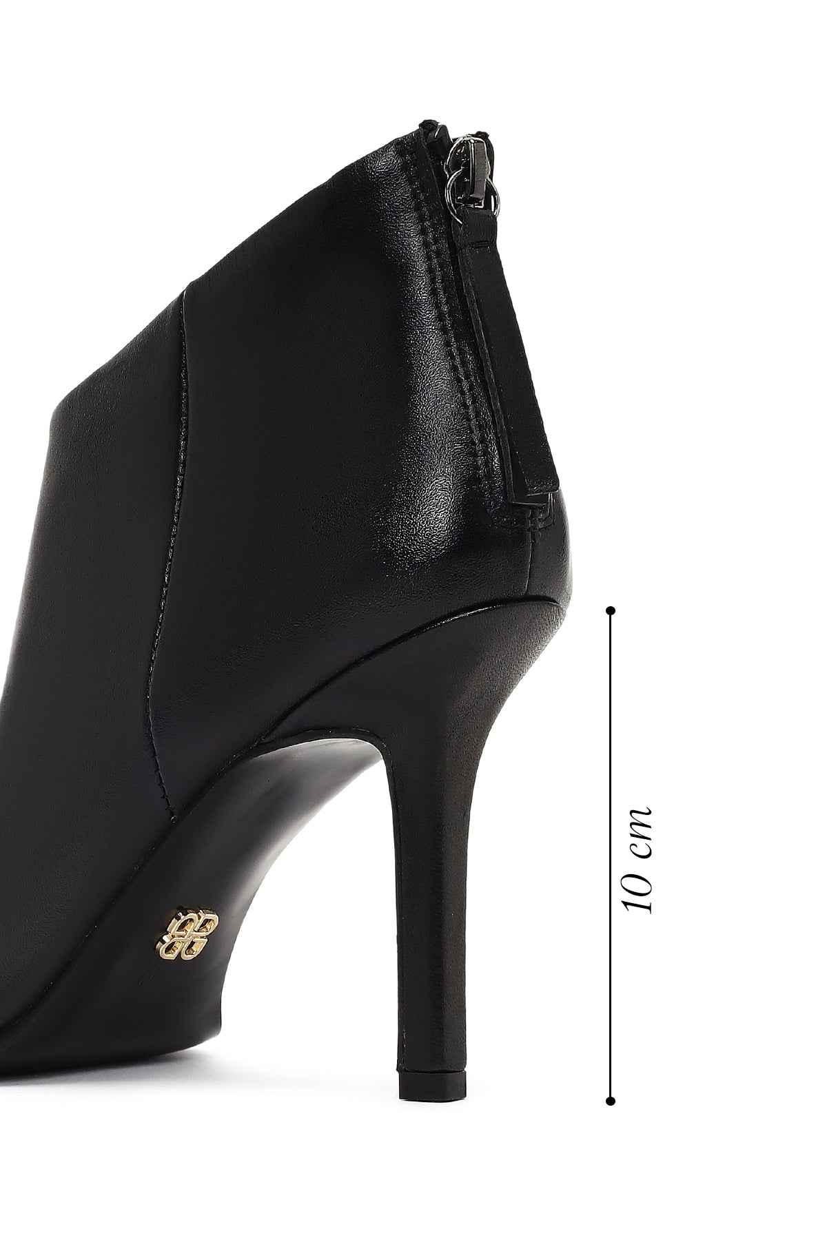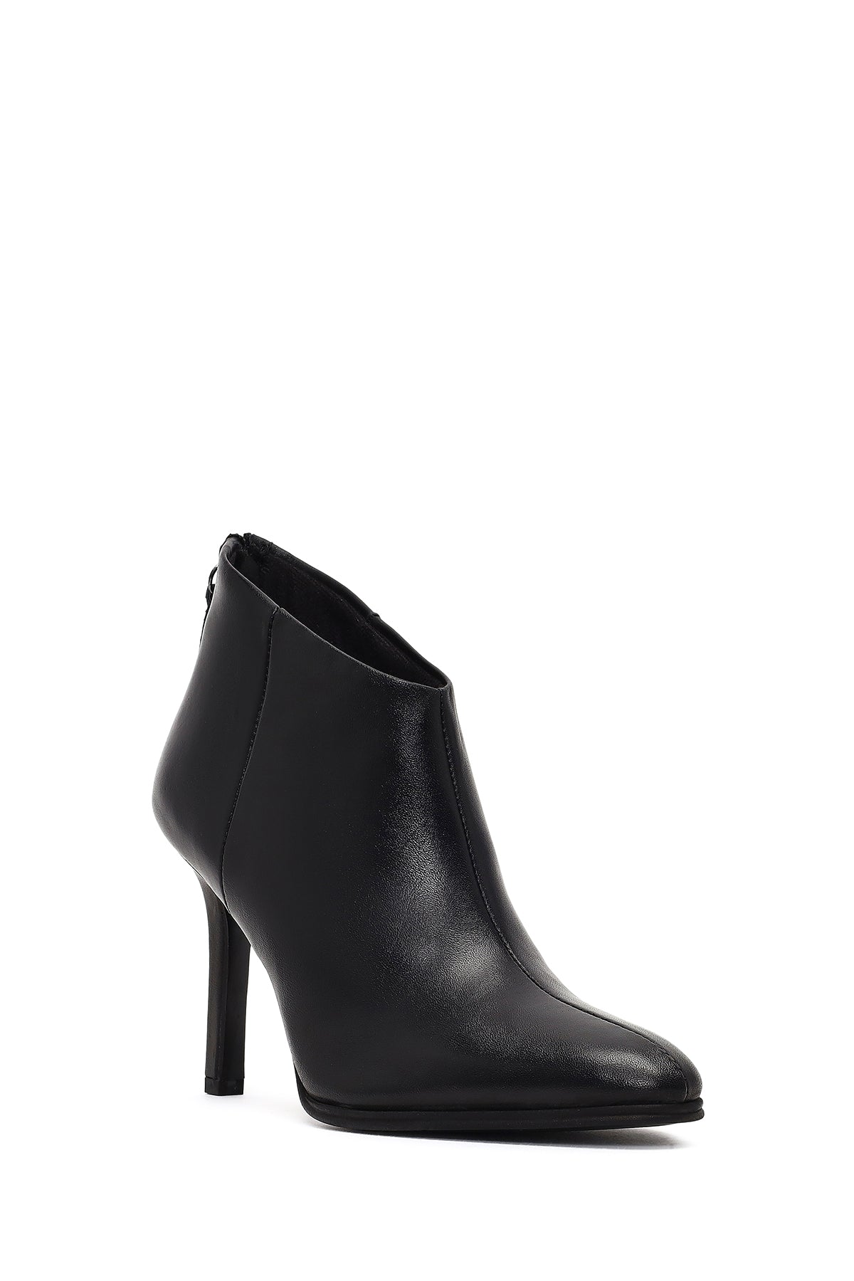 Kış koleksiyonunun zarif bootie modeli, siyah vidala deri üst yüzeyi ve arkadan fermuarlı tasarımıyla dikkat çekiyor. Sentetik astar kullanımı ve 9 cm yüksekliğindeki ince topuk şık bir görünüm sunuyor. Modern çizgileri ve minimal tasarımı ile özel günlerde kullanıma uygun. Özellikle kış aylarında, hem casual hem şık giyim kombinleriyle mükemmel uyum sağlıyor. Kullanım alanları: Özel davetler, akşam yemekleri ve şık organizasyonlar için ideal. Ürün kodu: 25WFD163218