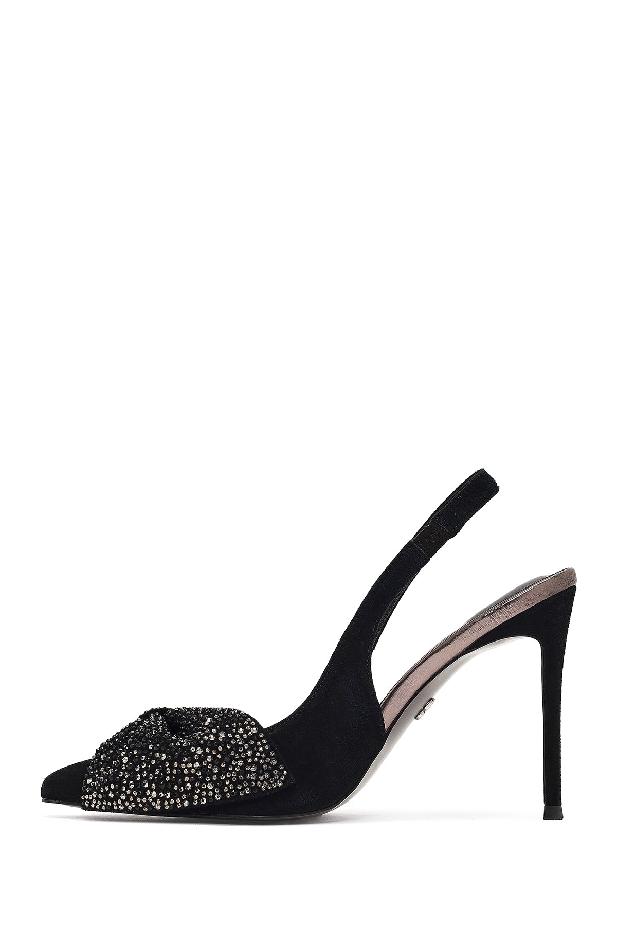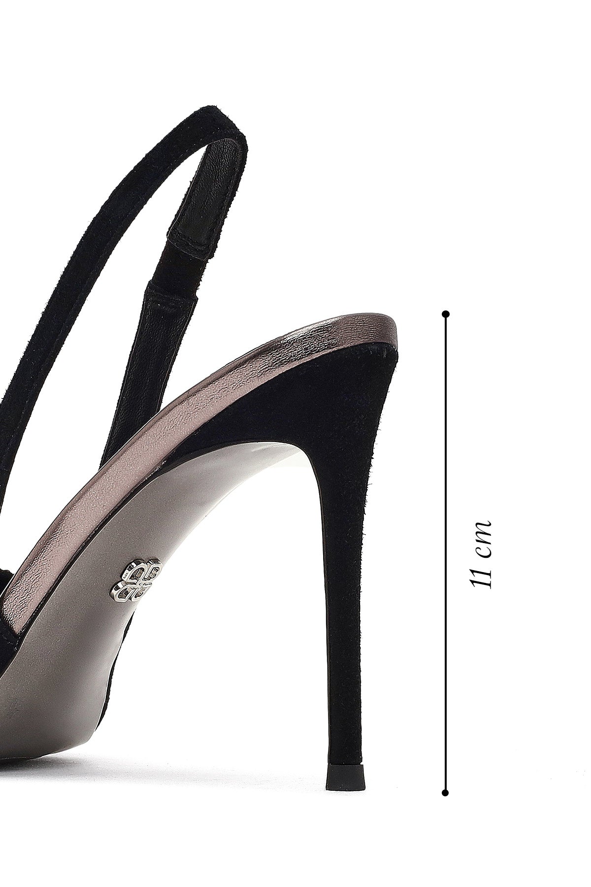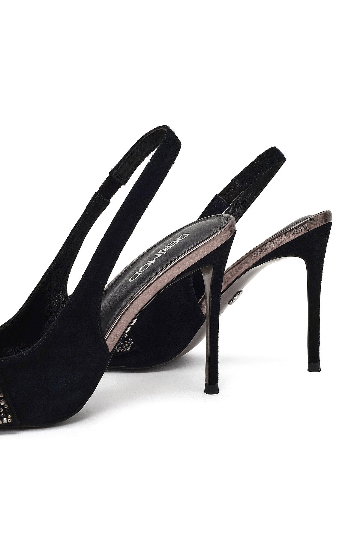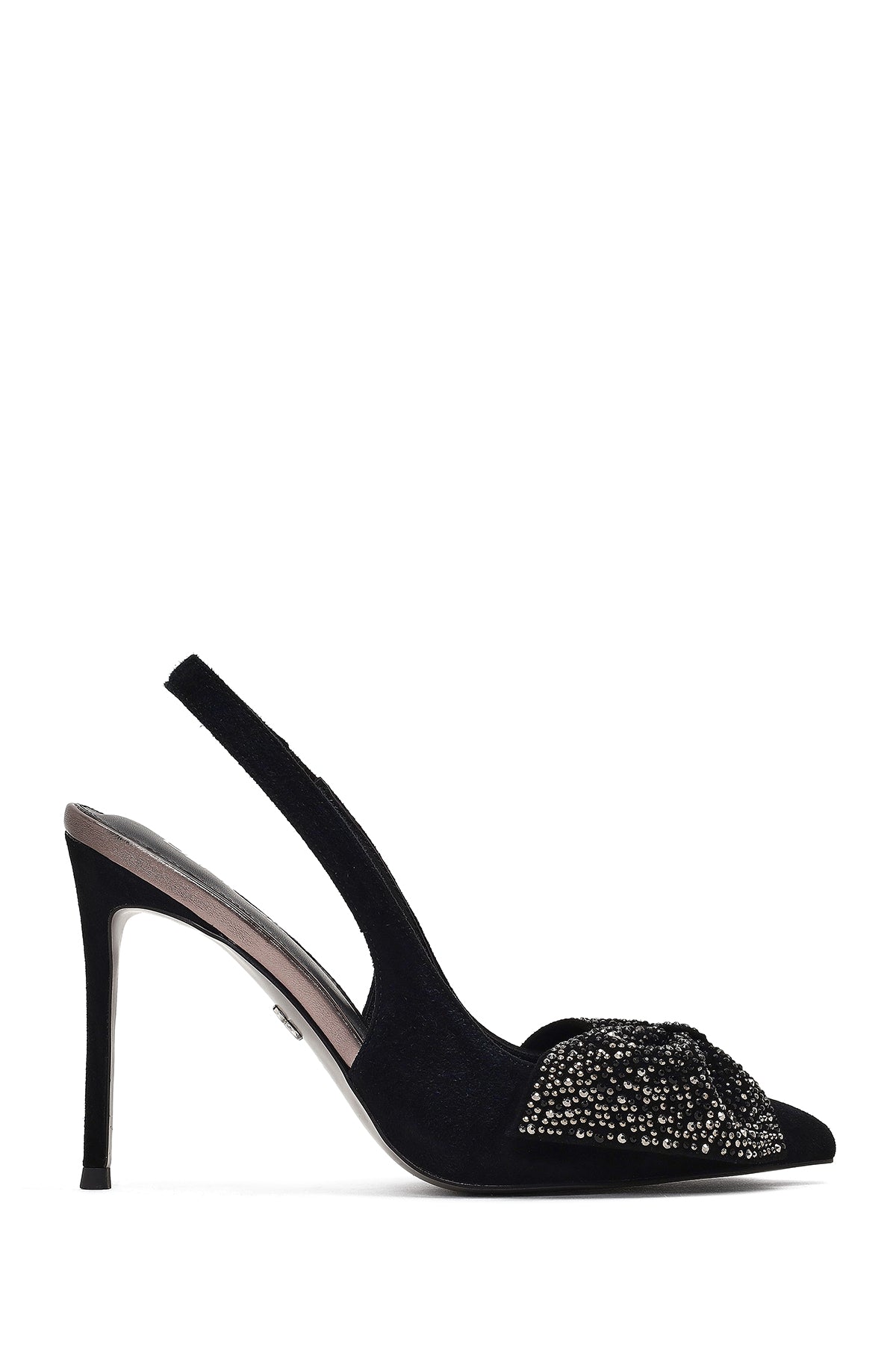 Derimod’un Zarifliği ve Şıklığı bir arada sunan Kadın Siyah Arkası Açık Taşlı İnce Yüksek Topuklu Süet Deri Ayakkabı ile tarzınızı konuşturun. Ürünün kodu: 25WFD490910 11