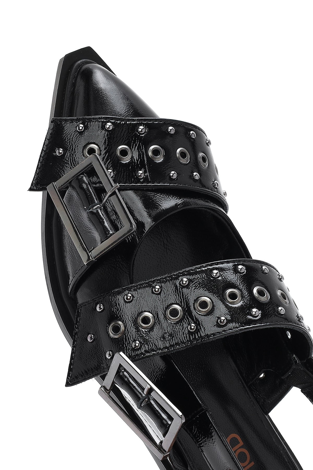 Derimod'un yaz koleksiyonundan, rugan deri kullanılarak tasarlanan siyah sandalet modeli, 2,5 cm yüksekliğindeki tabanı ile günlük kullanıma uygun bir tasarım sunuyor. Arkası açık yapısı ve toka detayı ile şık bir görünüm sergileyen model, sentetik iç astarı ile kullanım kolaylığı sağlıyor. Klasik çizgileri ile elbiselerden eteklere, pantolonlardan şortlara kadar geniş bir kullanım alanı sunan sandalet, yaz mevsiminde günün her saatinde kullanılabilir. Ürün kodu: 25SFD140816