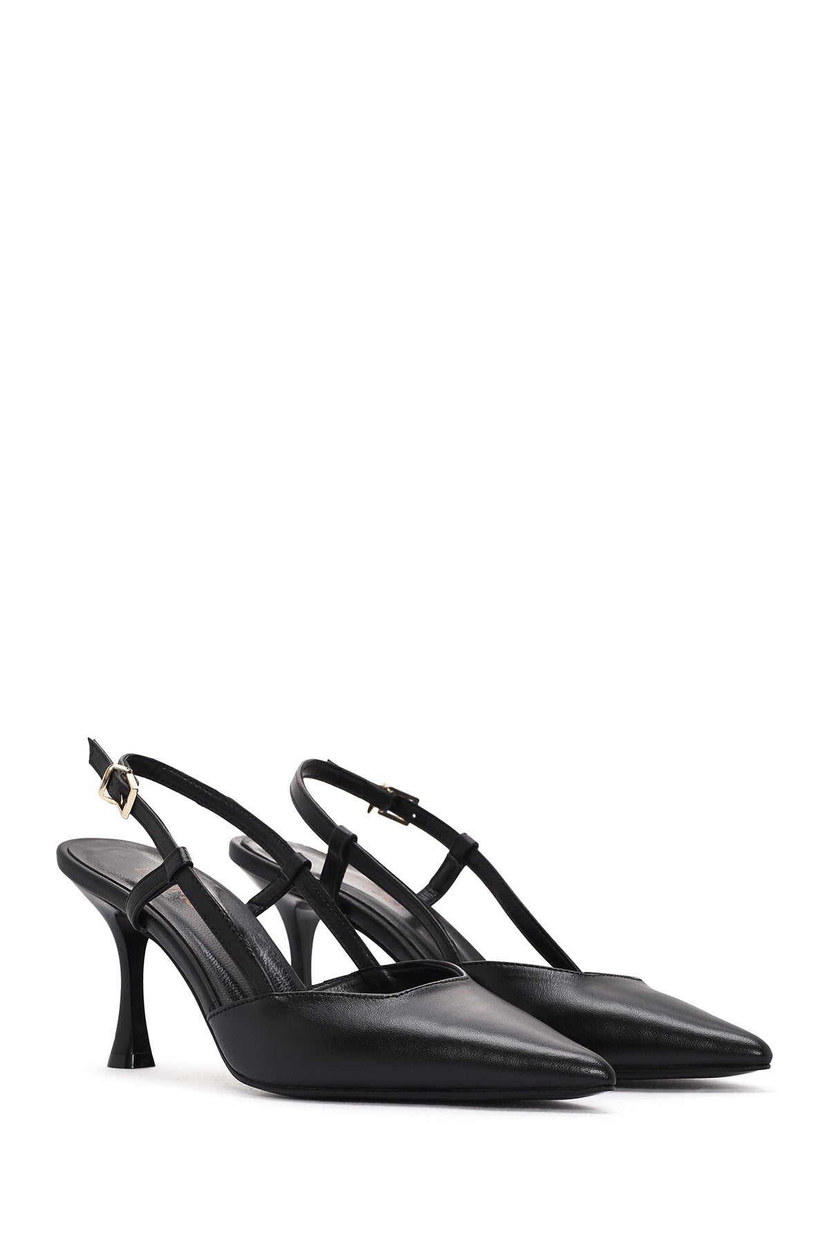 Kadın Siyah Arkası Açık Topuklu Deri Ayakkabı
